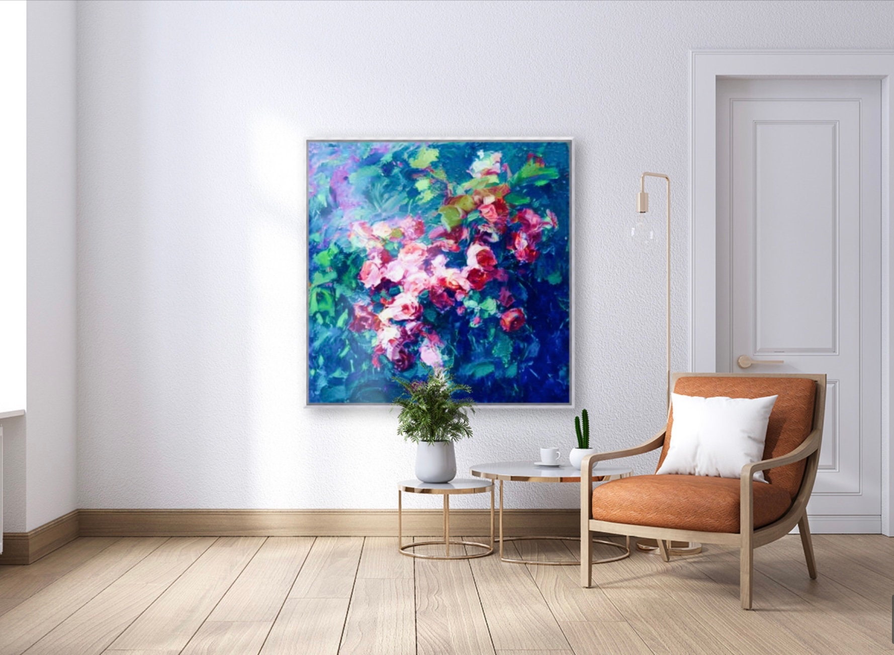 PLEASE NOTE SIZES ARE IN CM. My new painting. An original oil painting on cotton mix canvas in bold, expressionistic style. It has quite a presence in the room. The original painting makes a perfect gift. The painting ships rolled, signed on the front and on the back, with certificate of authenticity enclosed.