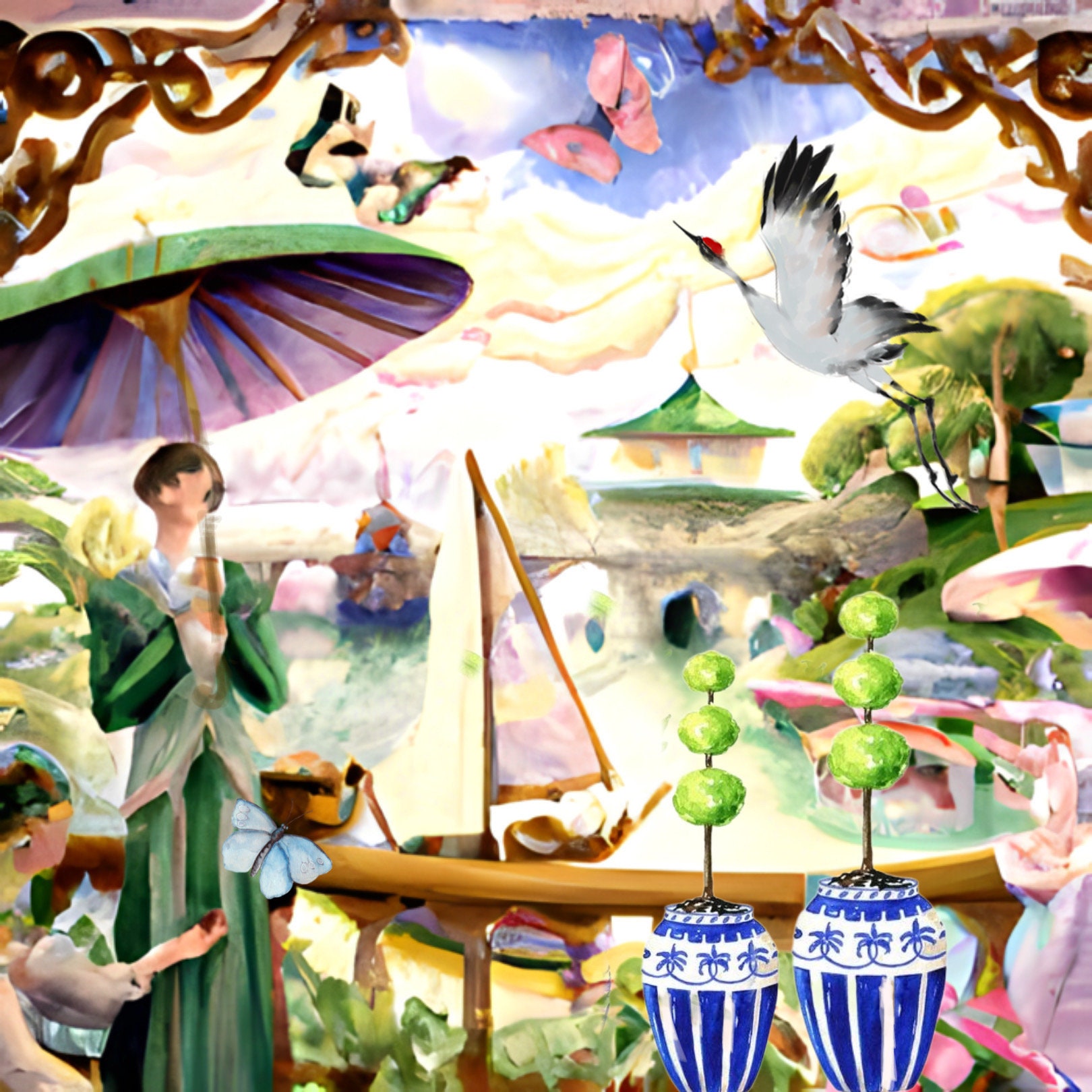 Chinoiserie Watercolor Art Print: Preppy Fantasy Decor