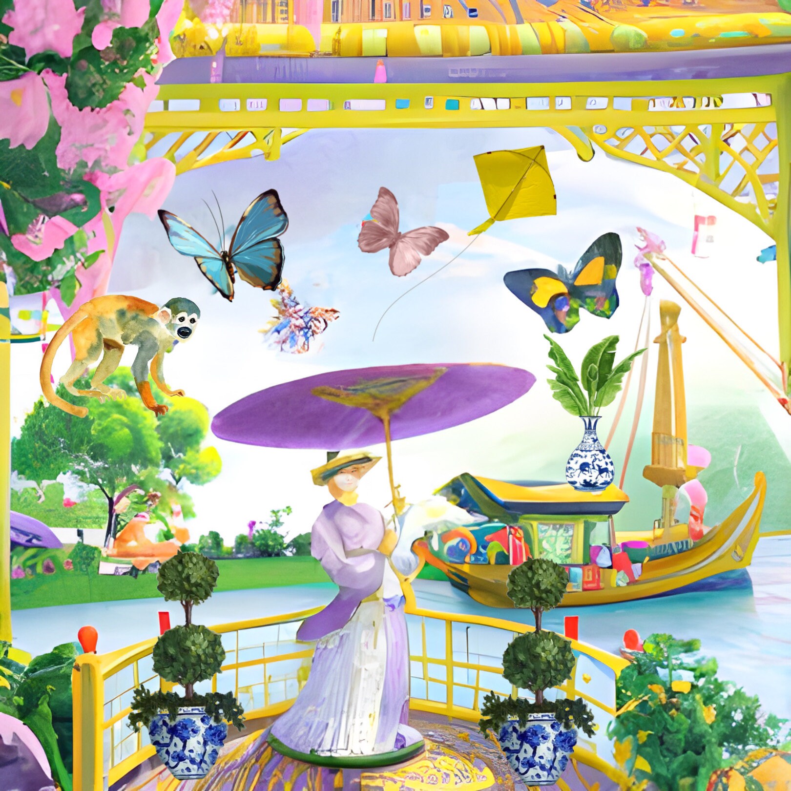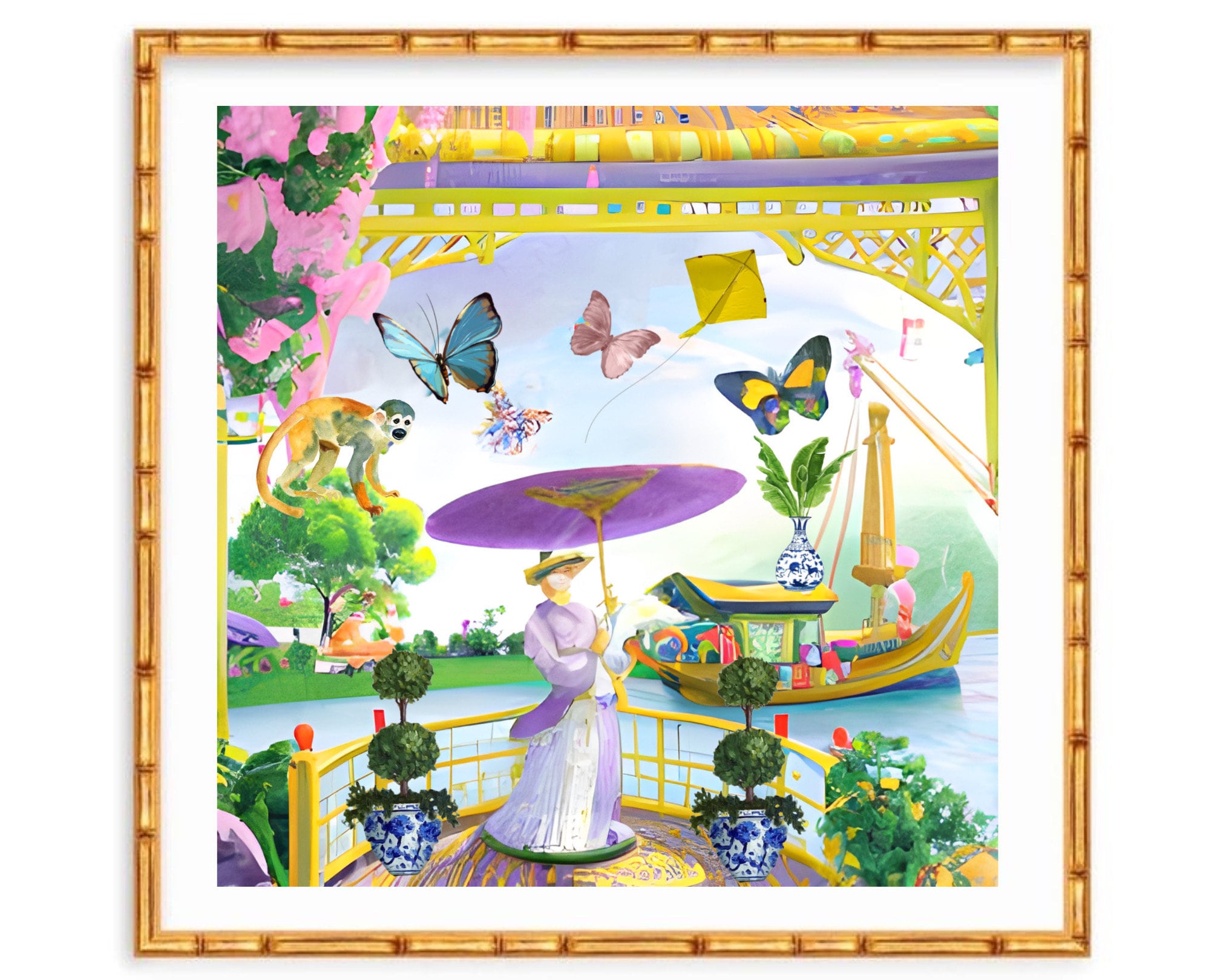 Chinoiserie Monkey Art Print: Whimsical Watercolor Fantasy