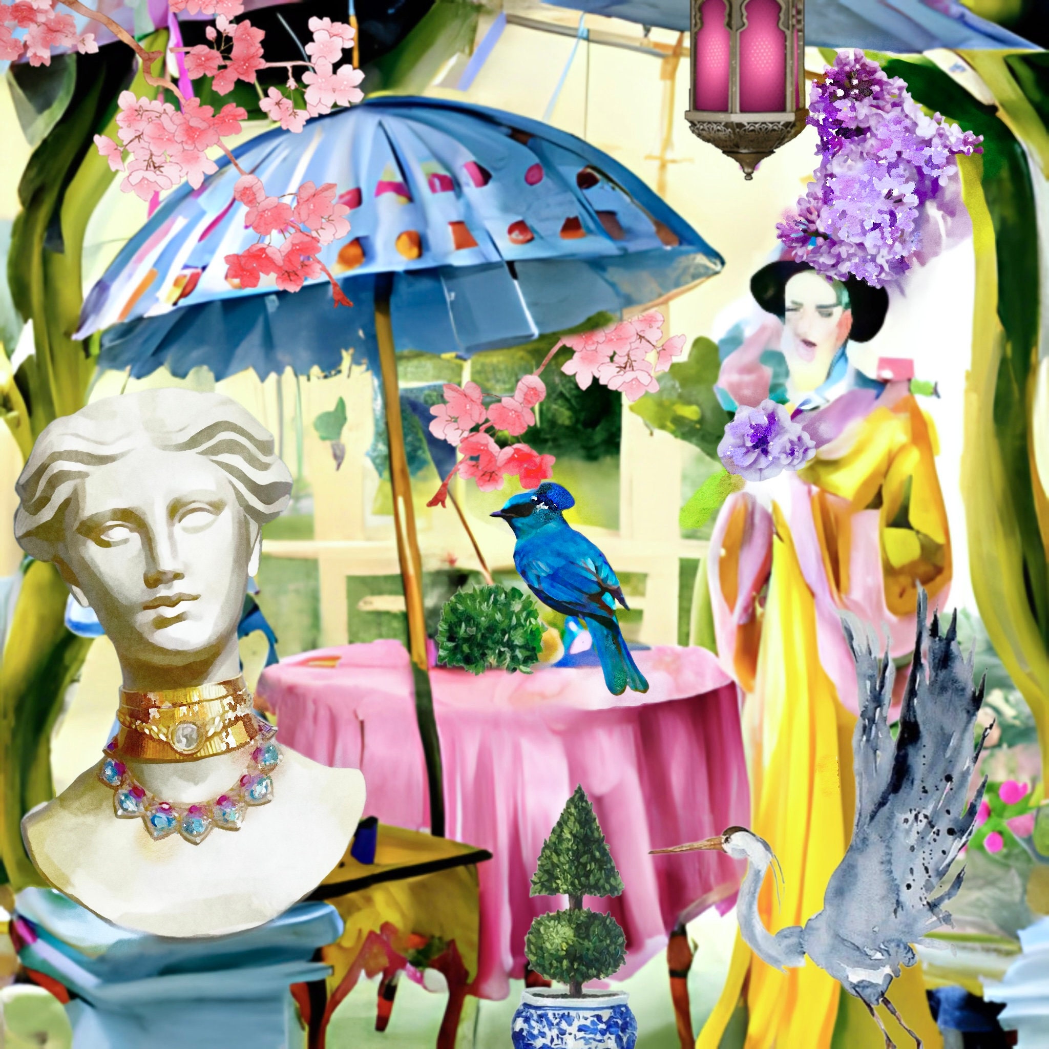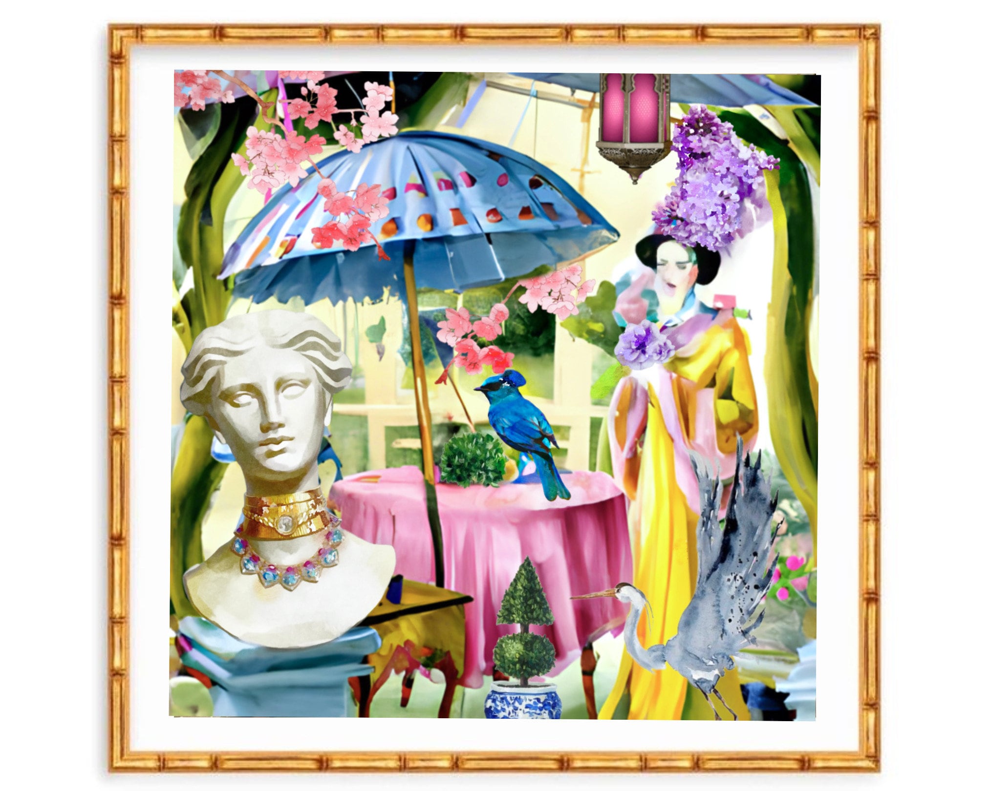 Chinoiserie art, Whimsical modern chinoiserie with grey heron
