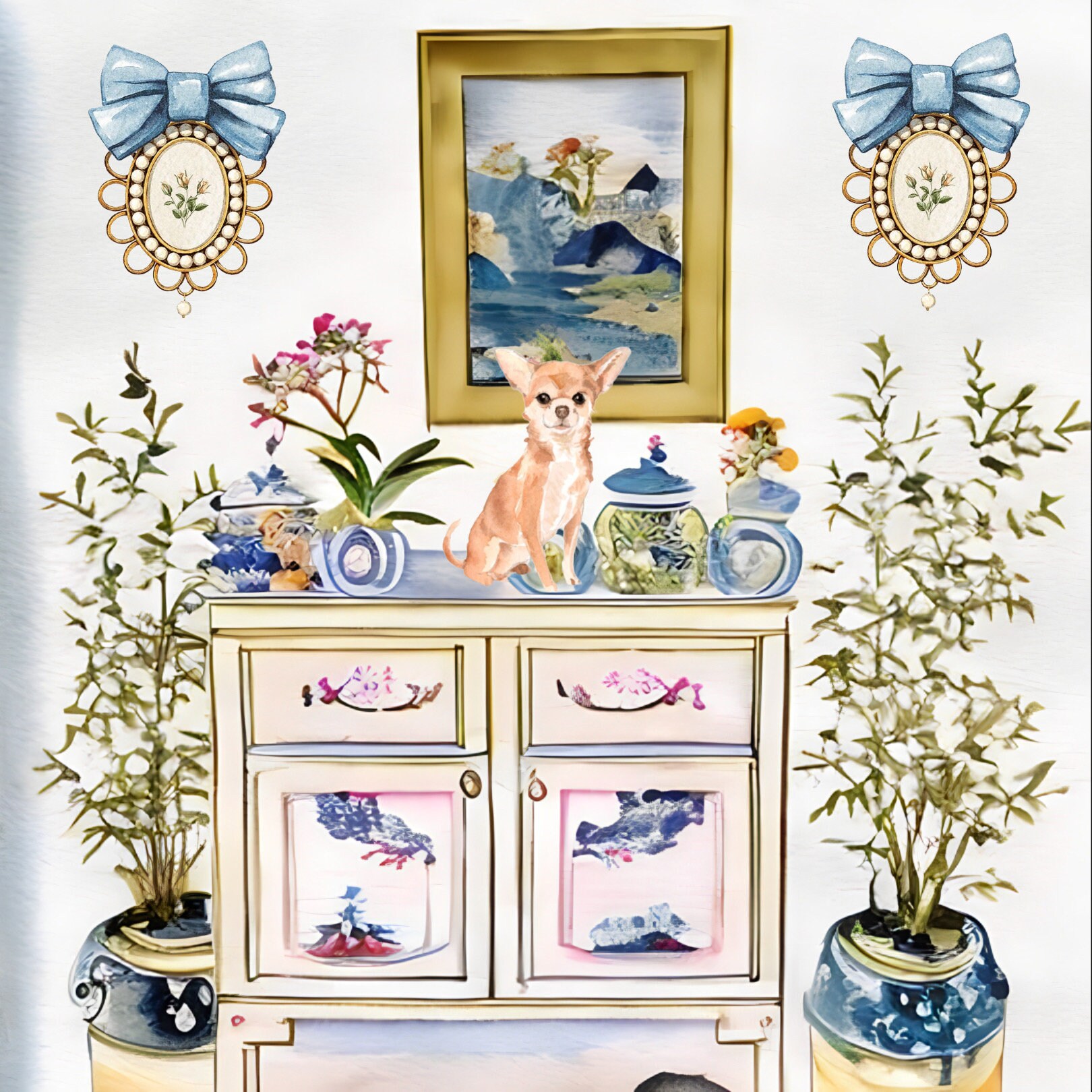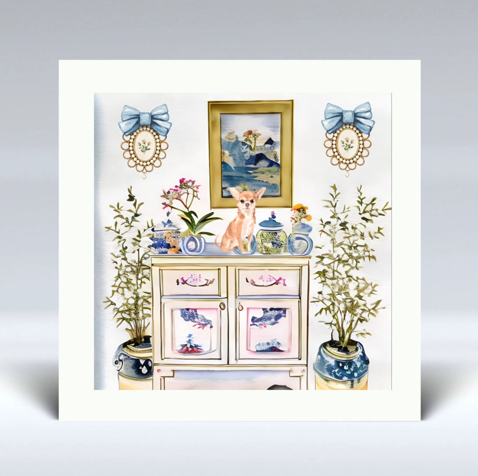 Grandmillennial Dog Art: Preppy Interior Watercolor Print (30x30cm)