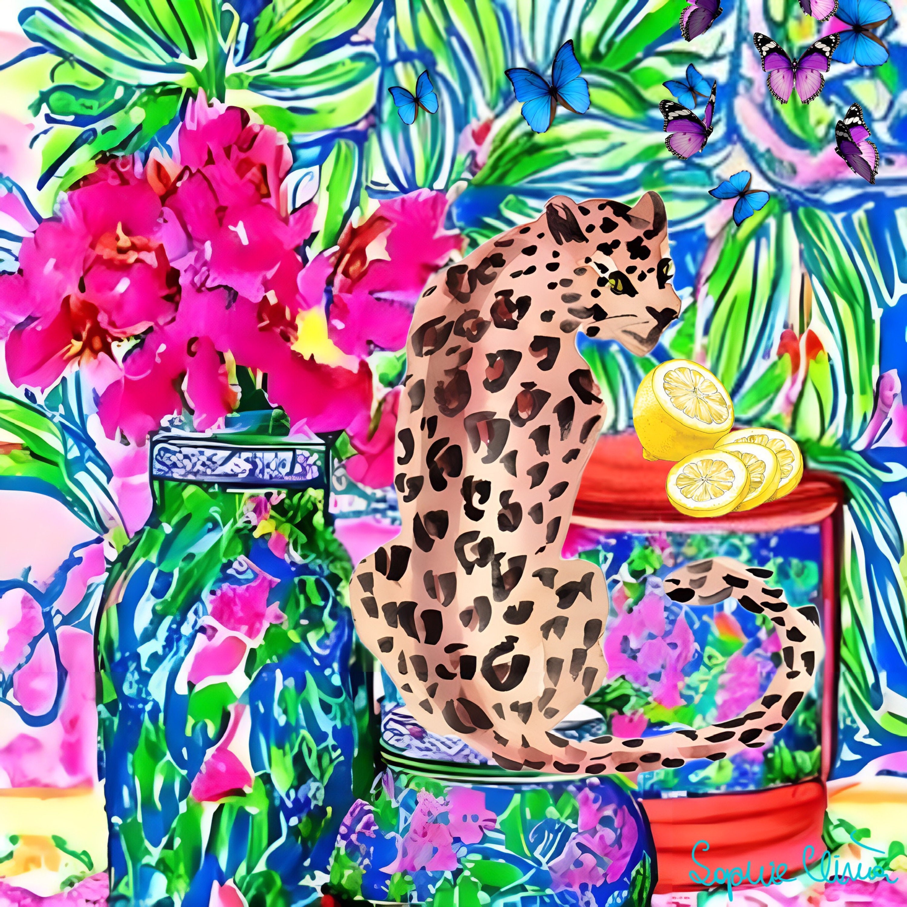 PLEASE NOTE SIZES ARE IN CM. High resolution download of Sophie’s original watercolor and markers painting of sitting cheetah  in colourful chinoiserie interior.These watercolor chinoiserie prints will enhance your Grandmillennial Style, Chinoiserie Chic Style, Grandmillennial Decor, or Preppy Chic Style Decor. Will look great on Office walls as well.