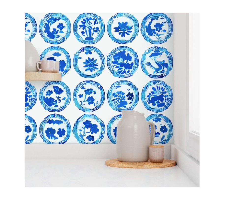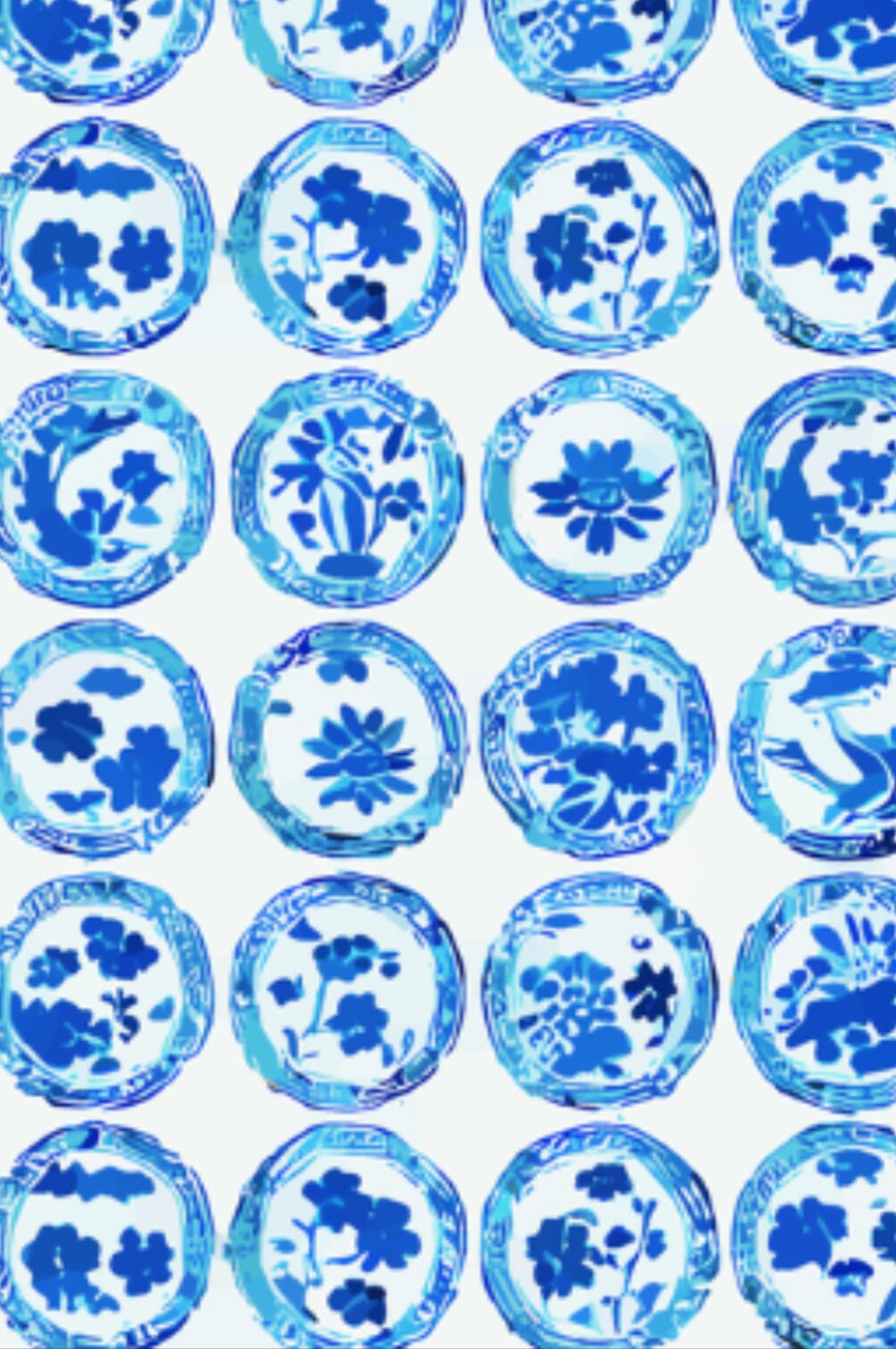 Full commercial license, print on demand sites included, abstract chinoiserie plates seamless pattern