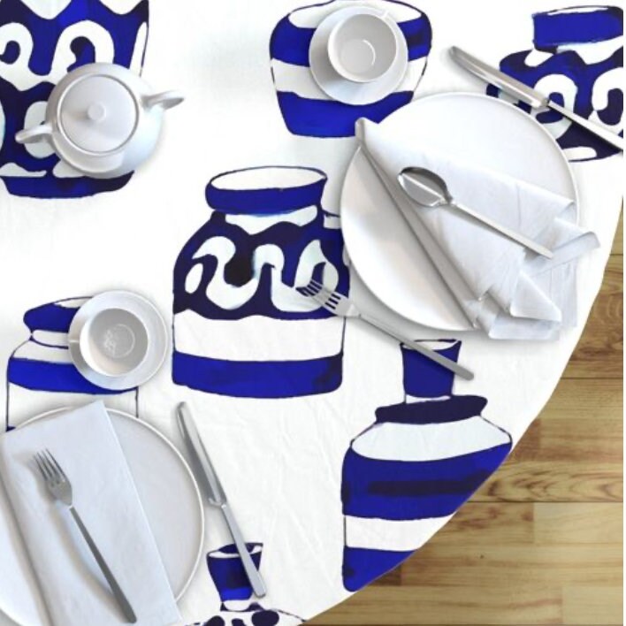 Full commercial license, print on demand sites included, blue and white jars seamless pattern