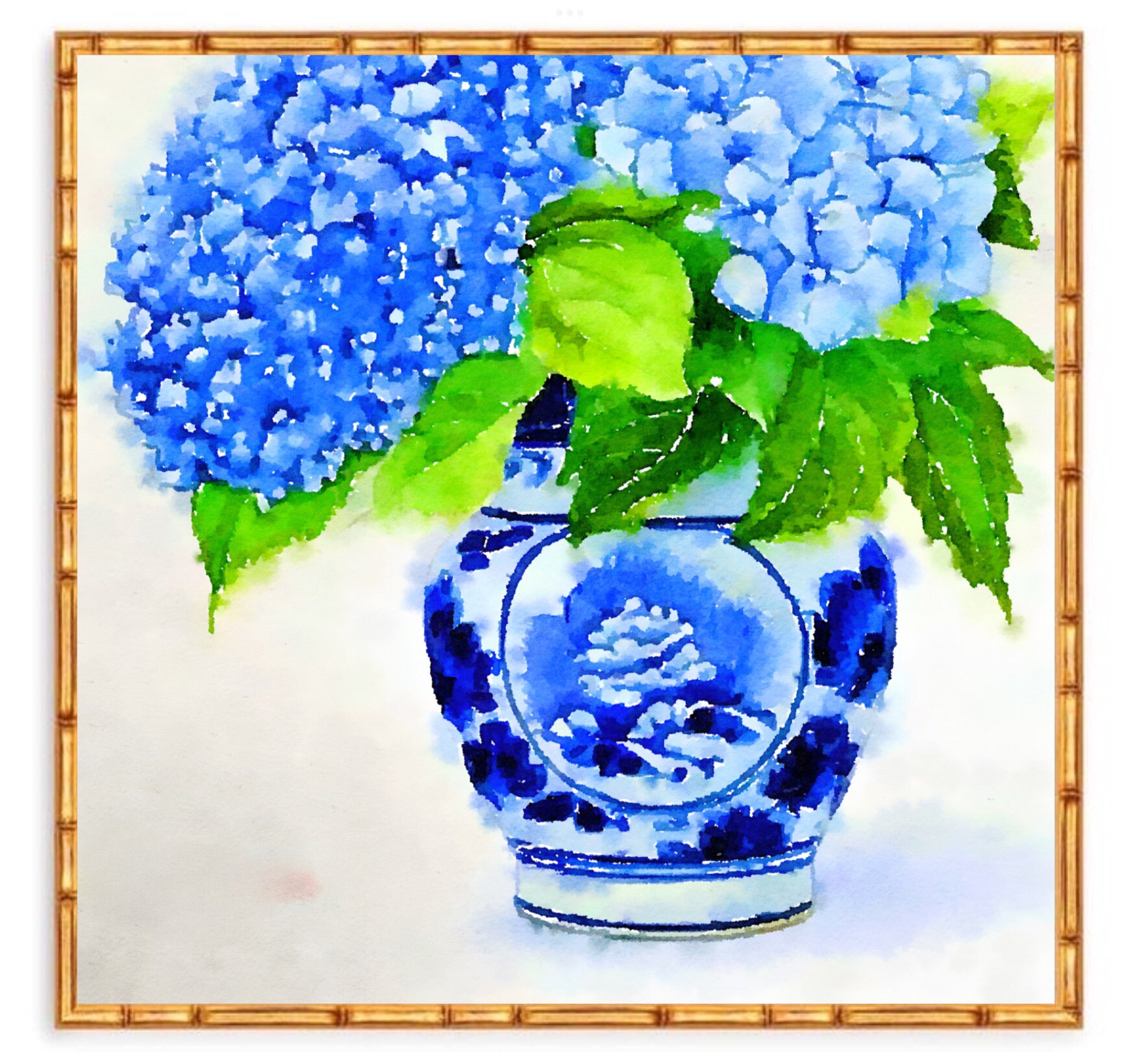Chinoiserie Ginger Jar Art: Hydrangea Watercolor Print (Digital File)