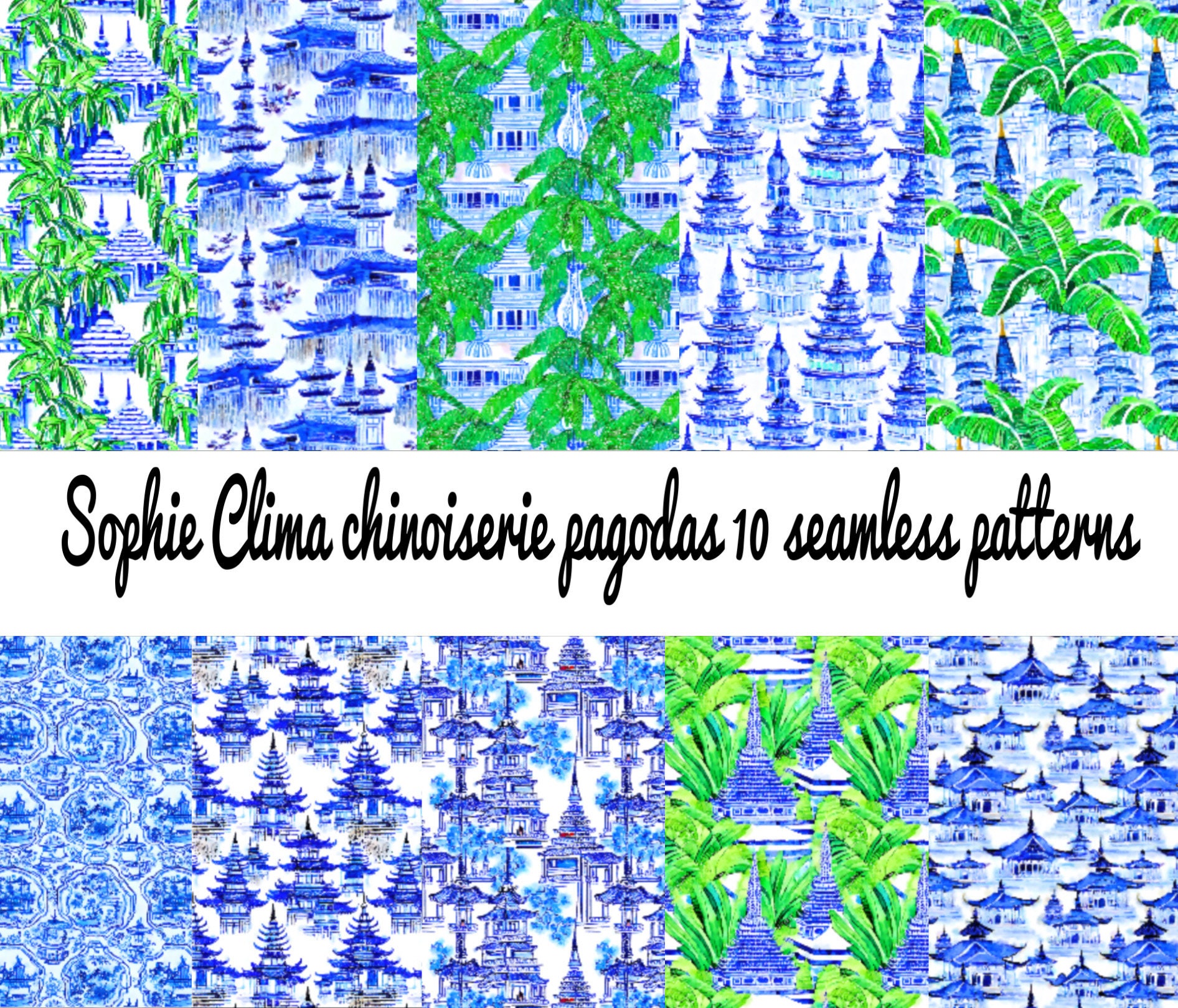 PLEASE NOTE SIZES ARE IN CM. Hand-drawn watercolor chinoiserie pagodas seamless pattern, digital paper. Bundle contains 10 hand-drawn designs ready to use in your grandmillennial style project. 12x12 inches, 340 dpi. Commercial use on any physical products, floral sublimation. Not for re-sale in digital form. You will receive 4 zip files with high resolution 340 dpi seamless patterns.Hand-painted design.