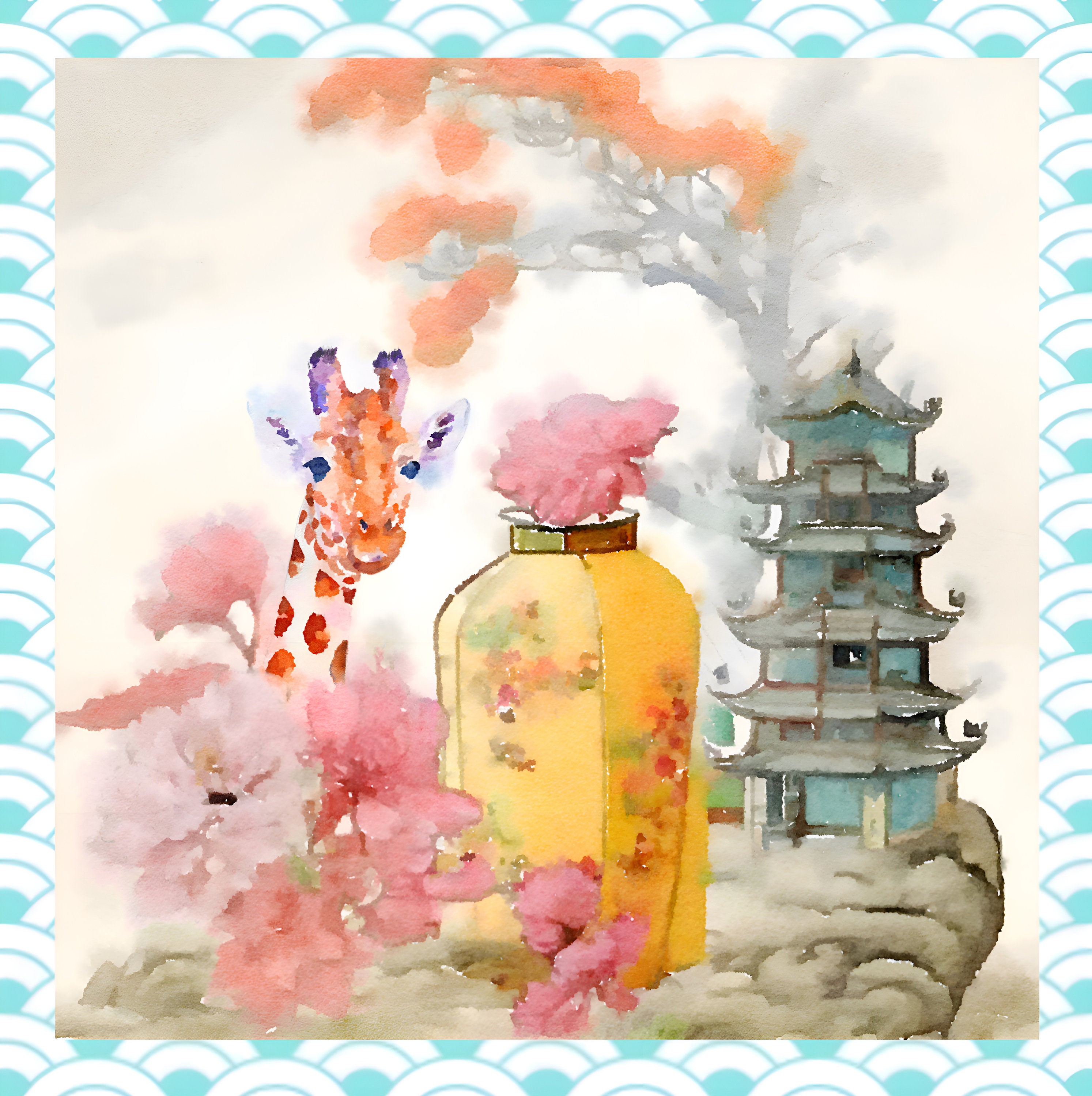 PLEASE NOTE SIZES ARE IN CM. Printable watercolor chinoiserie print of an original watercolor painting. Prints square up to 51x51 cm. Please contact me for other sizes.