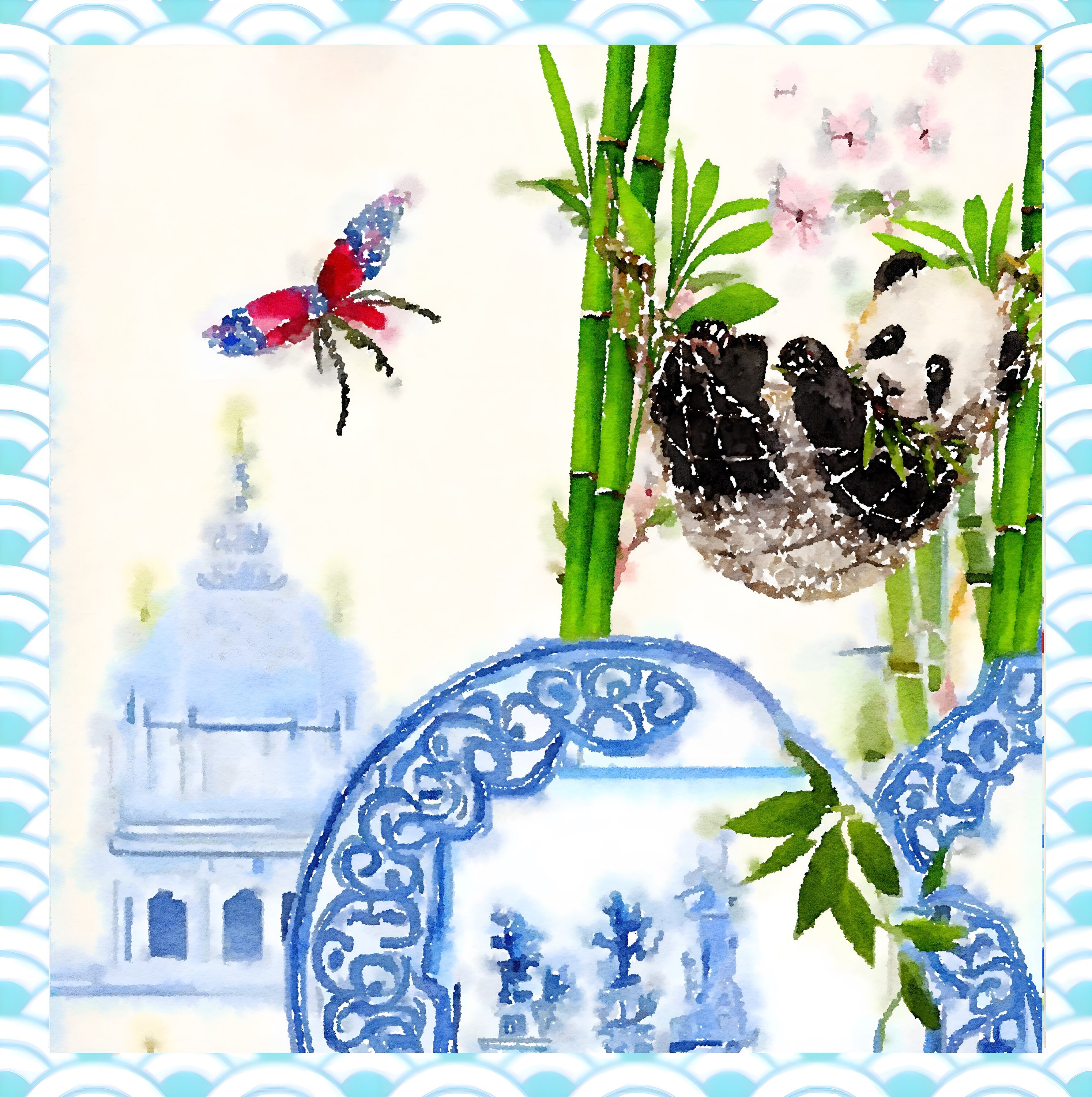 Watercolor Panda Print: Chinoiserie Plates, Grandmillennial Art