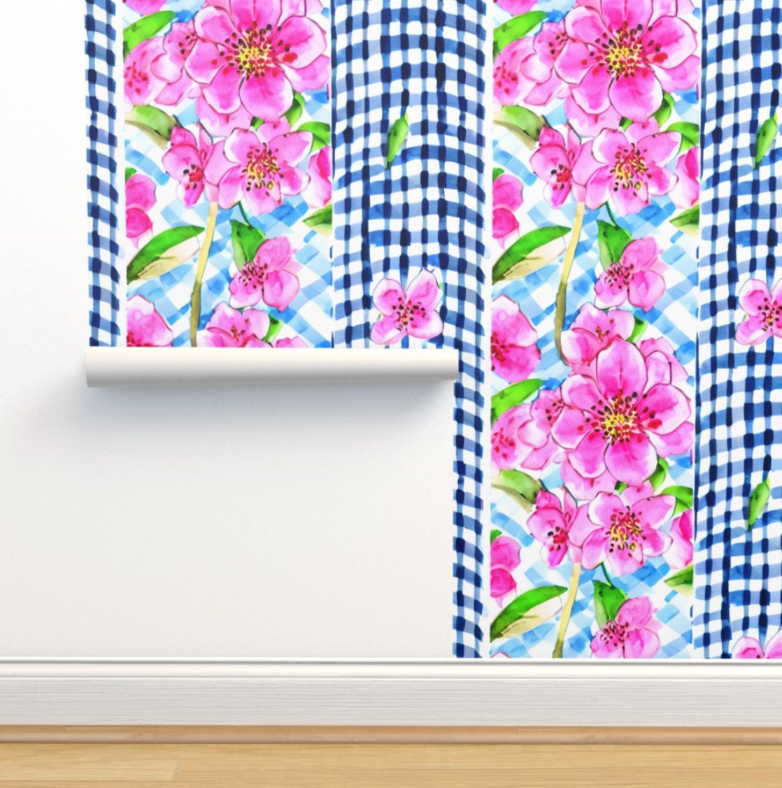 PLEASE NOTE SIZES ARE IN CM. Instant download blue gingham and pink flowers seamless pattern. Preppy watercolor seamless repeat pattern digital download. Perfect for fabrics,stickers,phone cases, cushions,mugs or scrap books.  For commercial use on physical products and print-on-demand sites. Not for giveaway or resale in digital format.