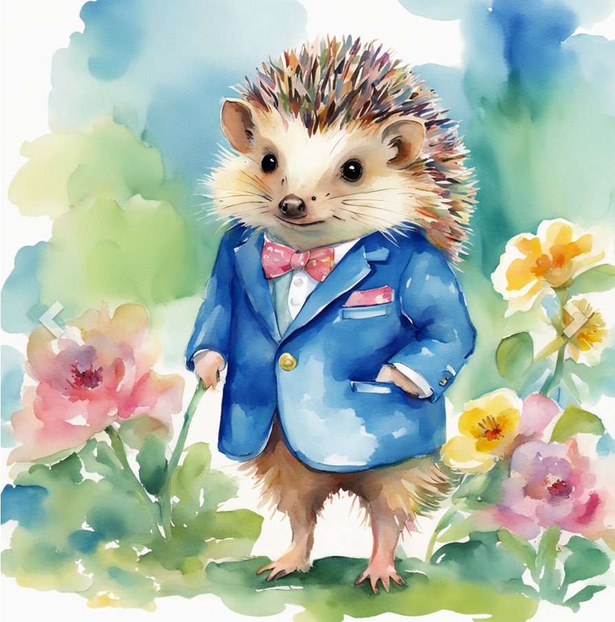 Hedgehog Watercolor Art Print: Dapper Animal Illustration (30x30cm)