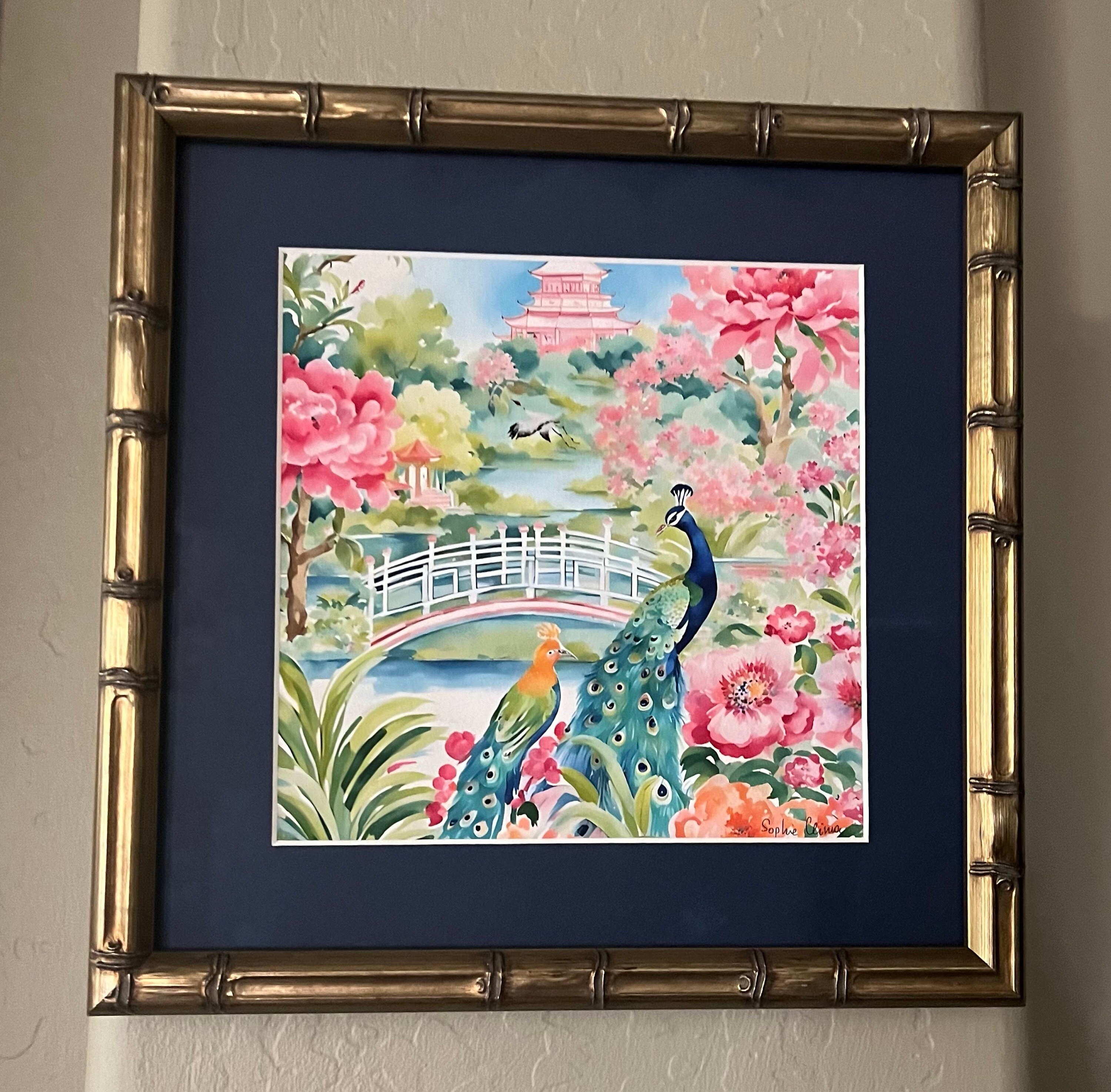 PLEASE NOTE SIZES ARE IN CM. Limited edition Giclee art print of original watercolor by Sophie Clima. Unframed. Ships in a tube. Each print is signed and dated by Sophie. These watercolor chinoiserie prints will enhance your Grandmillennial Style, Chinoiserie Chic Style, Grandmillennial Decor, or Preppy Chic Style Decor. Will look great on Office walls as well.