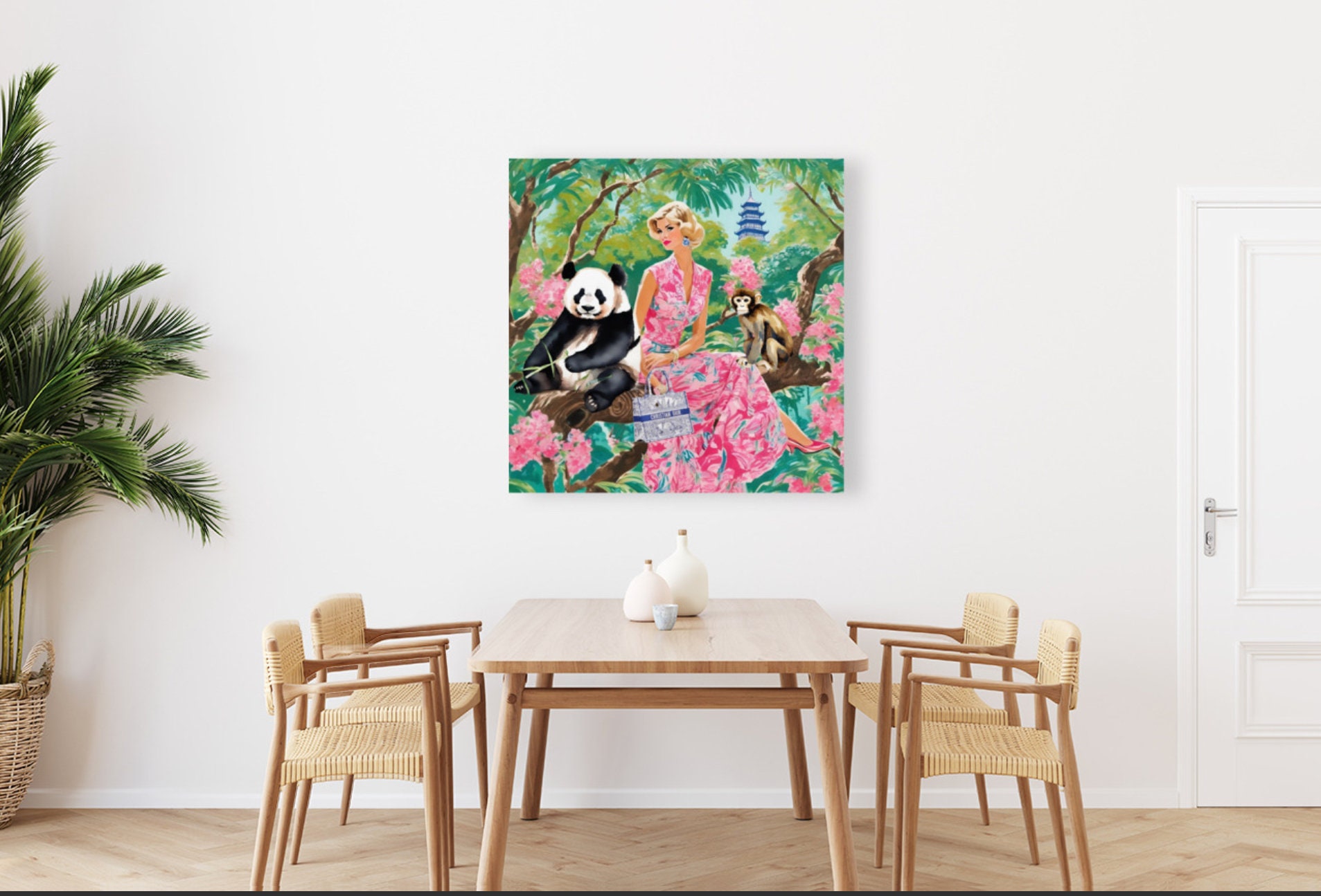 Chinoiserie Panda Art Print: Whimsical Grandmillennial Decor