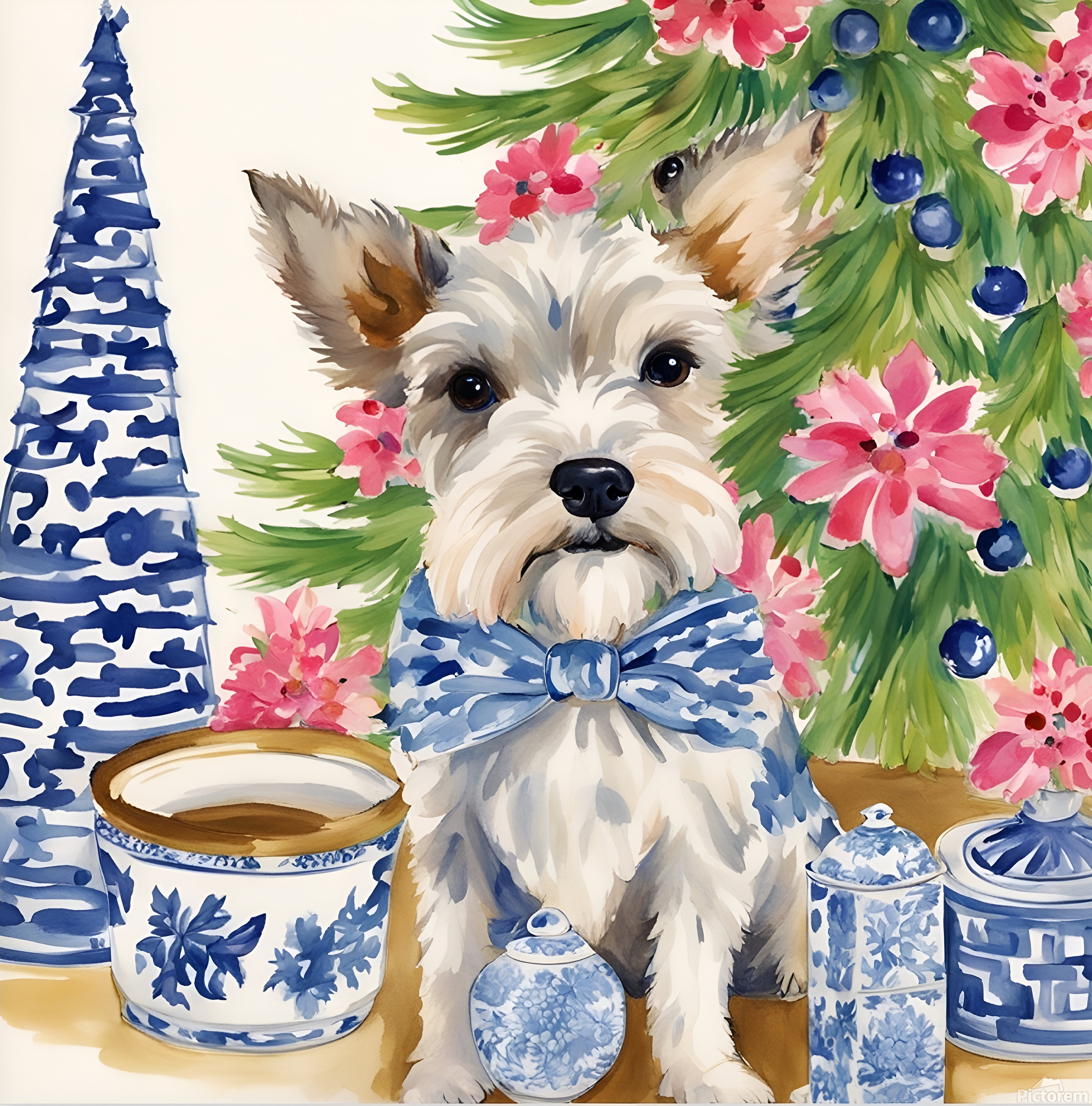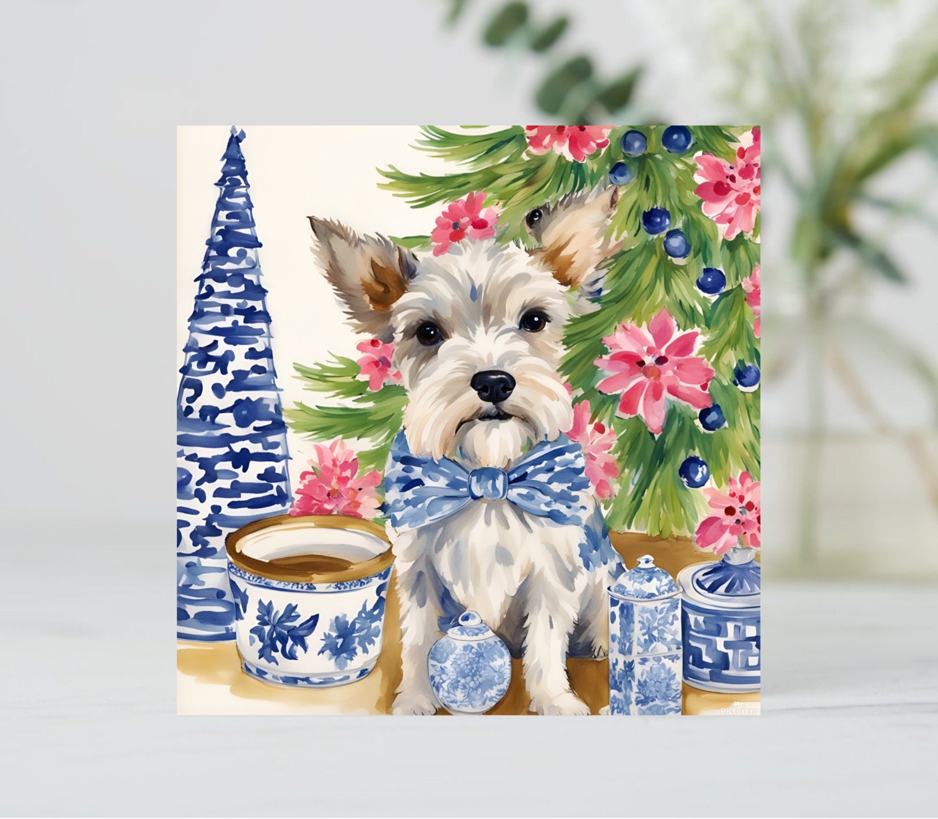 Watercolor Terrier Christmas Card: Chinoiserie Holiday Greeting (Set of 10)