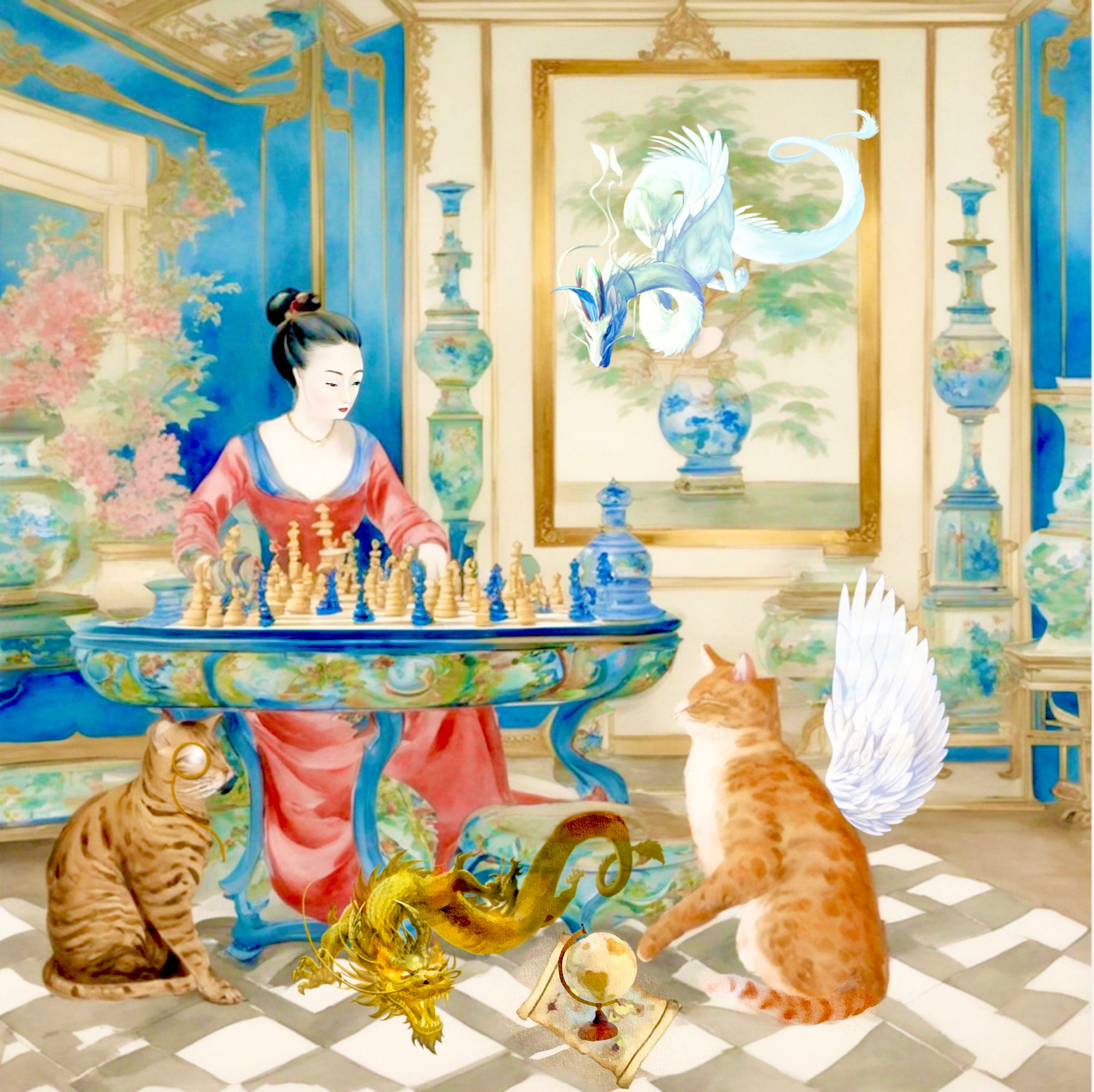 Sophie's art is the modern interpretation of Chinese artistic traditions featuring pagodas, landscapes, blue and white porcelain, ginger jars, pagodas, cheetahs and monkeys. Sophie developed her own recognizable style with bright colors and whimsical details.