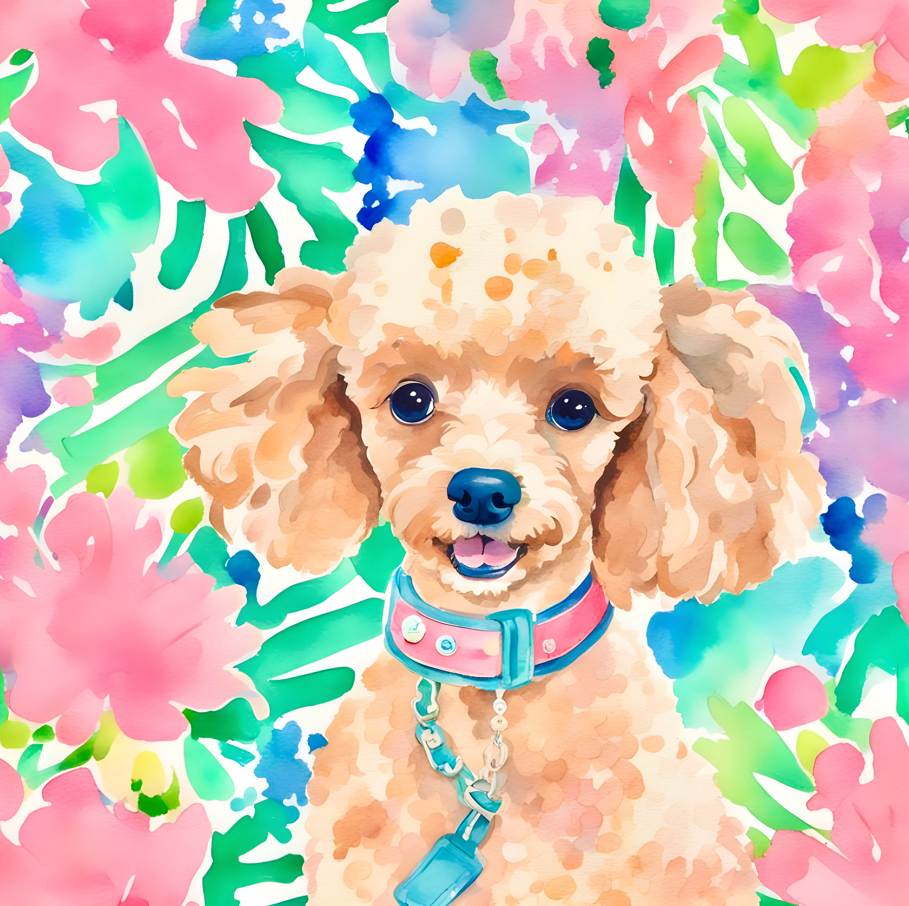 Poodle Watercolor Portrait: Grandmillennial Floral Giclee Art Print