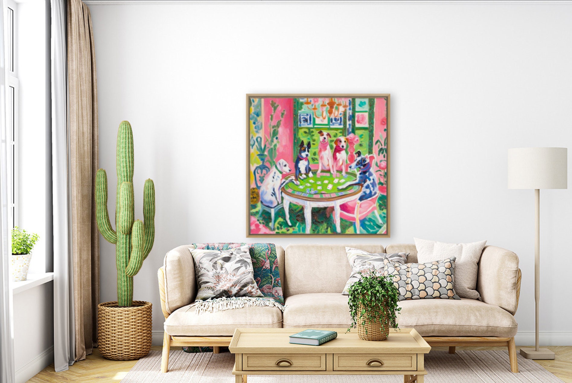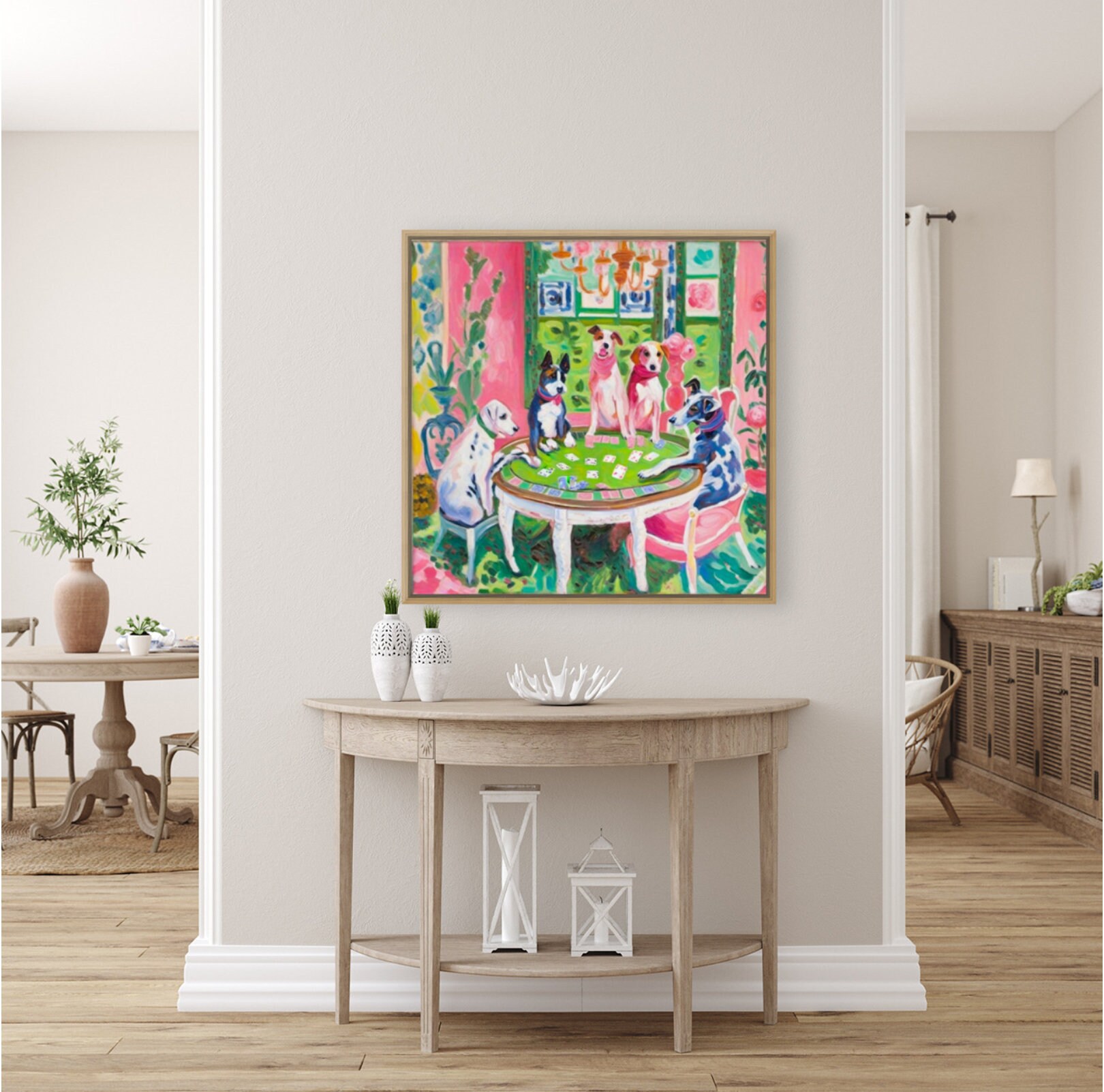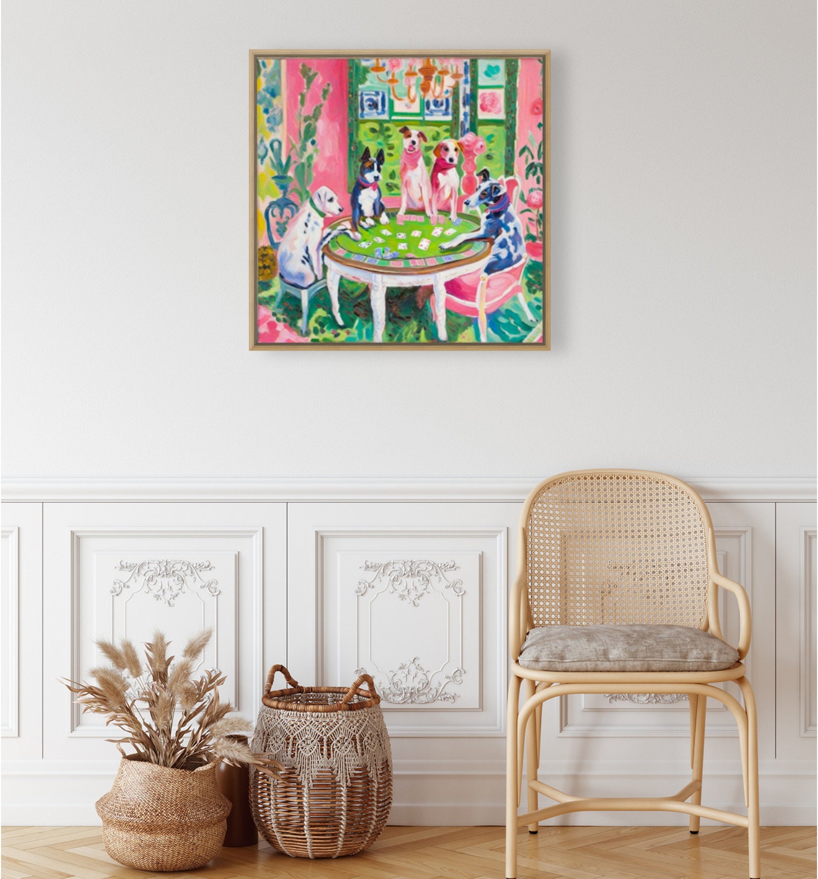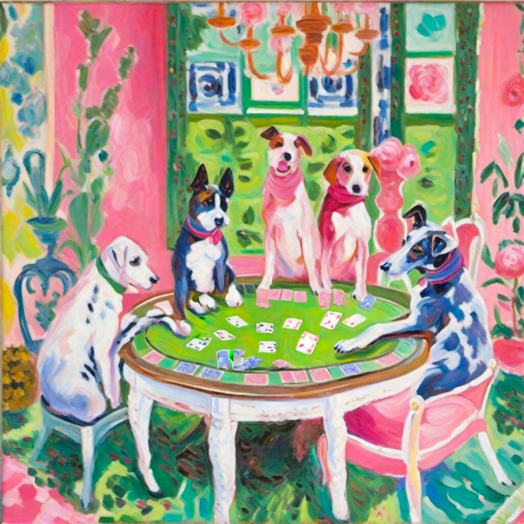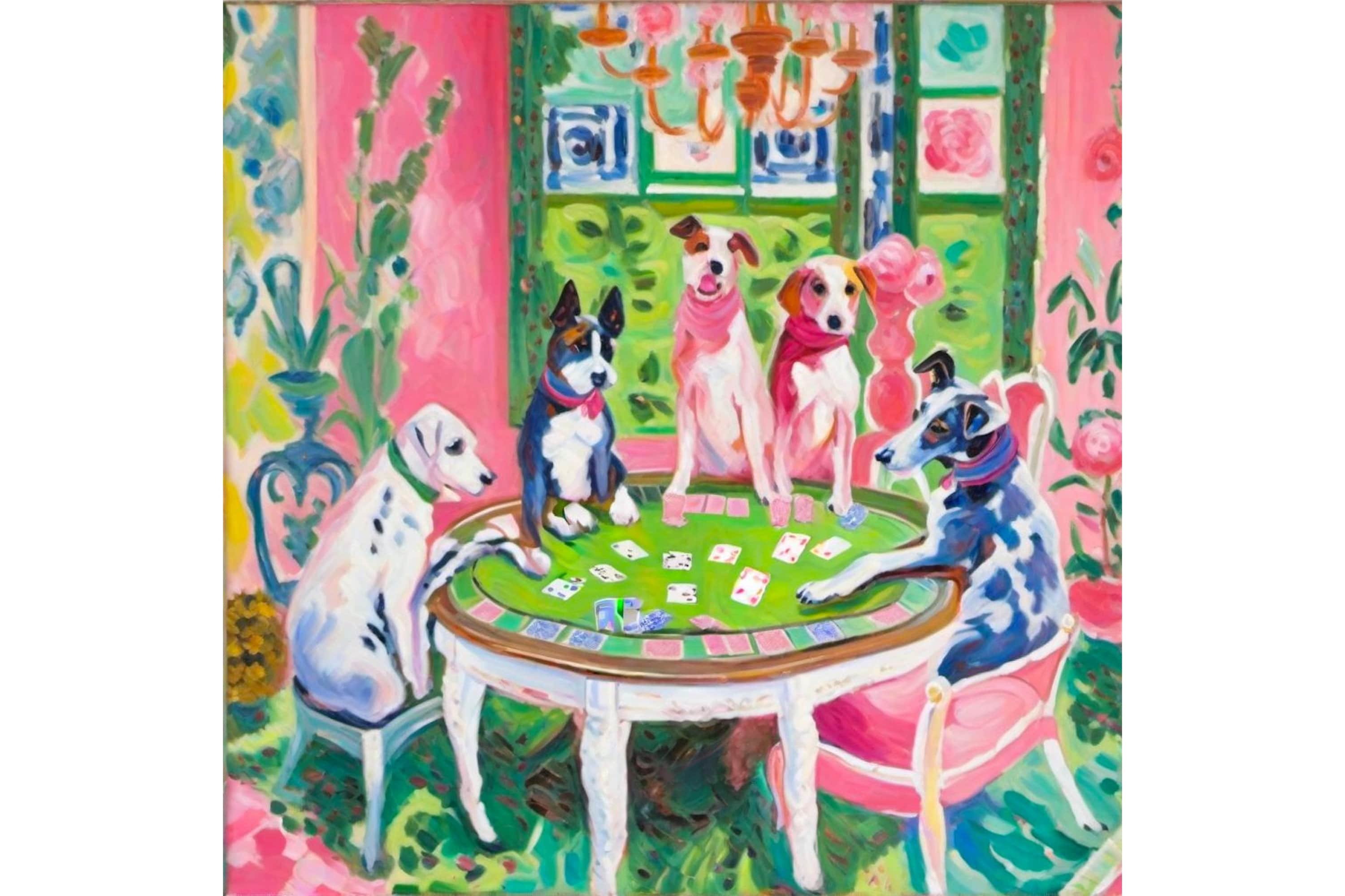 Grandmillennial art, Dogs playing poker, whimsical fine art print