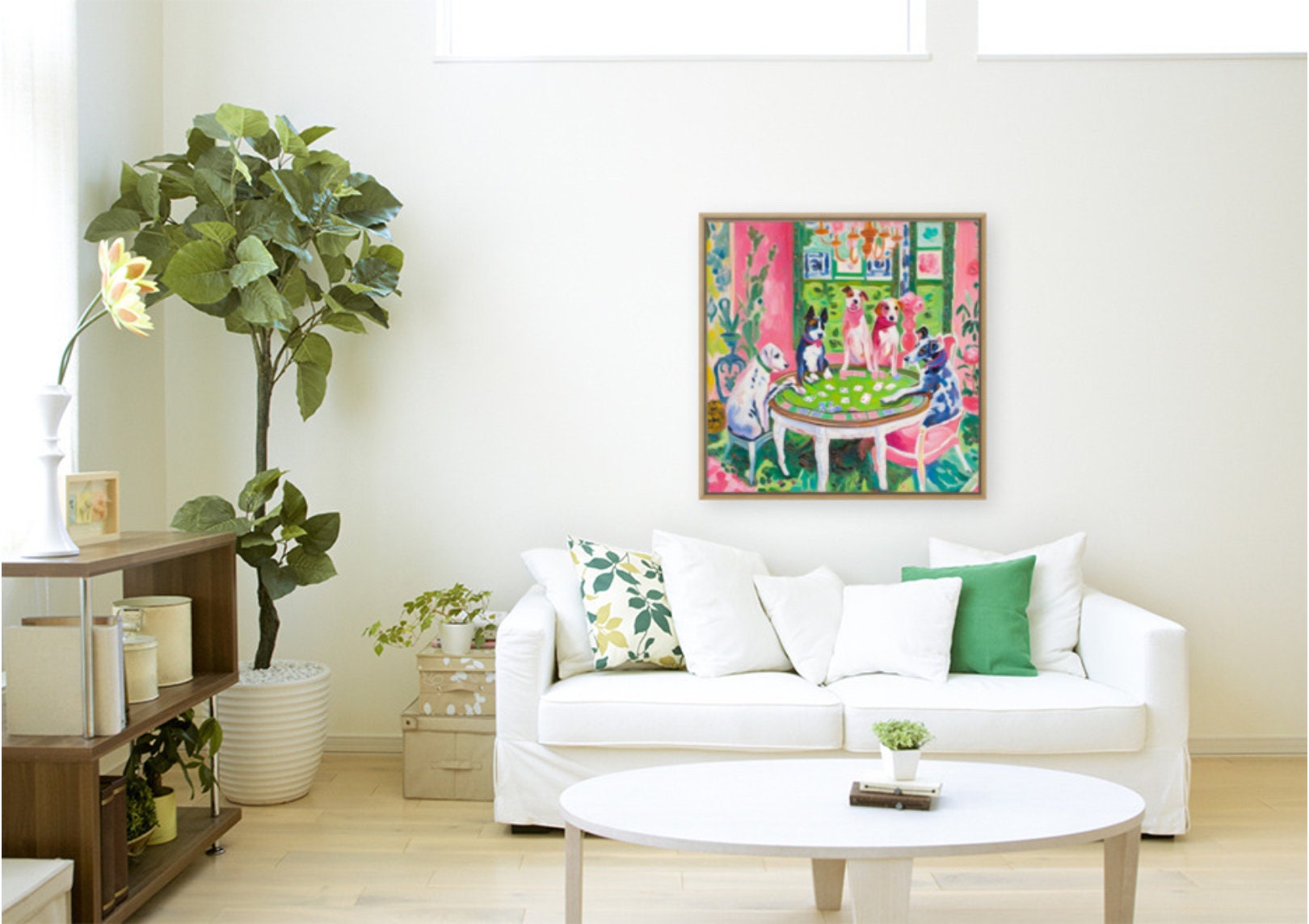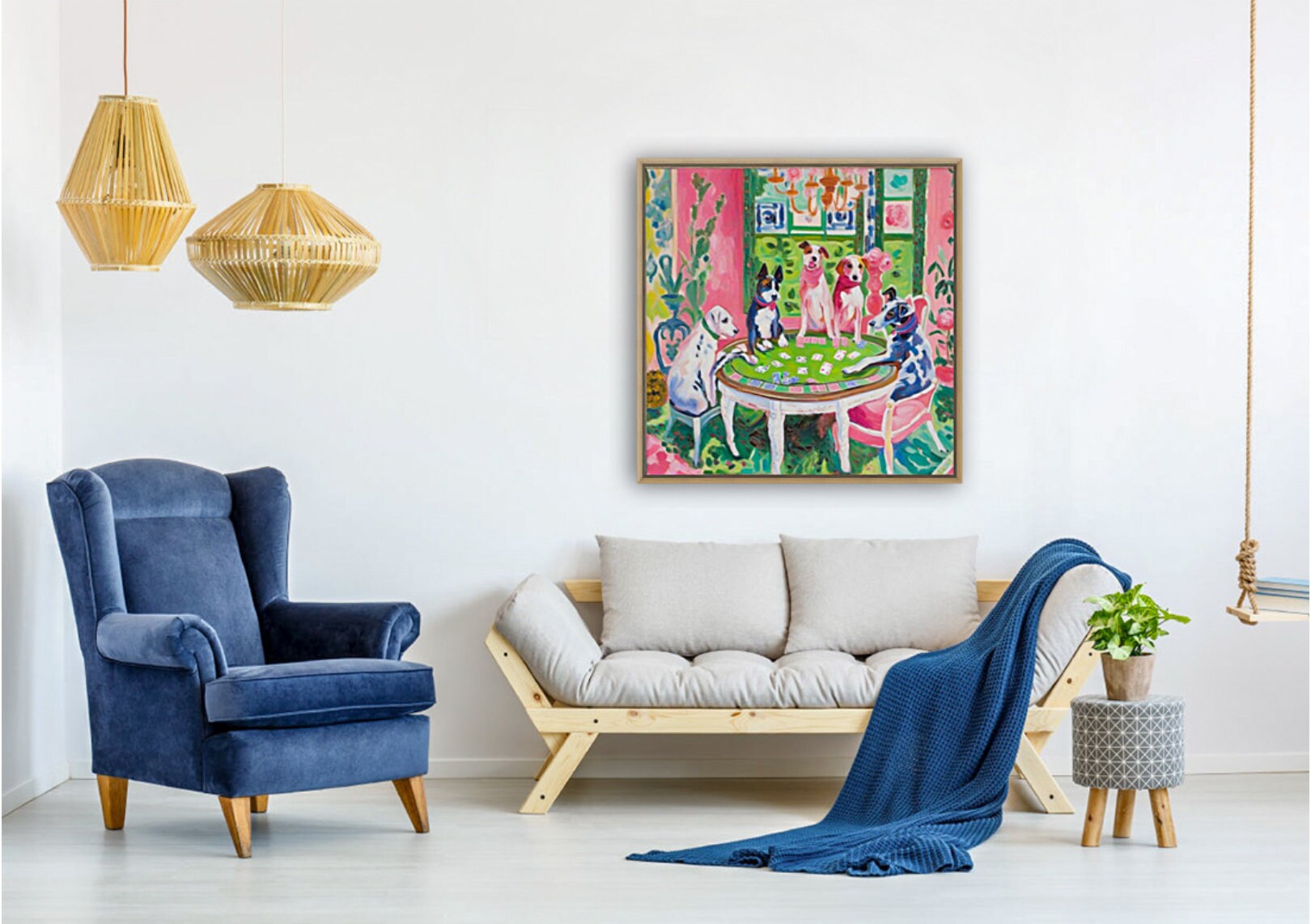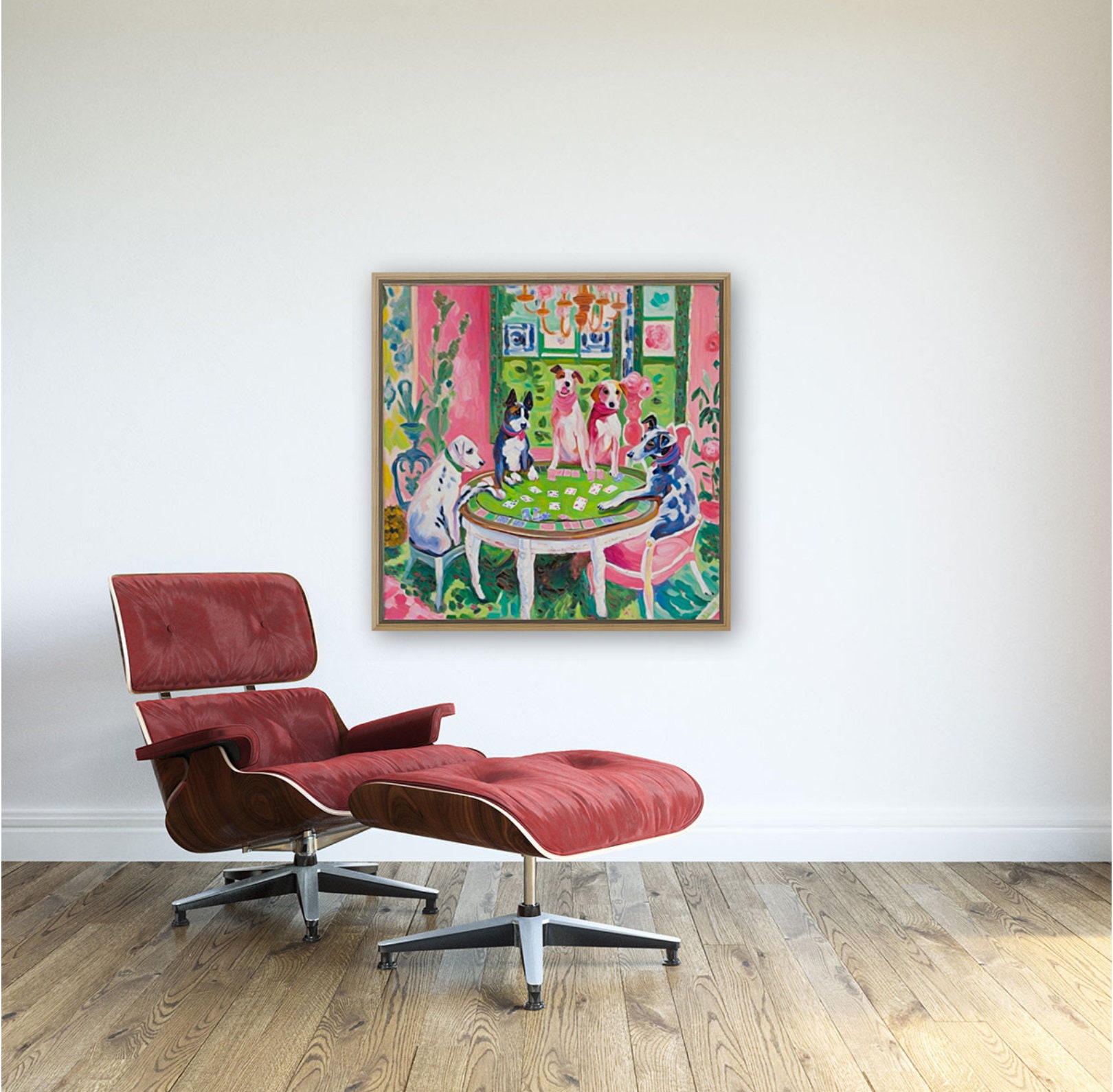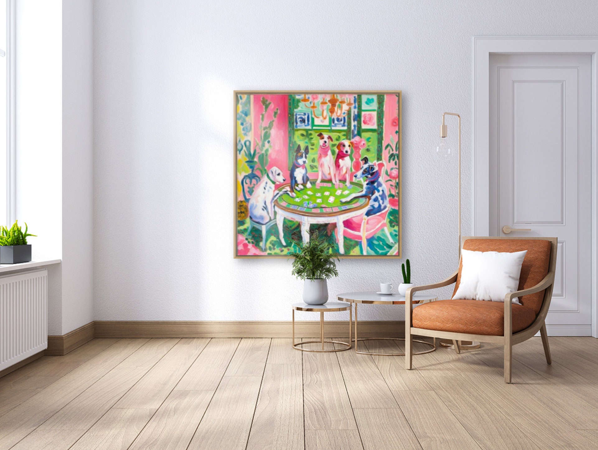 Grandmillennial art, Dogs playing poker, whimsical fine art print