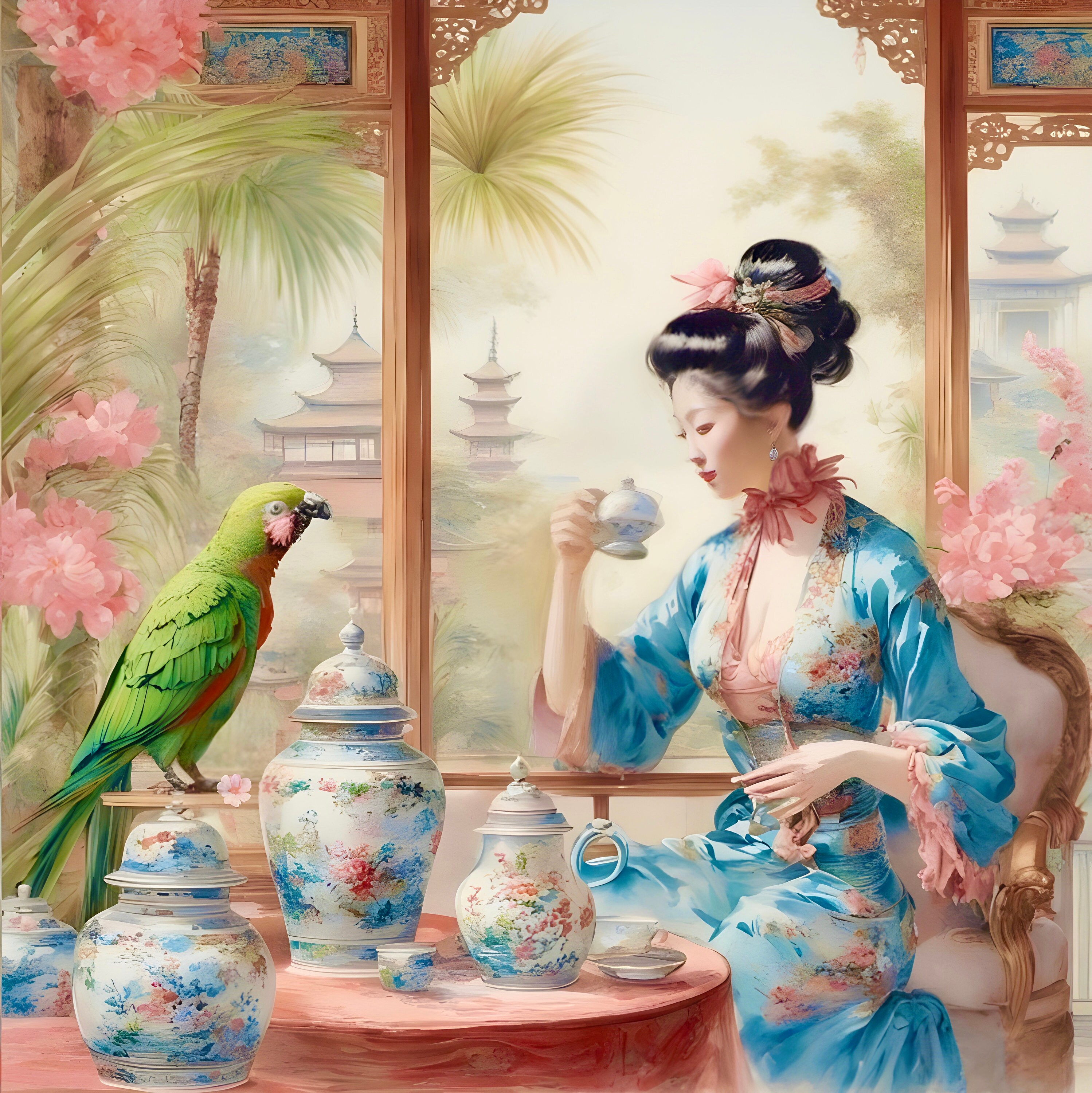 Chinoiserie art, Cherry blossom in the Tea Palace, chinoiserie giclee print