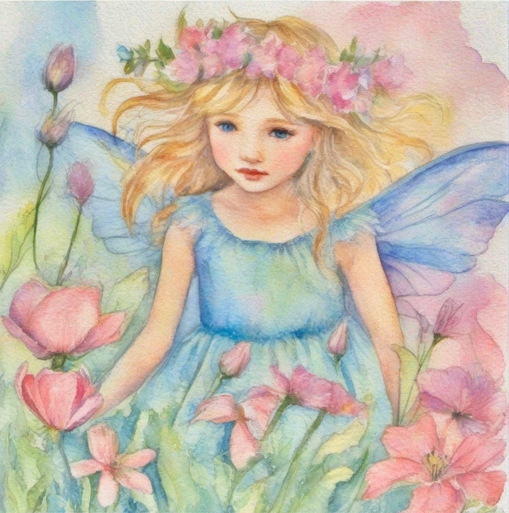 Flower Fairy Watercolor Print: Signed Art for Child's Room (30x30cm)