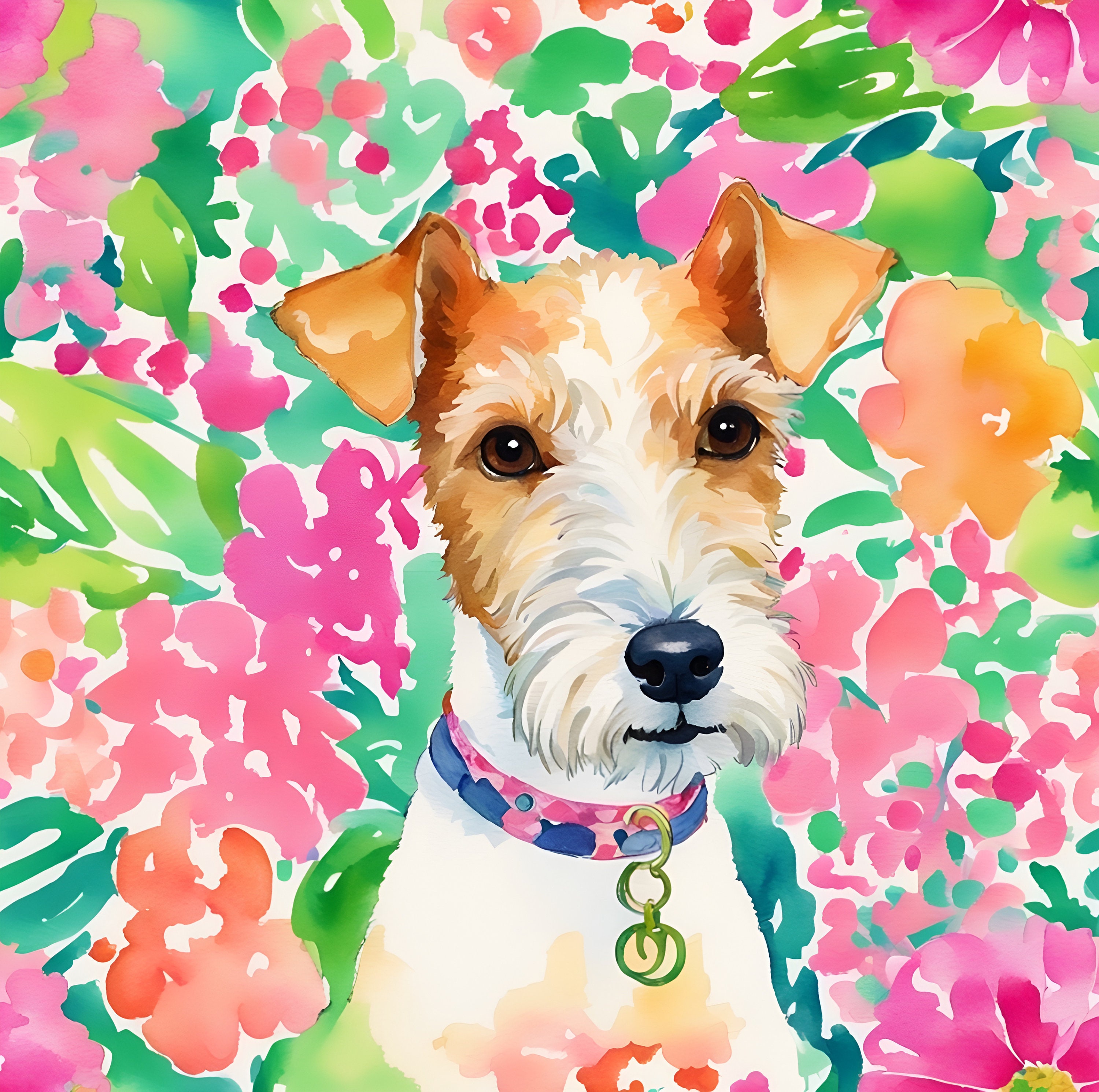 Grandmillennial art, custom dog portrait download