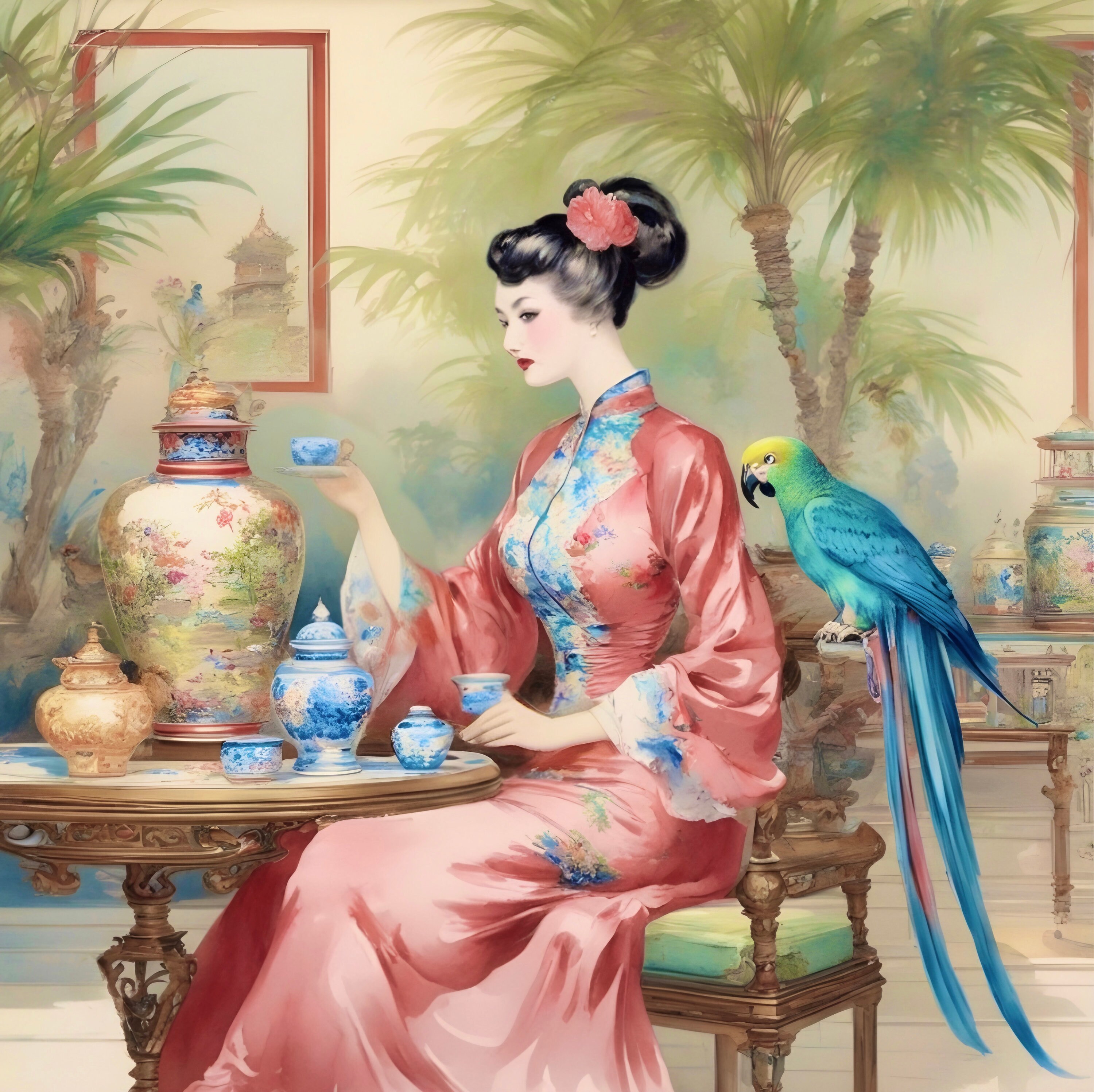 Chinoiserie art, Afternoon in the Tea Palace, chinoiserie giclee print