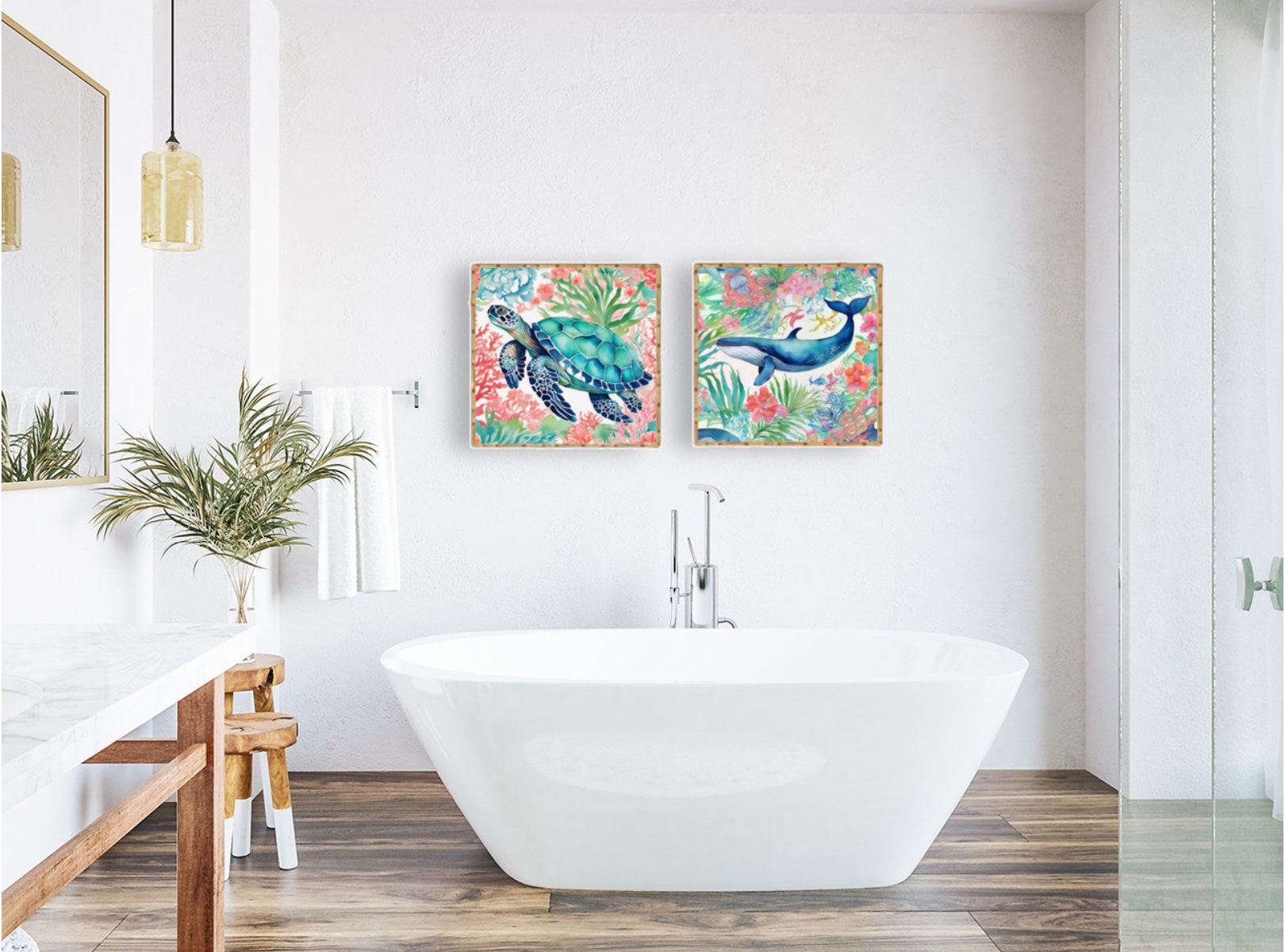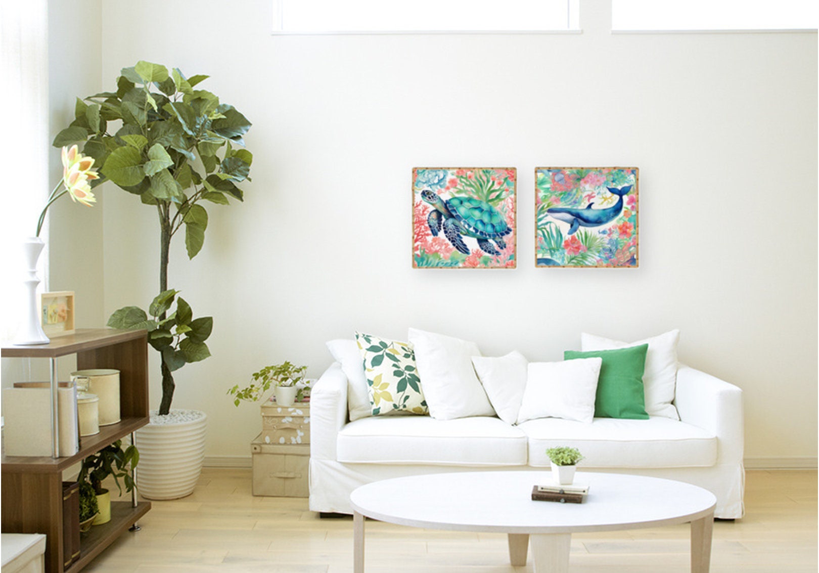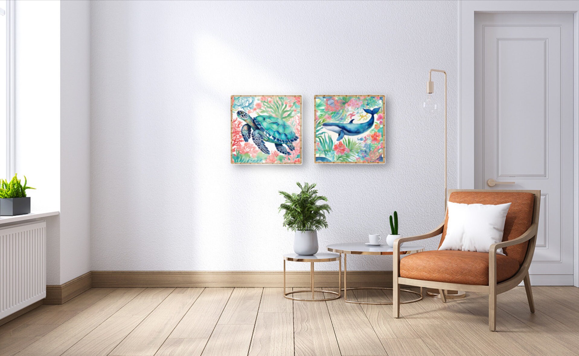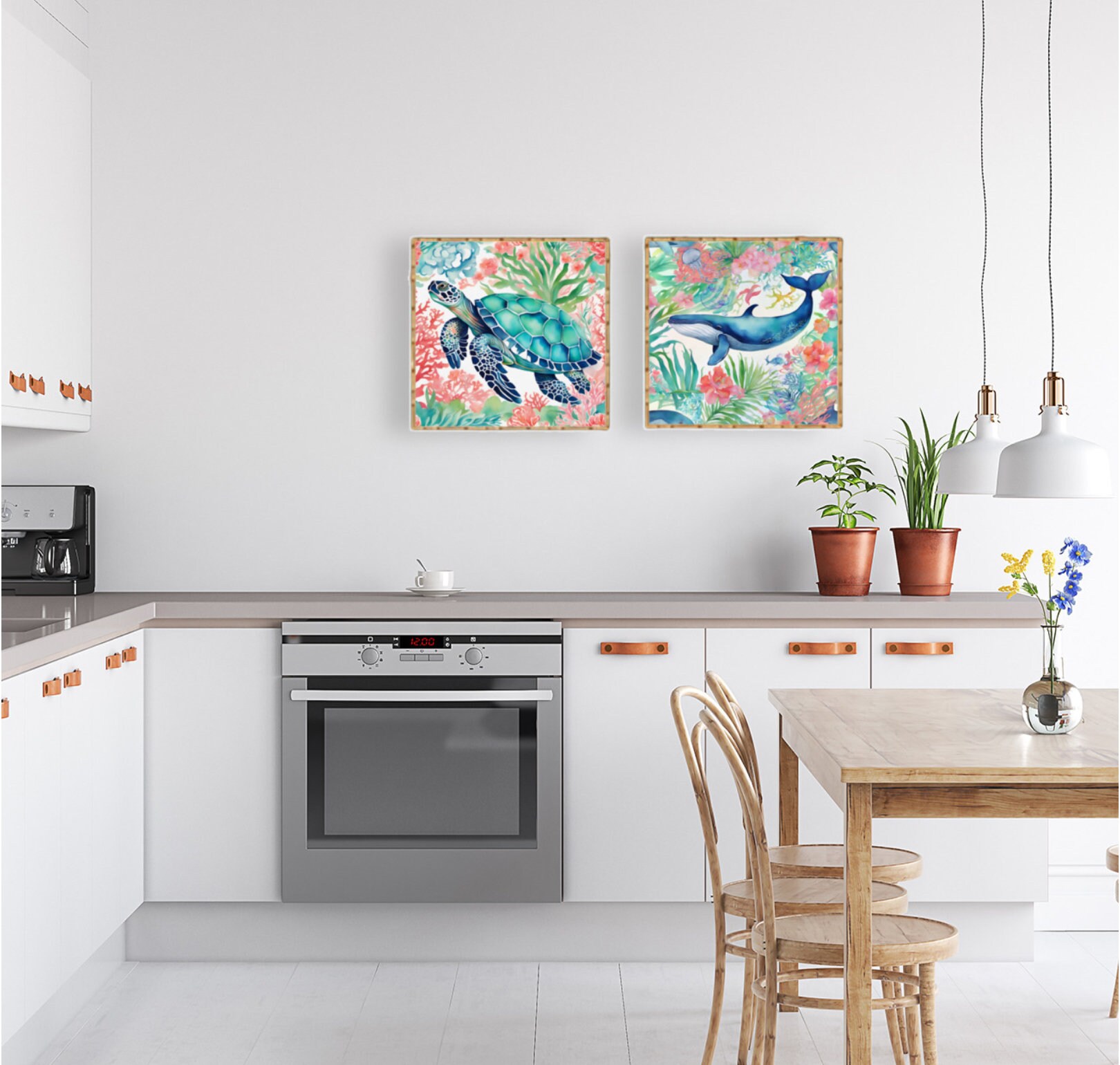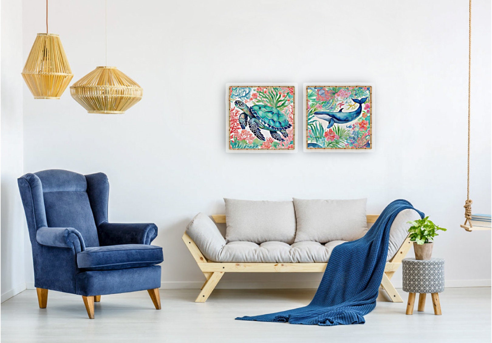 Turtle and Whale Art Prints: Grandmillennial Coral Reef Set