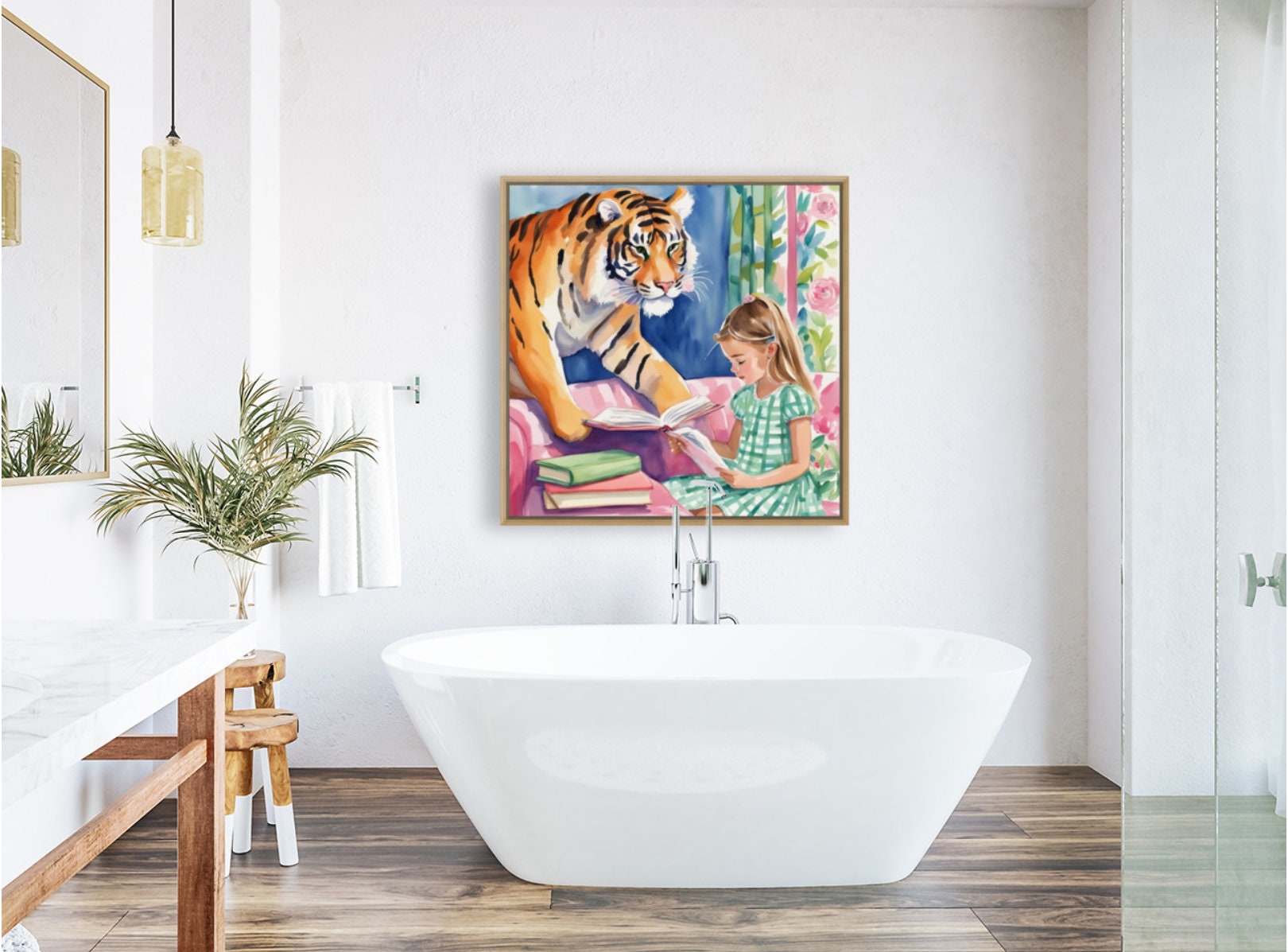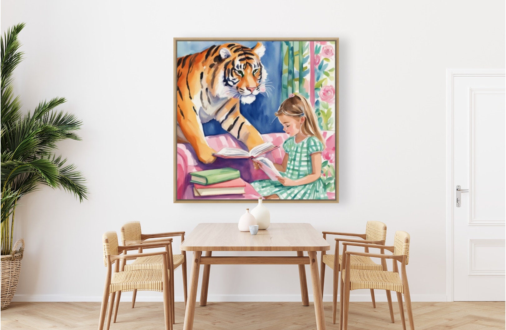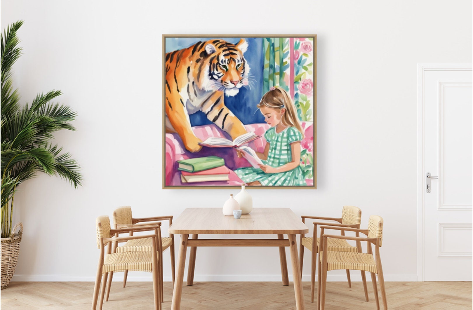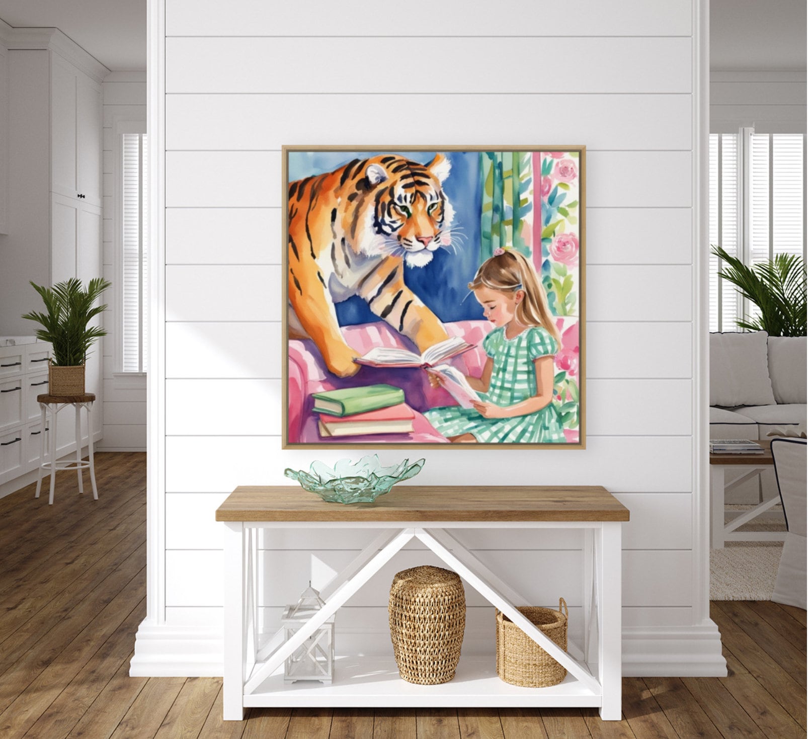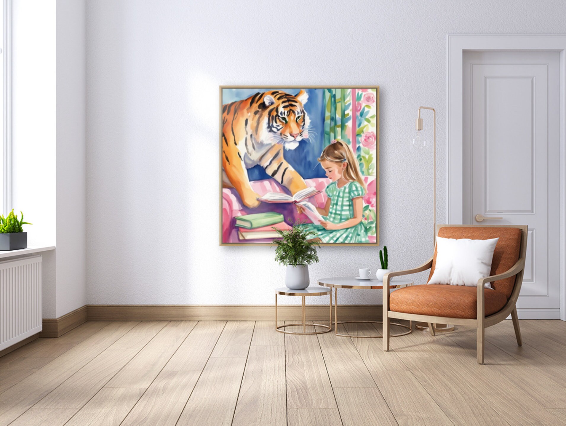 Grandmillennial art, The tiger ate my homework, children illustration watercolor