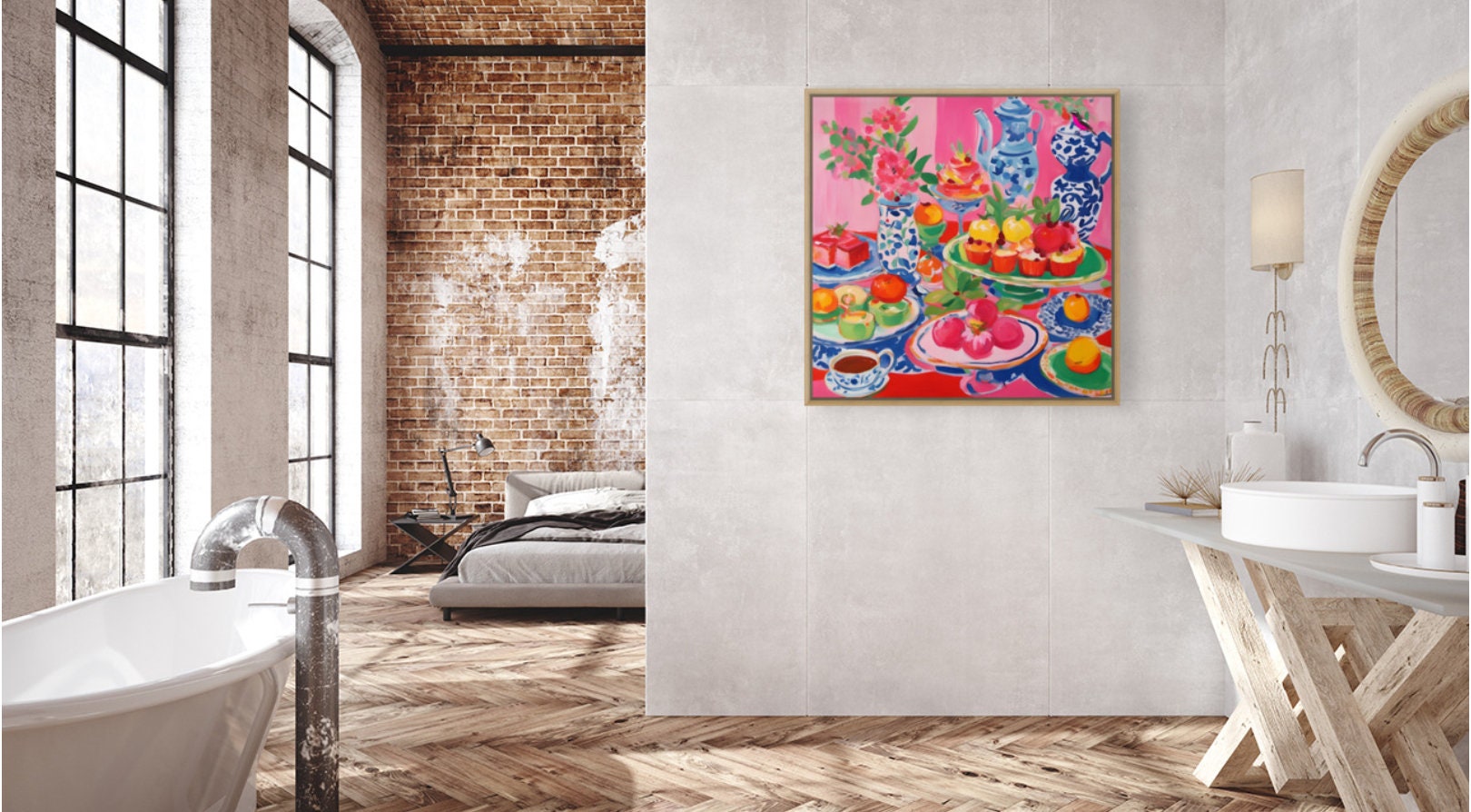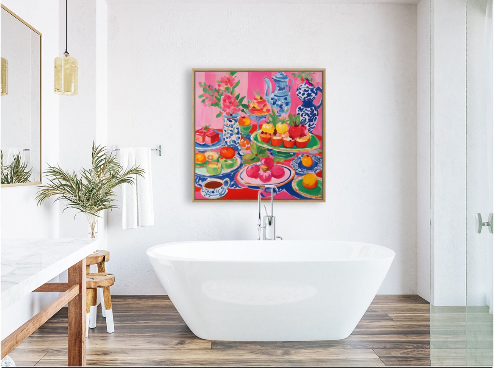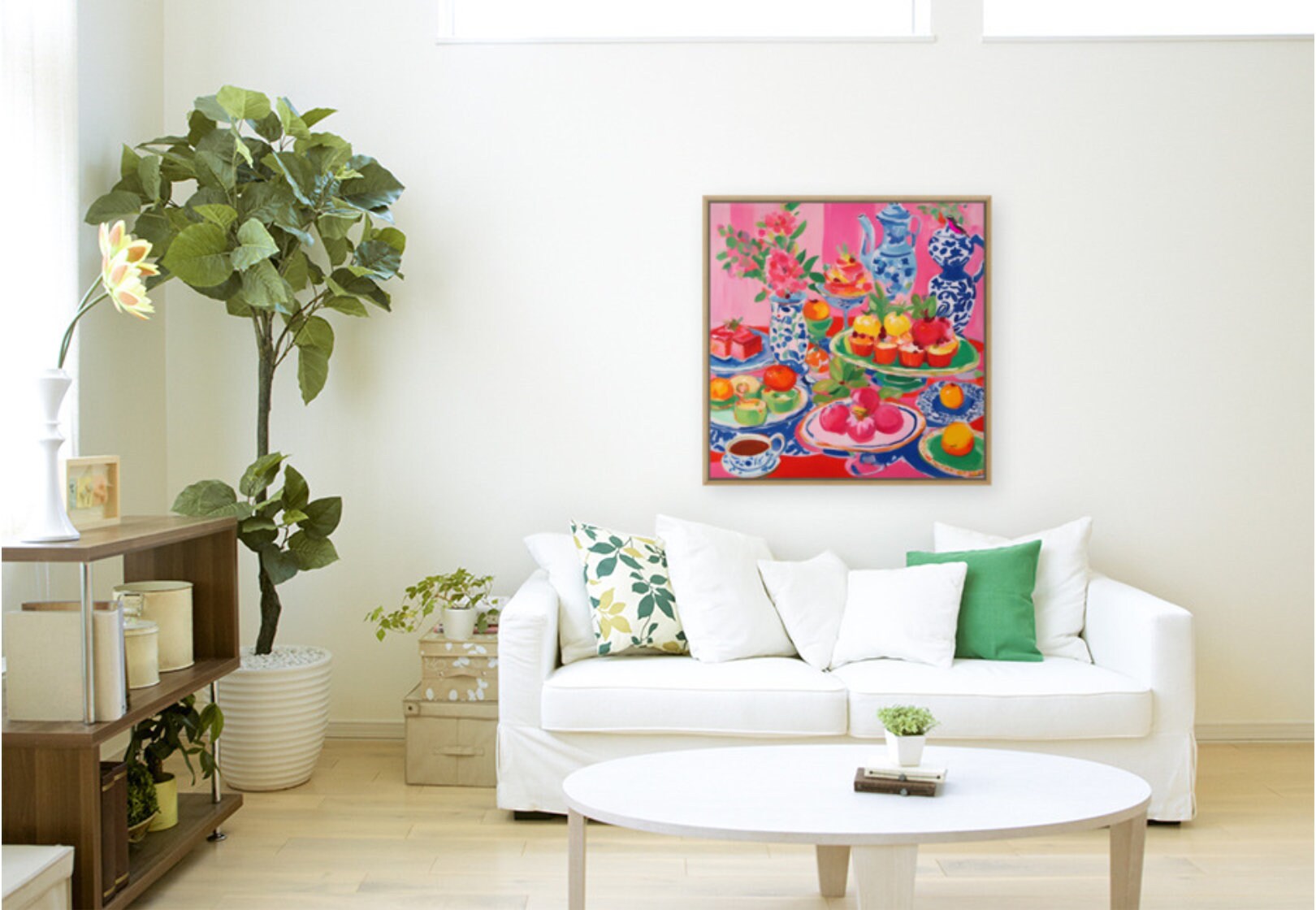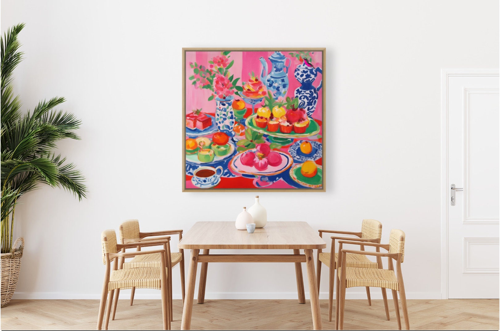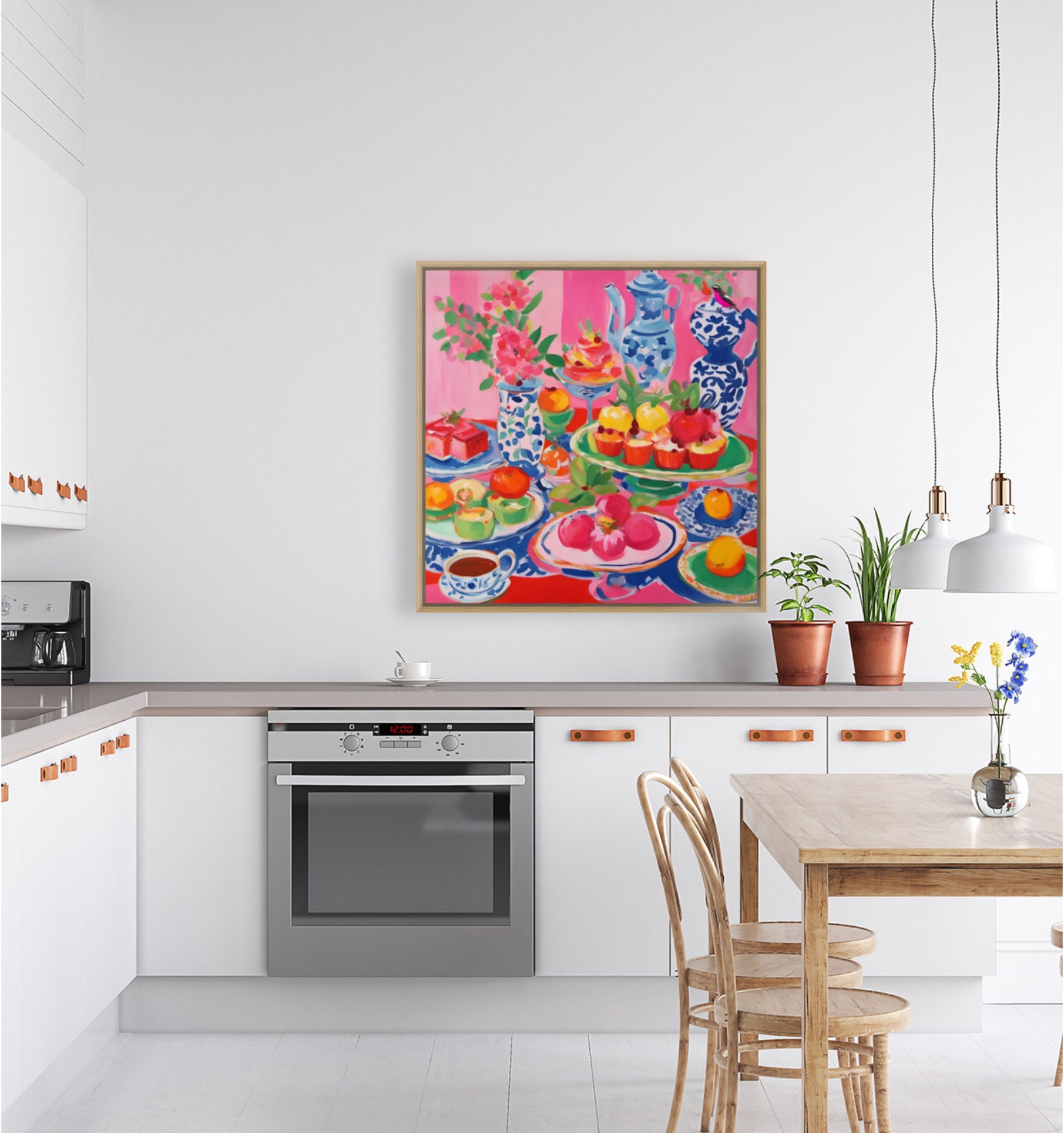 Grandmillennial art, Preppy English tea and cakes, whimsical watercolor