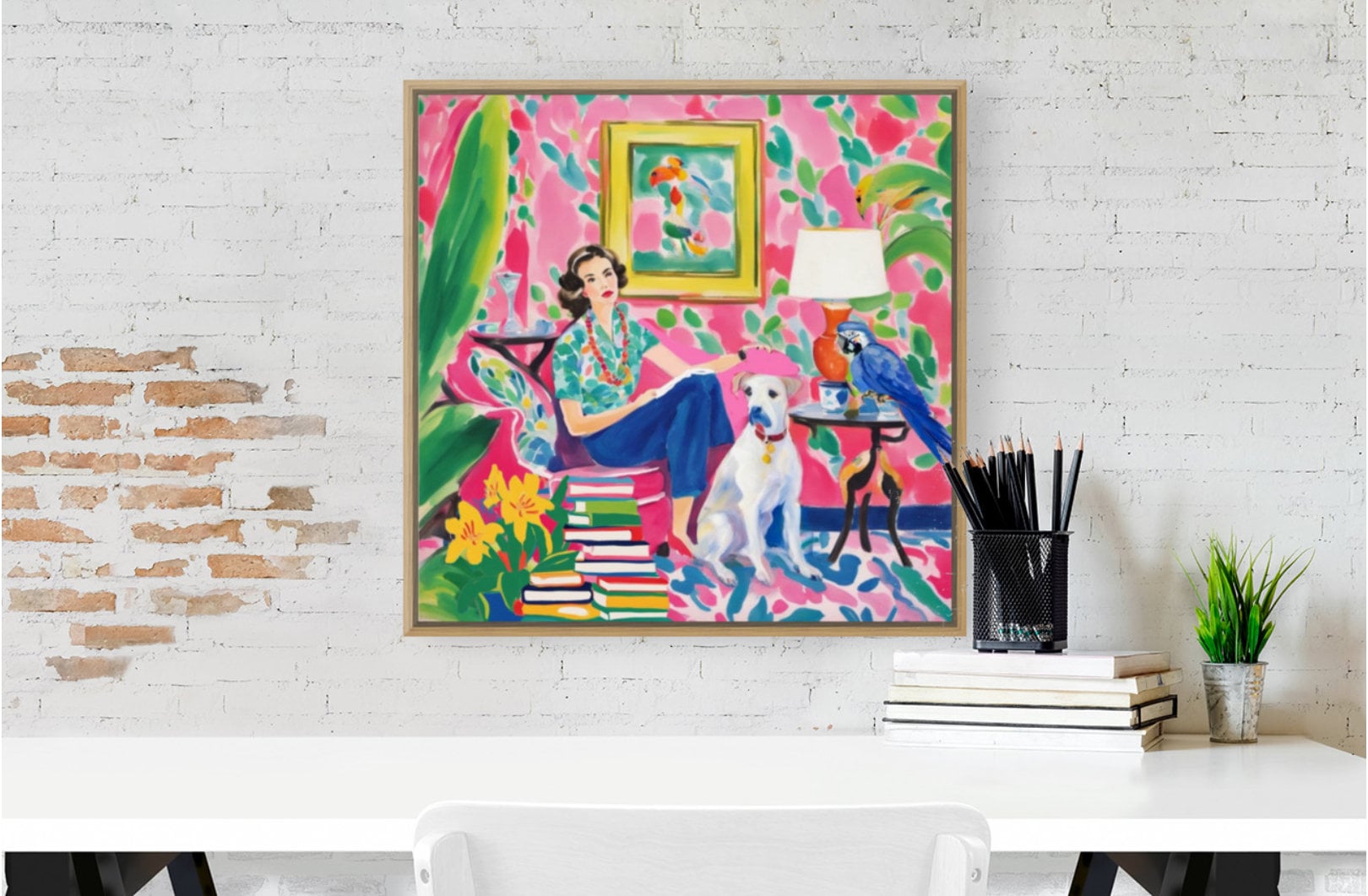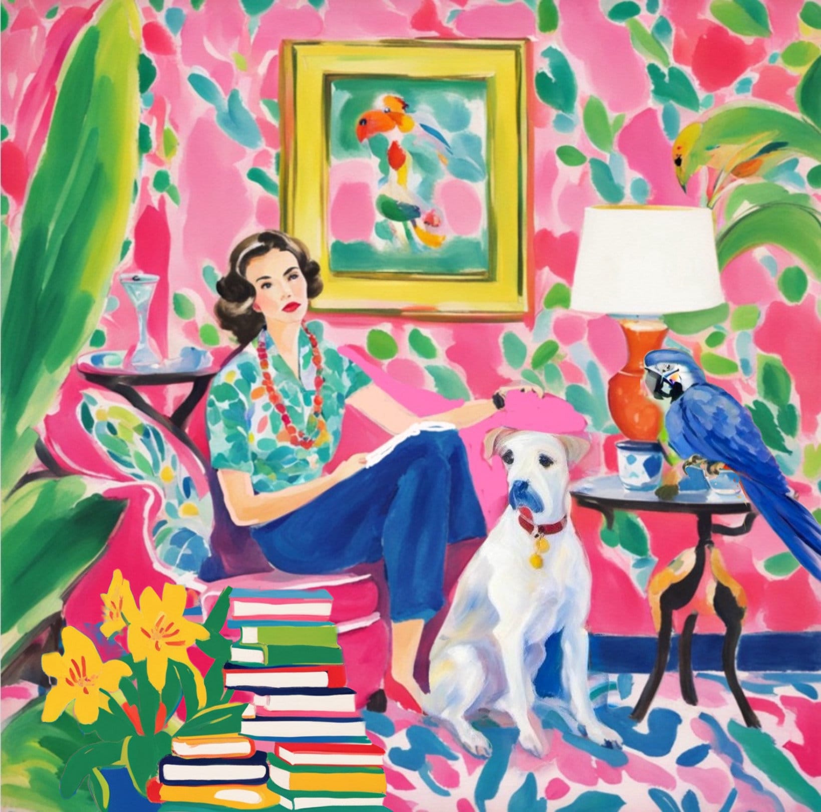 Whimsical Reading Nook Art Print: Colorful Interior Scene