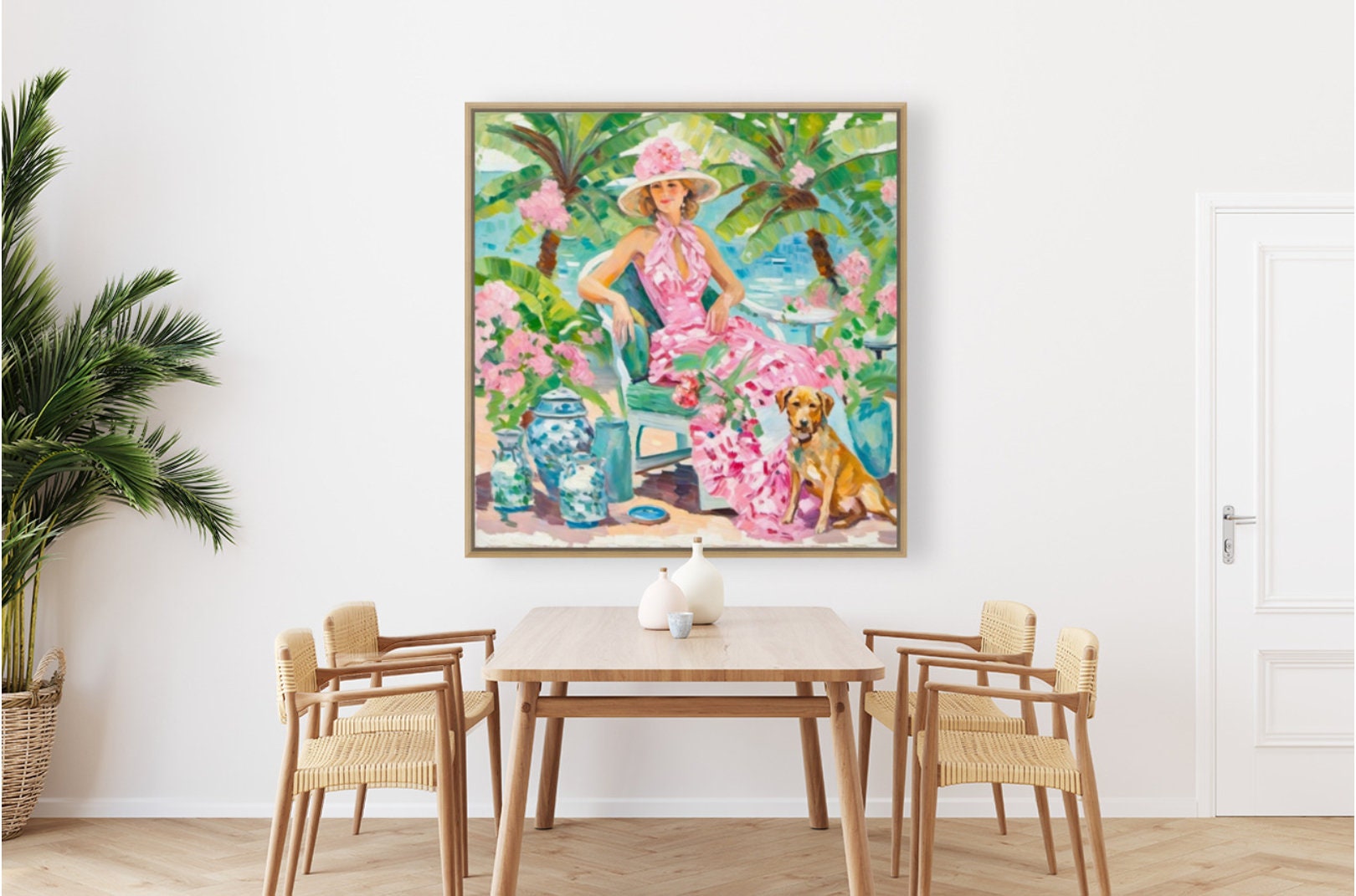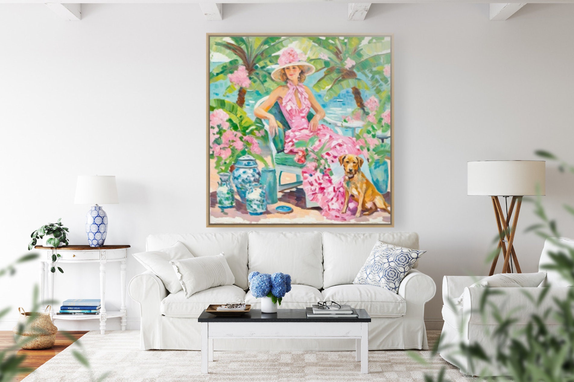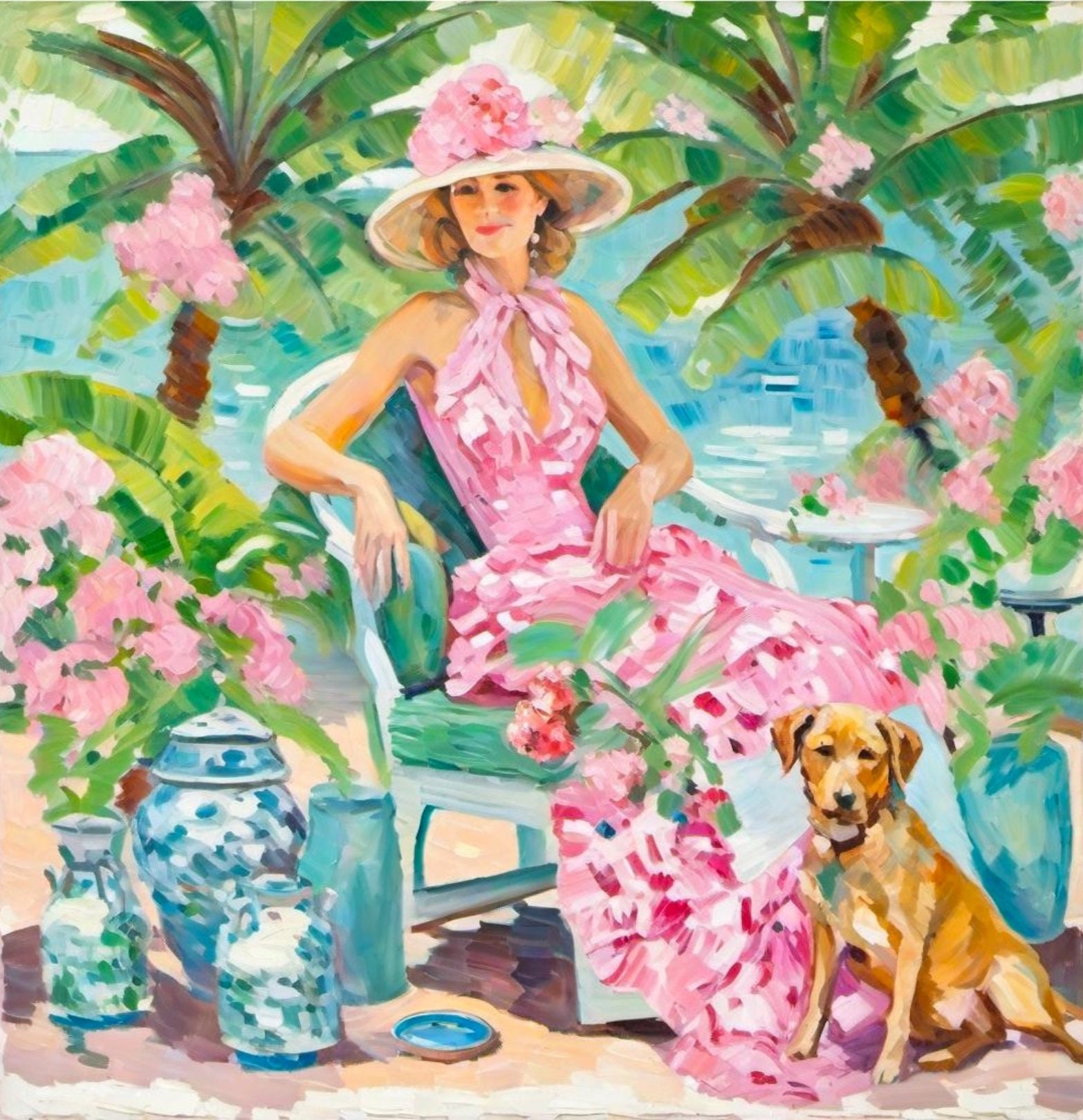 Grandmillennial art, Palm Beach afternoon, preppy painting