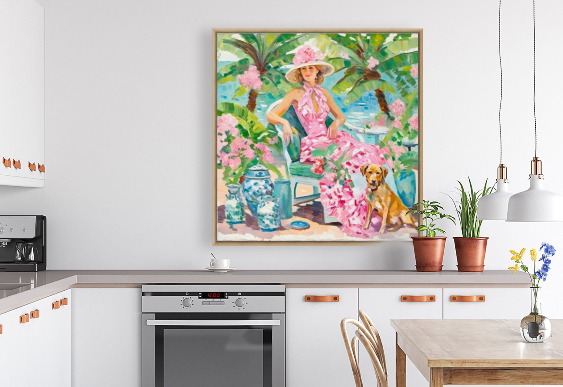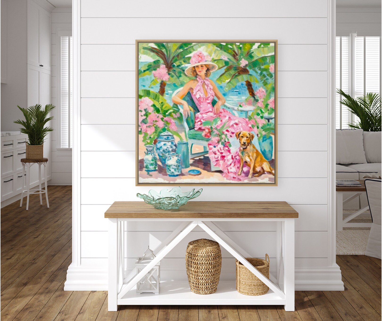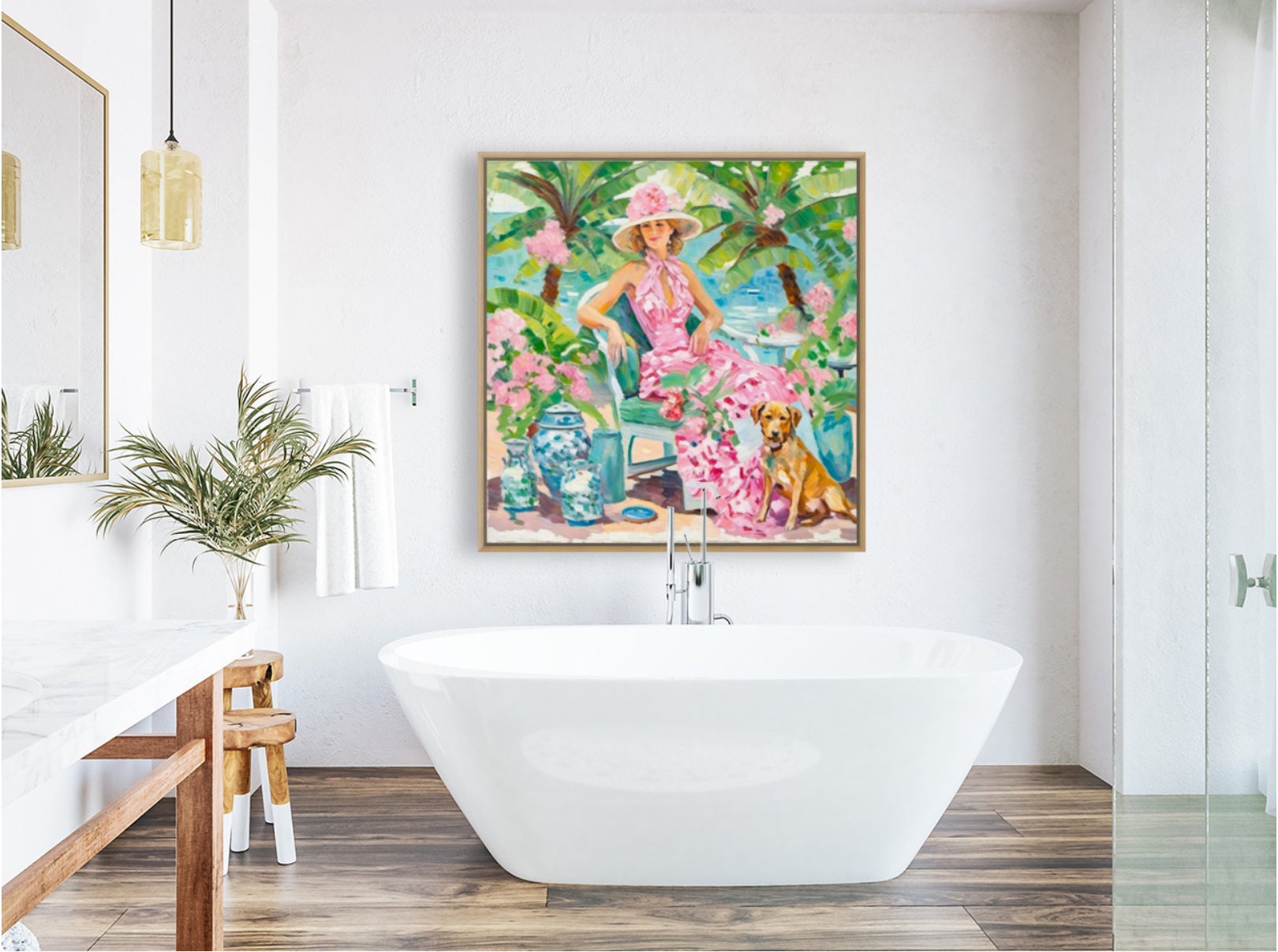 Grandmillennial art, Palm Beach afternoon, preppy painting