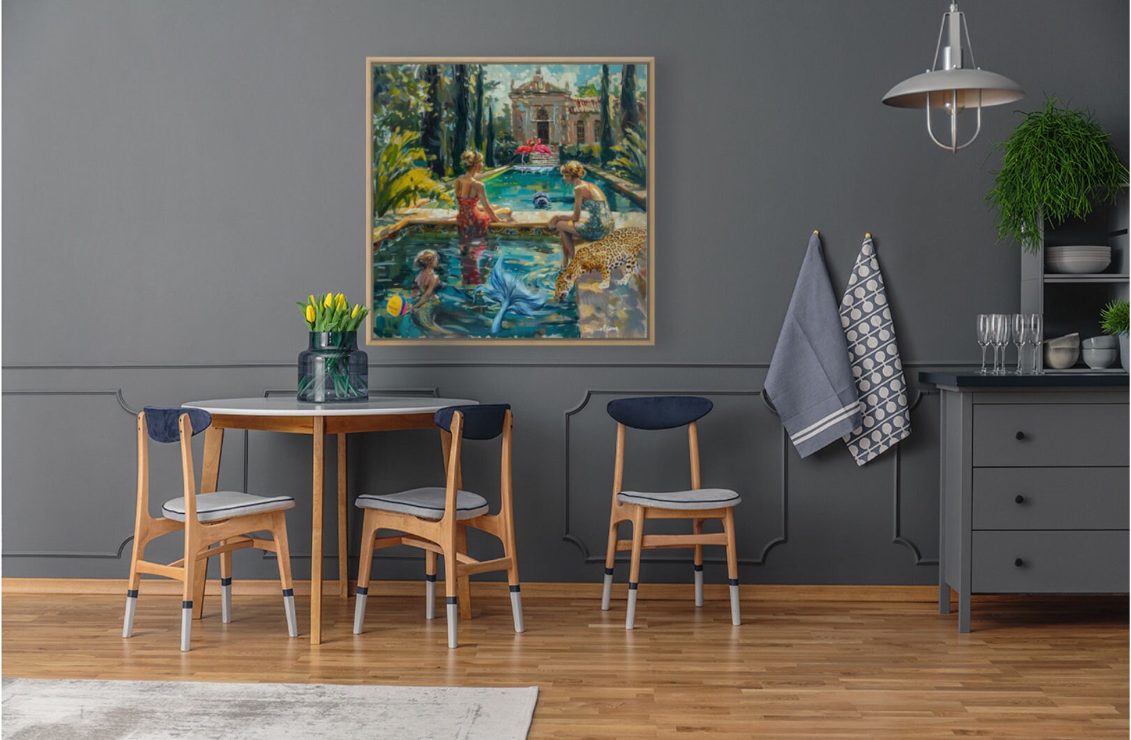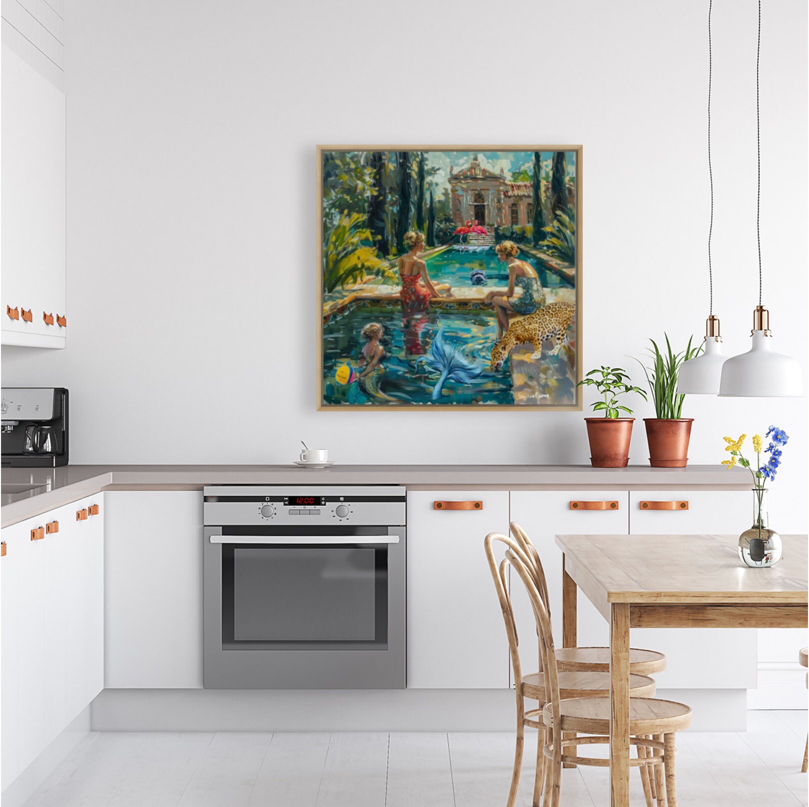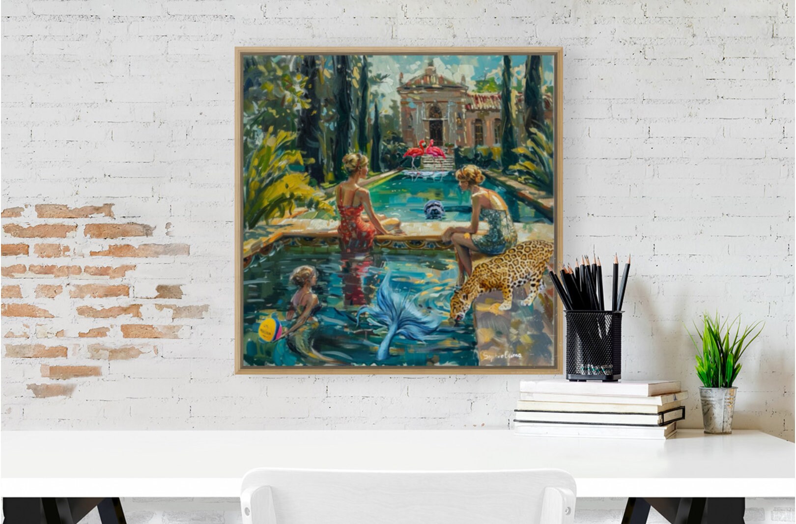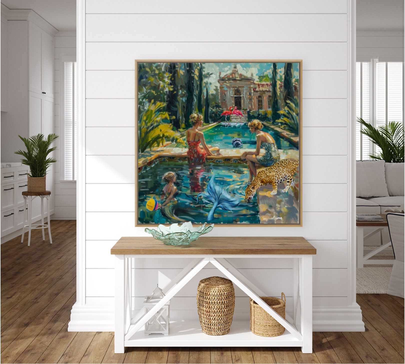 What an amazing artist! Gorgeous intense colors. Positively love my purchase. Looking for other wall space so I can purchase another piece😍 Edit: I purchased this piece for my powder bath “experience”! Fabulous local frame shop had the bamboo look framing. Goes perfectly with art. Now off to add a faux bird of paradise with a cheetah print container!🥰 Love Sophie’s art!