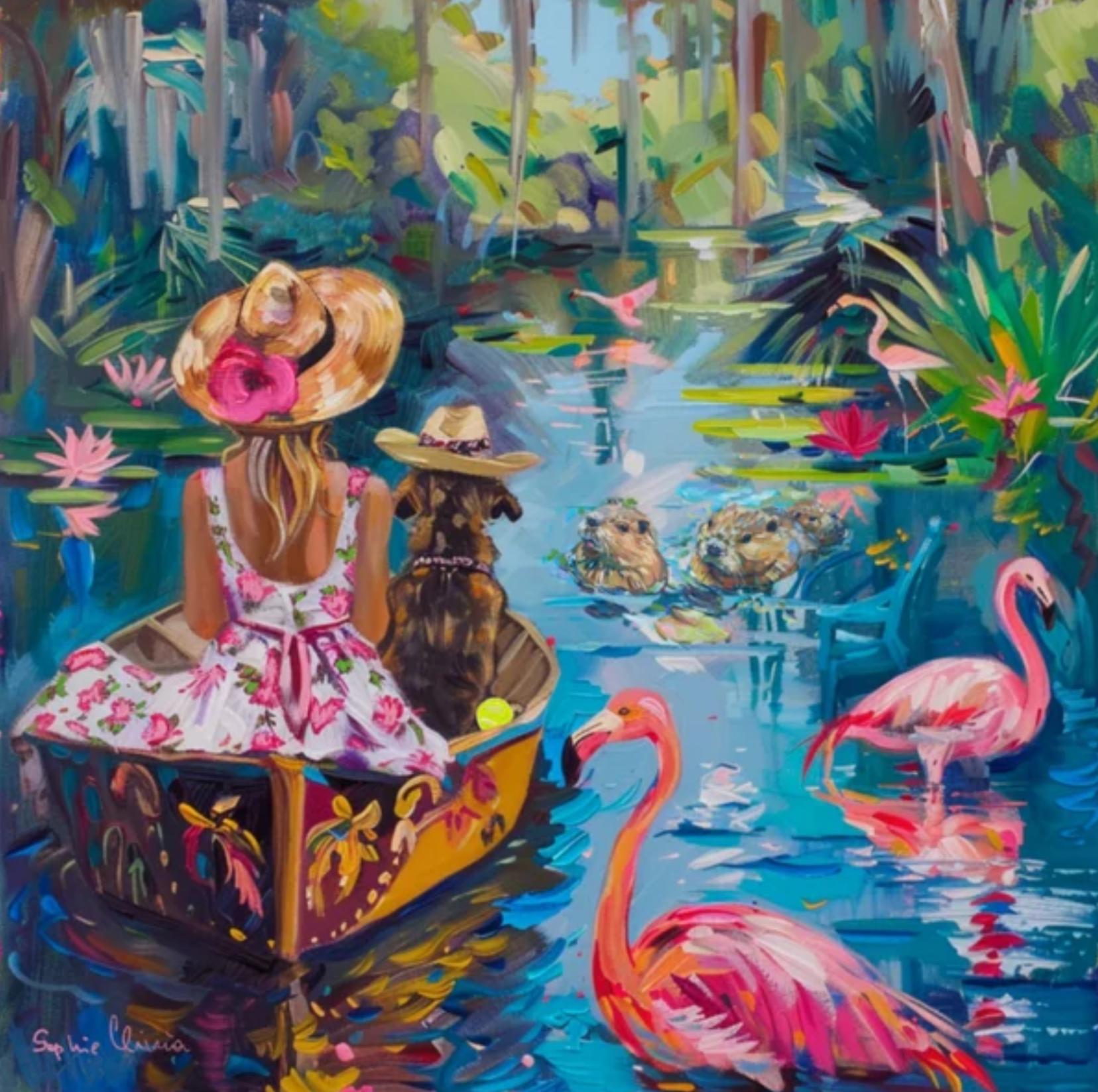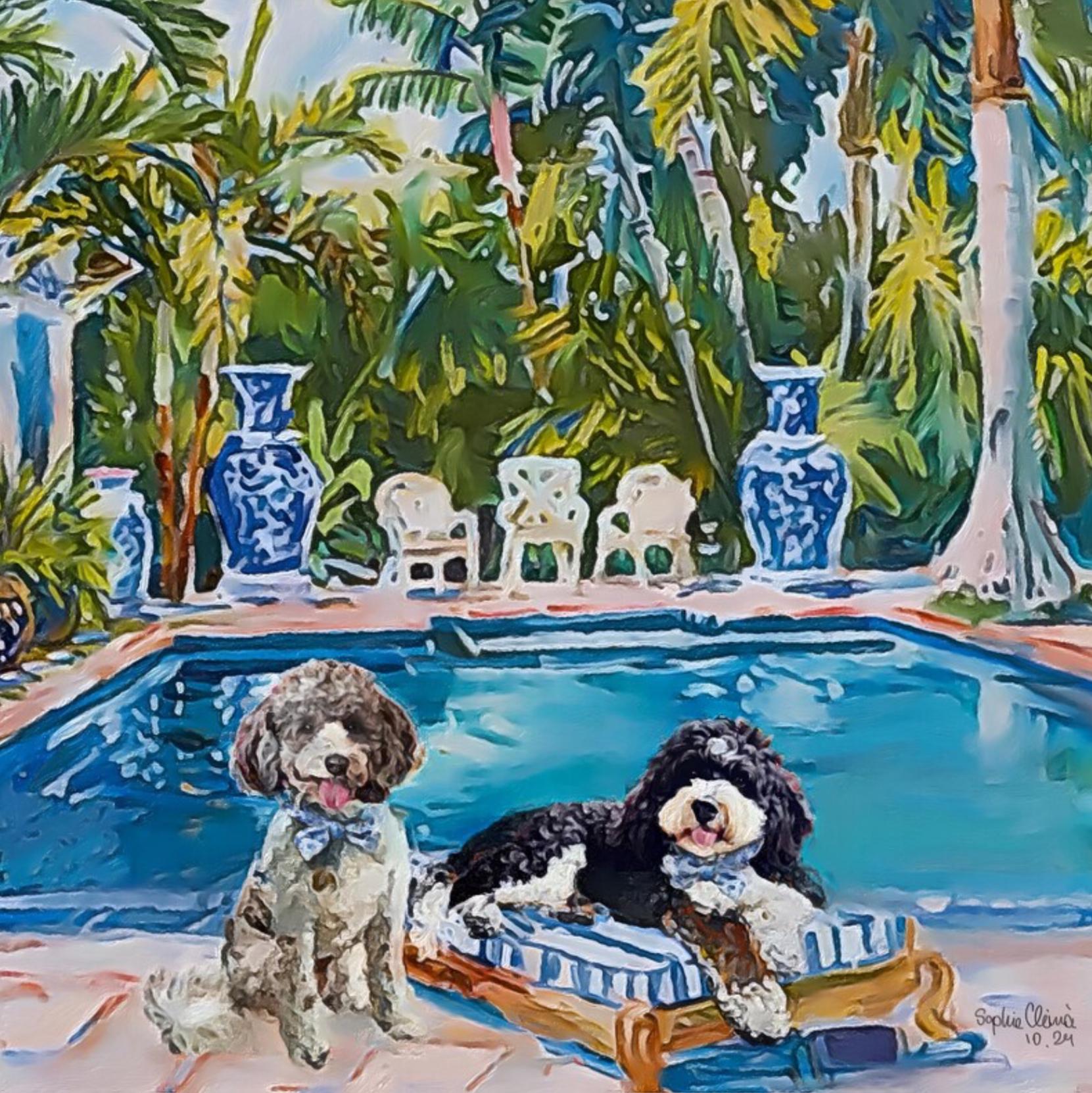 My daughter absolutely loves her painting!! Sophie spent her weekend creating & sending me multiple versions of this picture to personalize it for my daughter to include her English cream golden. She was a pleasure to work with and also shipped it framed for me! I will be back for more of her creative personalized art pieces!