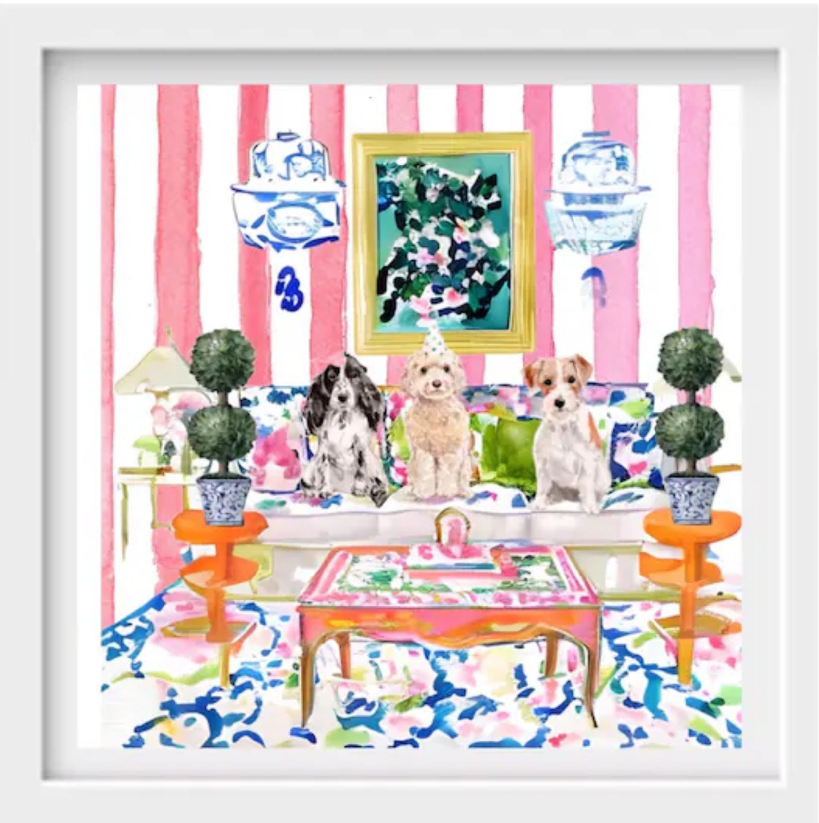 PLEASE NOTE SIZES ARE IN CM. Custom dog portrait printed on 300gsm Hahnemuhle paper.  Signed by the artist. These watercolor chinoiserie prints will enhance your Grandmillennial Style, Chinoiserie Chic Style, Grandmillennial Decor, or Preppy Chic Style Decor. Will look great on Office walls as well.