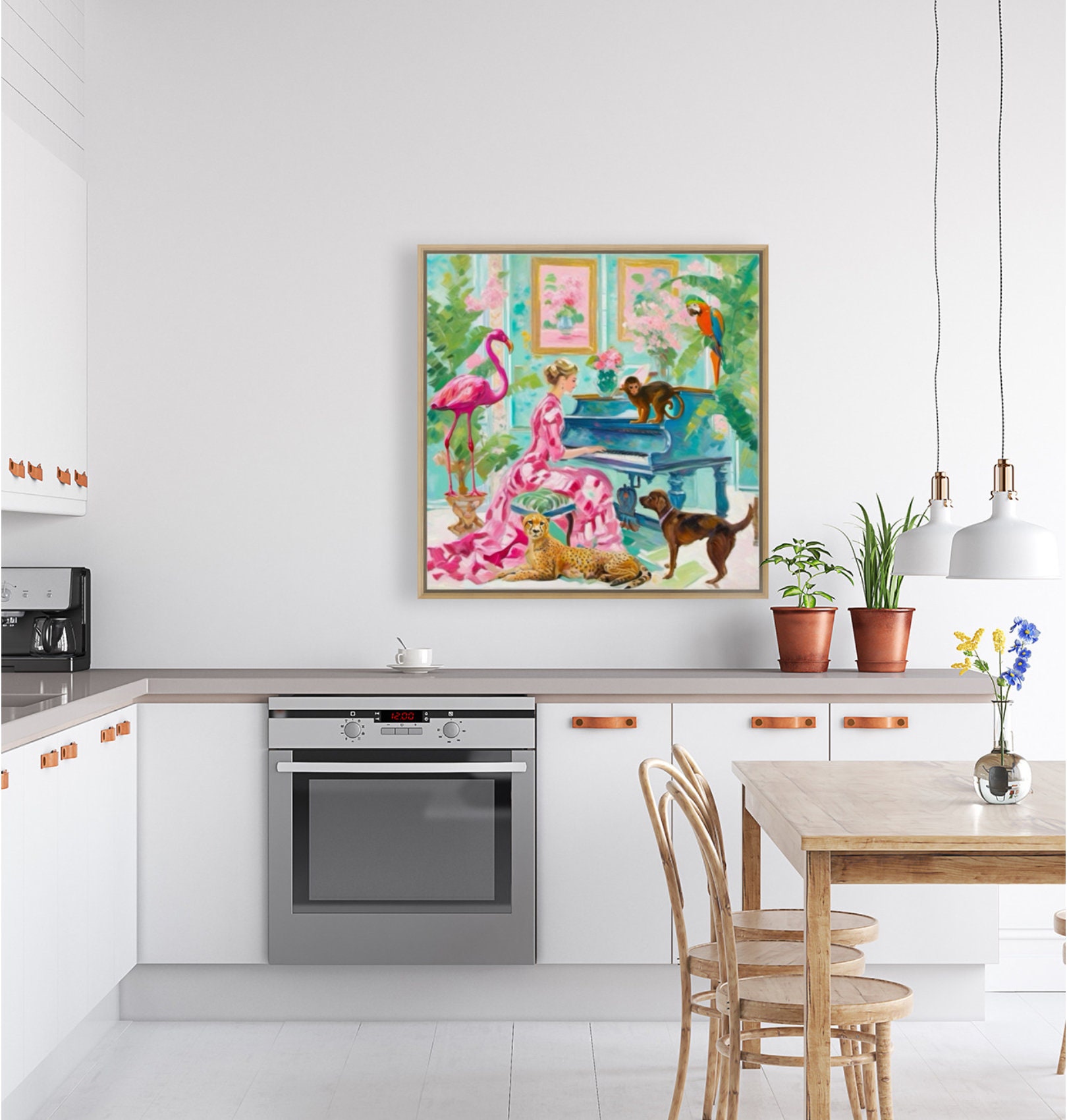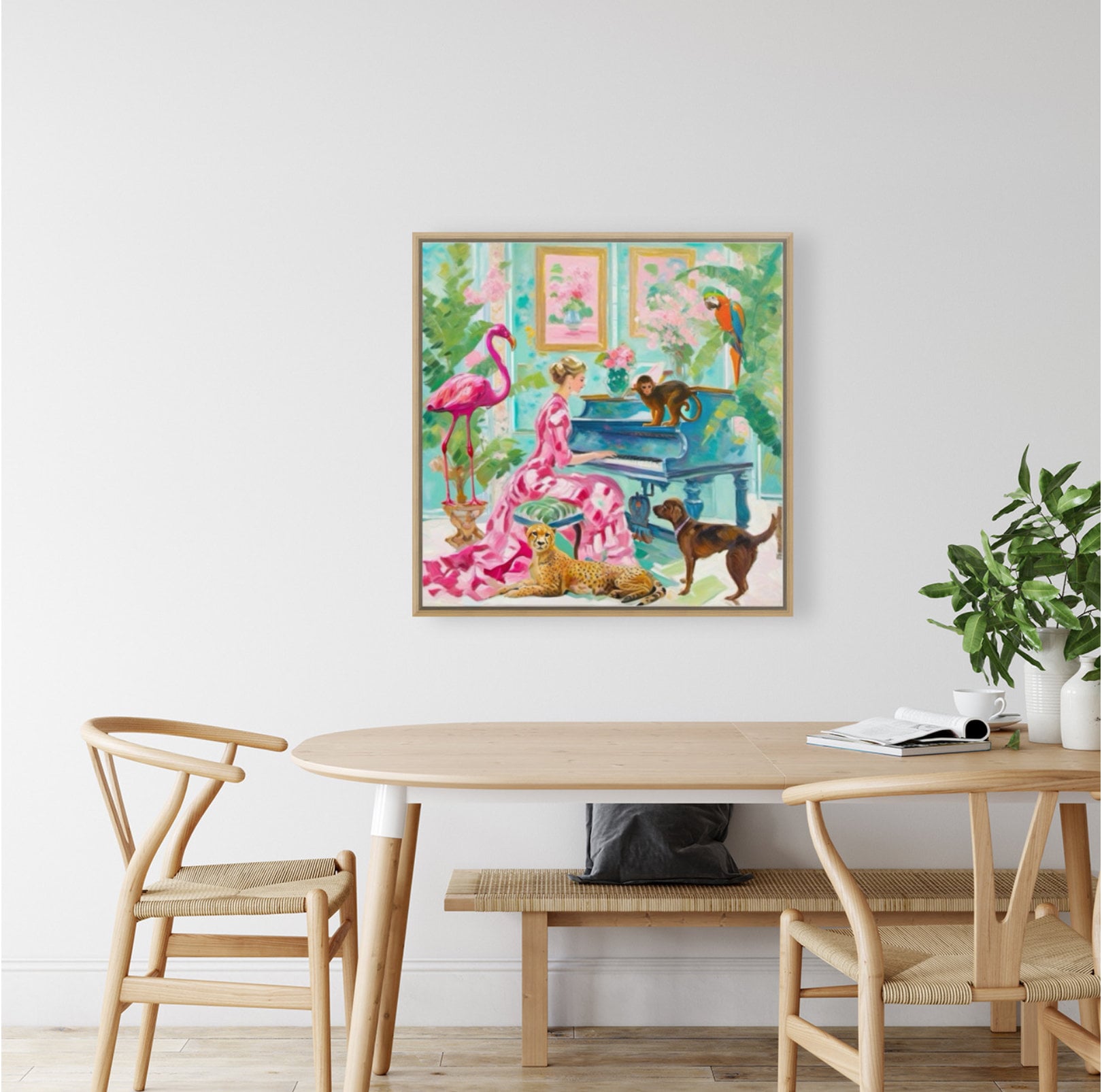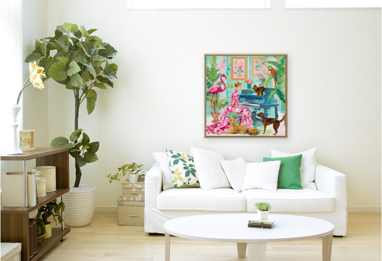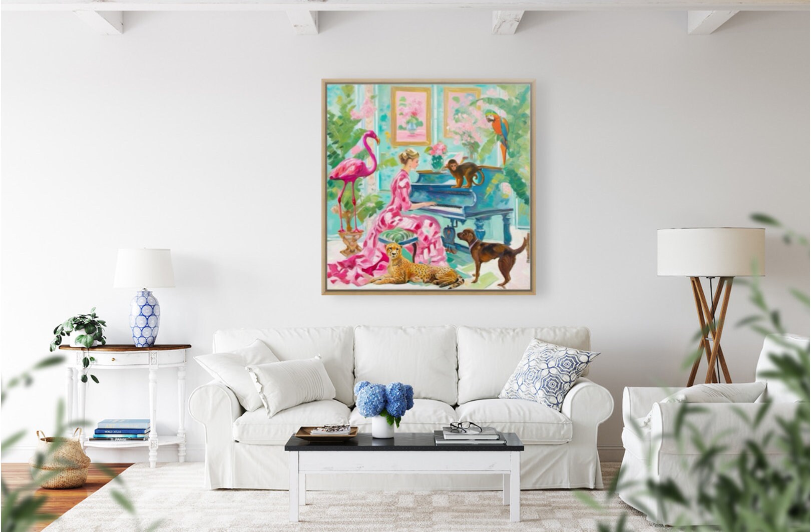 Grandmillennial Art Print: Whimsical Animals, Woman at Piano