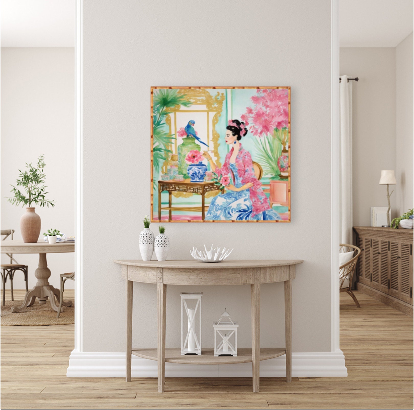 Grandmillennial art,Flower arrangement, whimsical chinoiserie giclee print