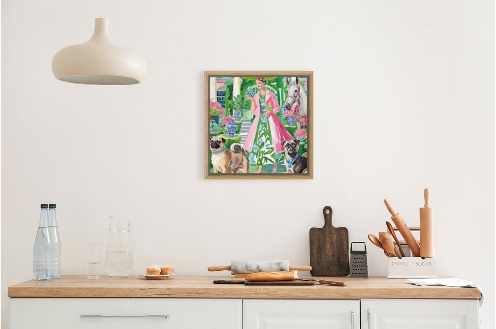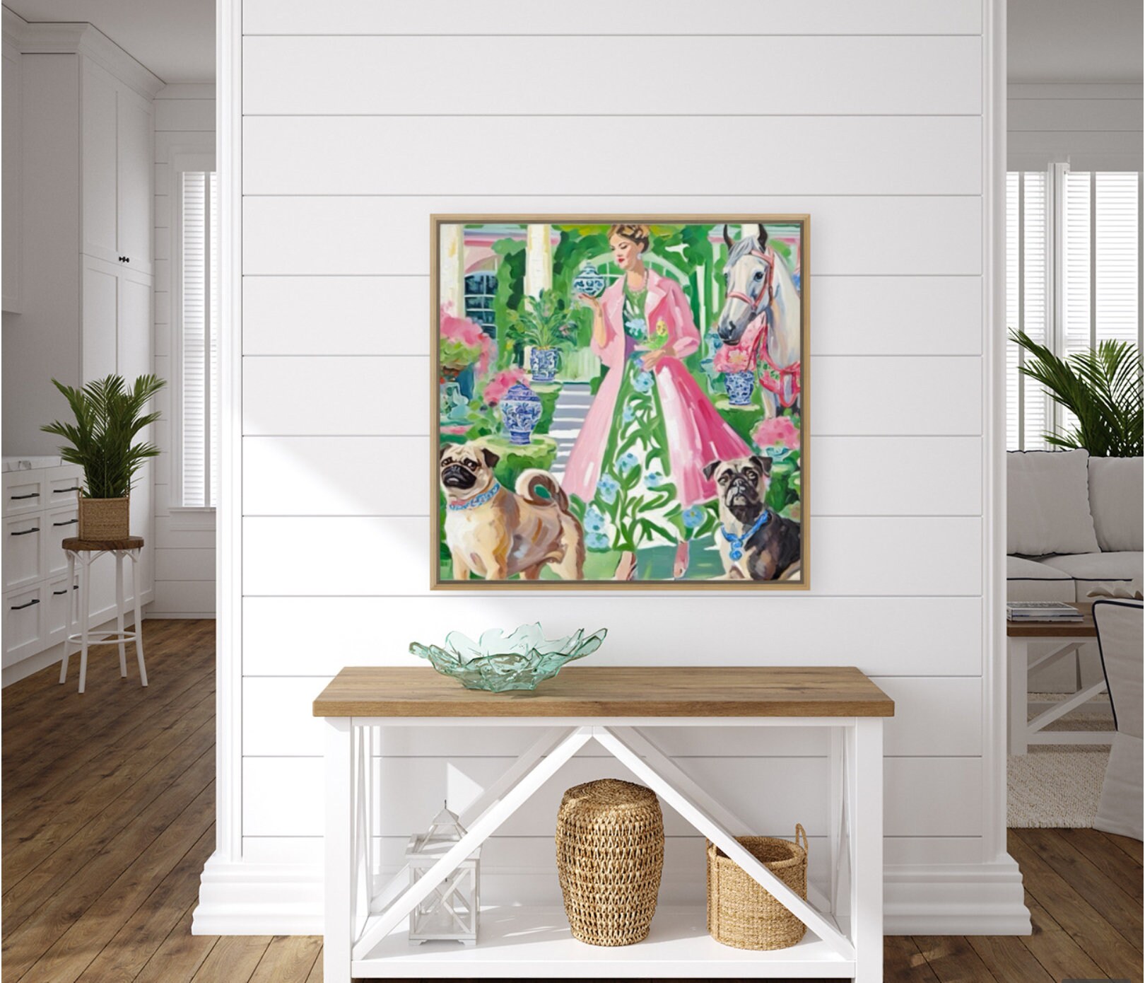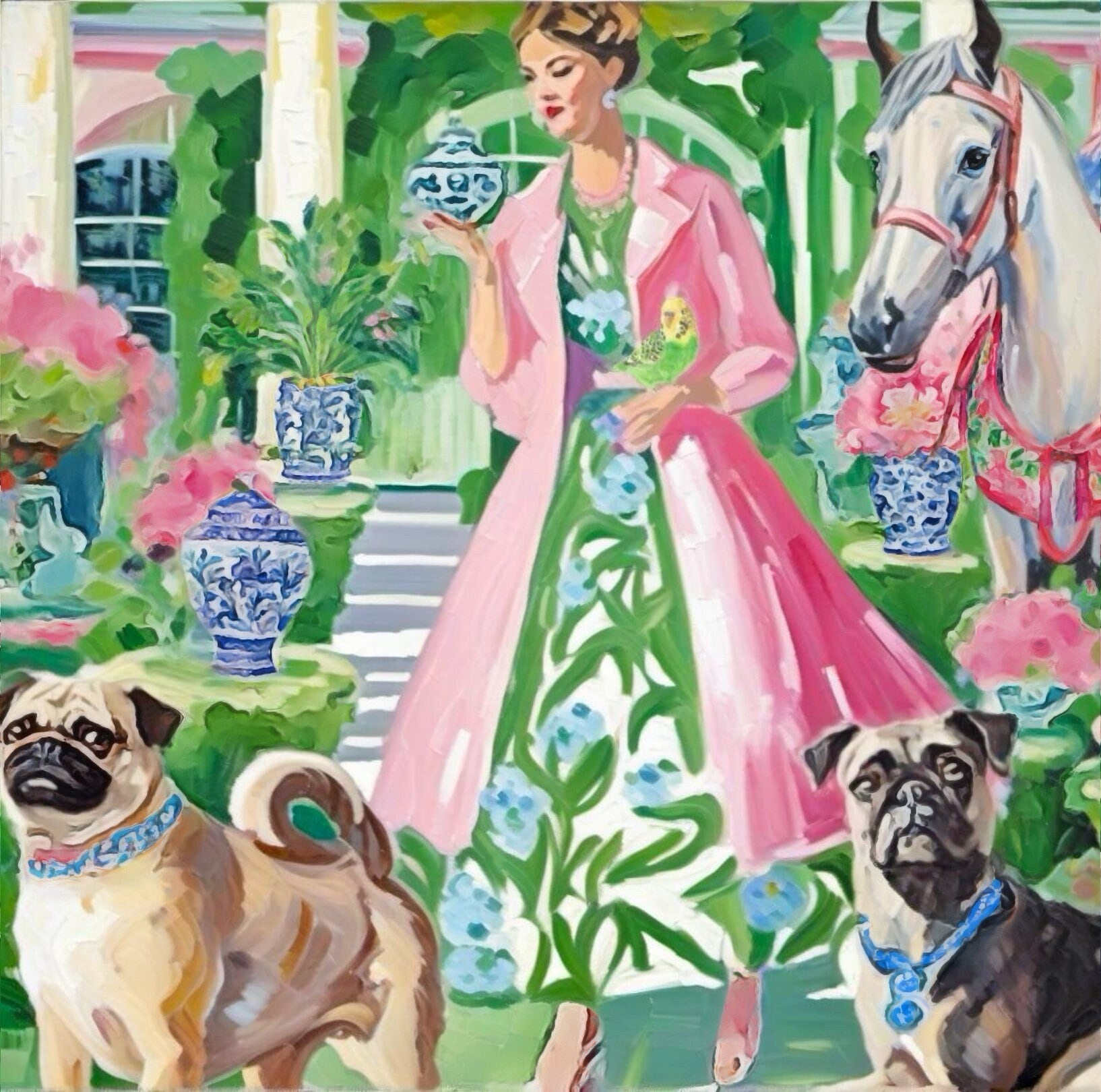 Grandmillennial art, Just another blue and white pot, whimsical watercolor