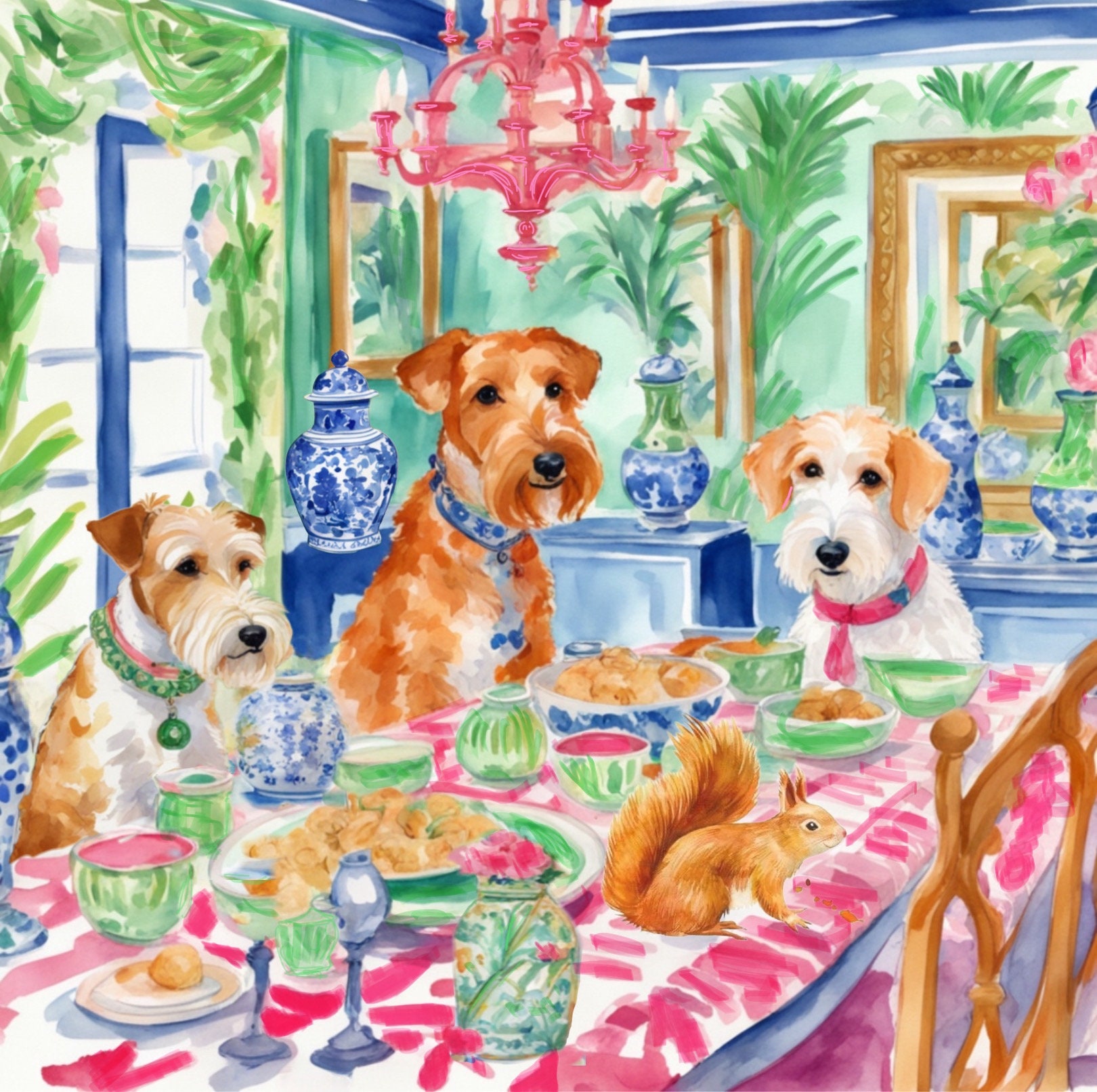 Grandmillennial art, Making things up with the squirrel, whimsical giclee print
