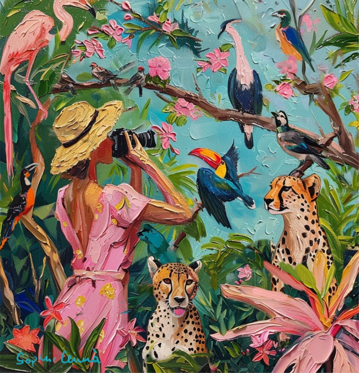 Sophie's art is the modern interpretation of Chinese artistic traditions featuring pagodas, landscapes, blue and white porcelain, ginger jars, pagodas, cheetahs and monkeys. Sophie developed her own recognizable style with bright colors and whimsical details.