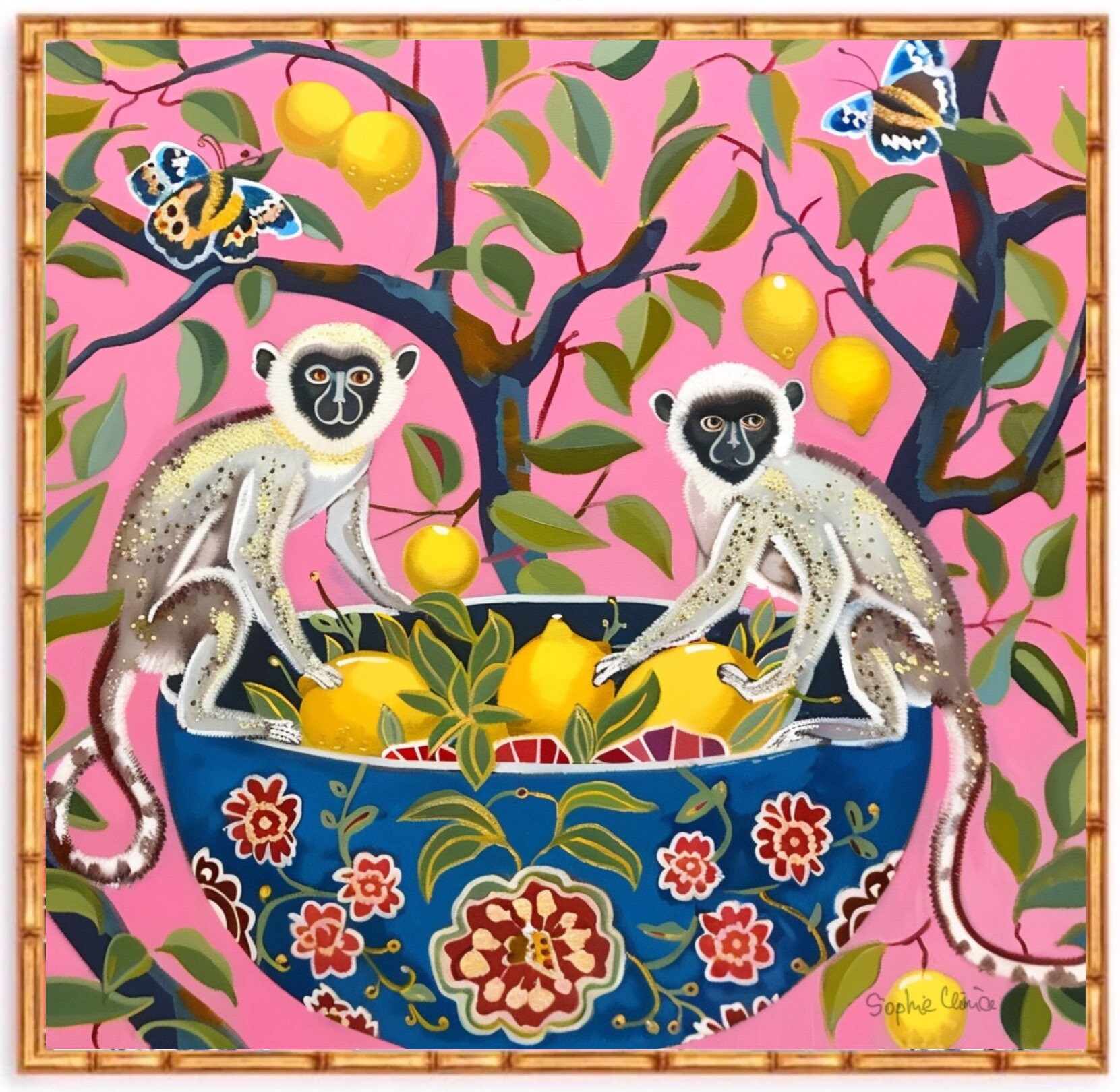 Chinoiserie Monkey Lemon Art Print: Grandmillennial Decor