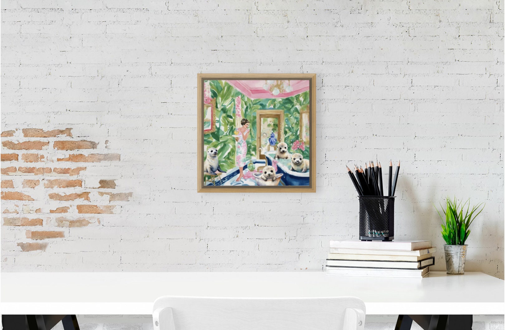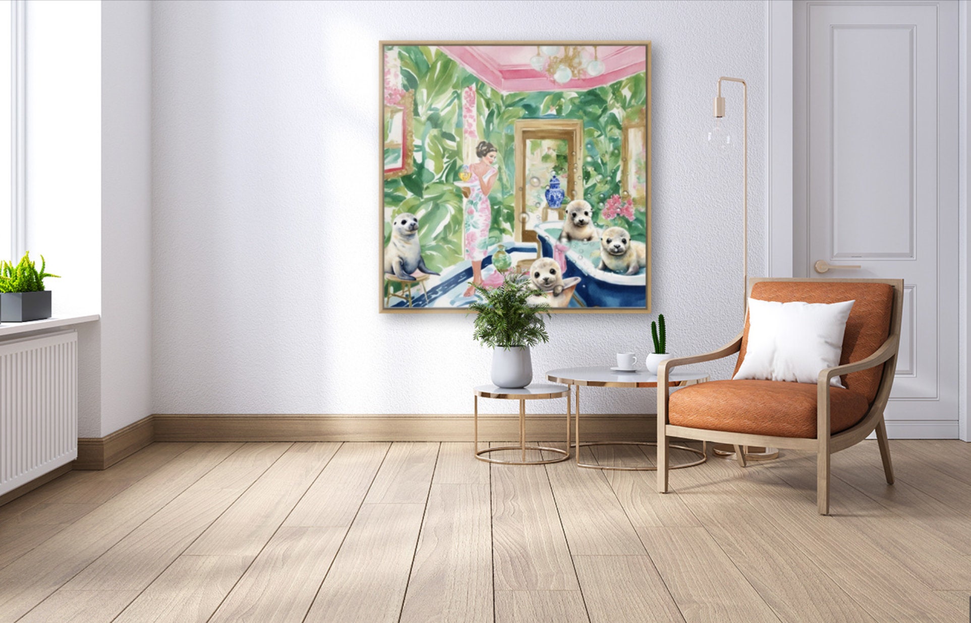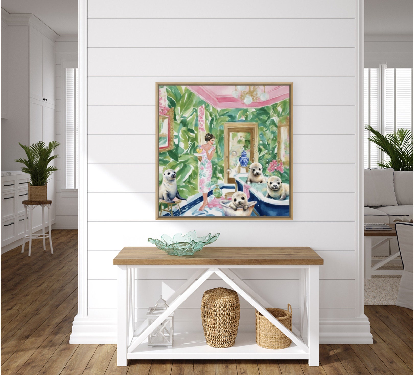 Grandmillennial art,Bubble bath for baby seals, Palm Beach art