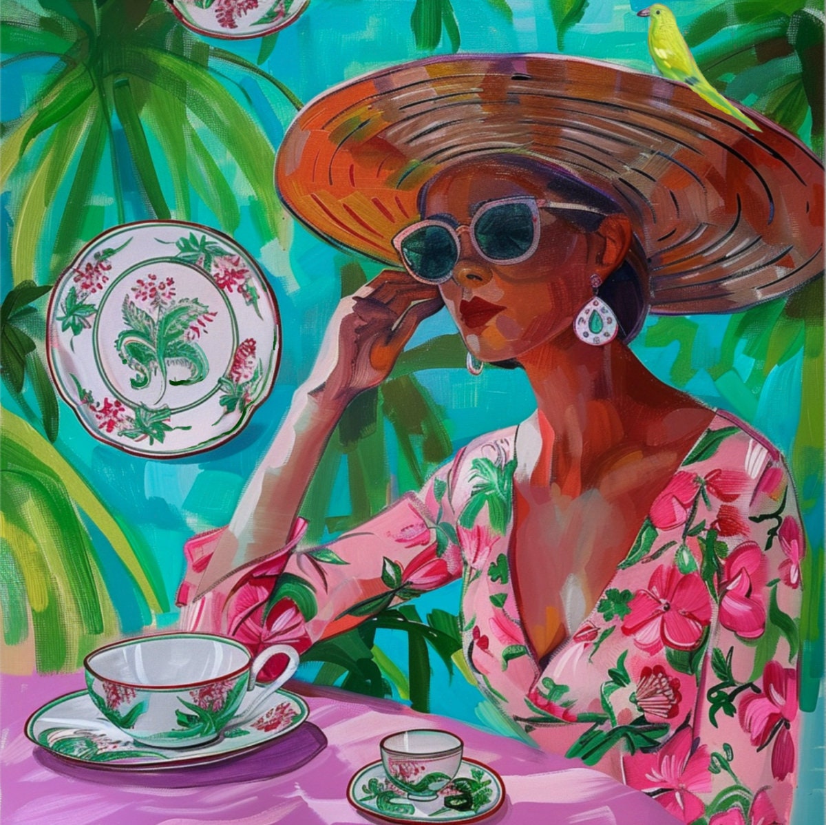 Grandmillennial art, A girl in a straw hat, whimsical fine art