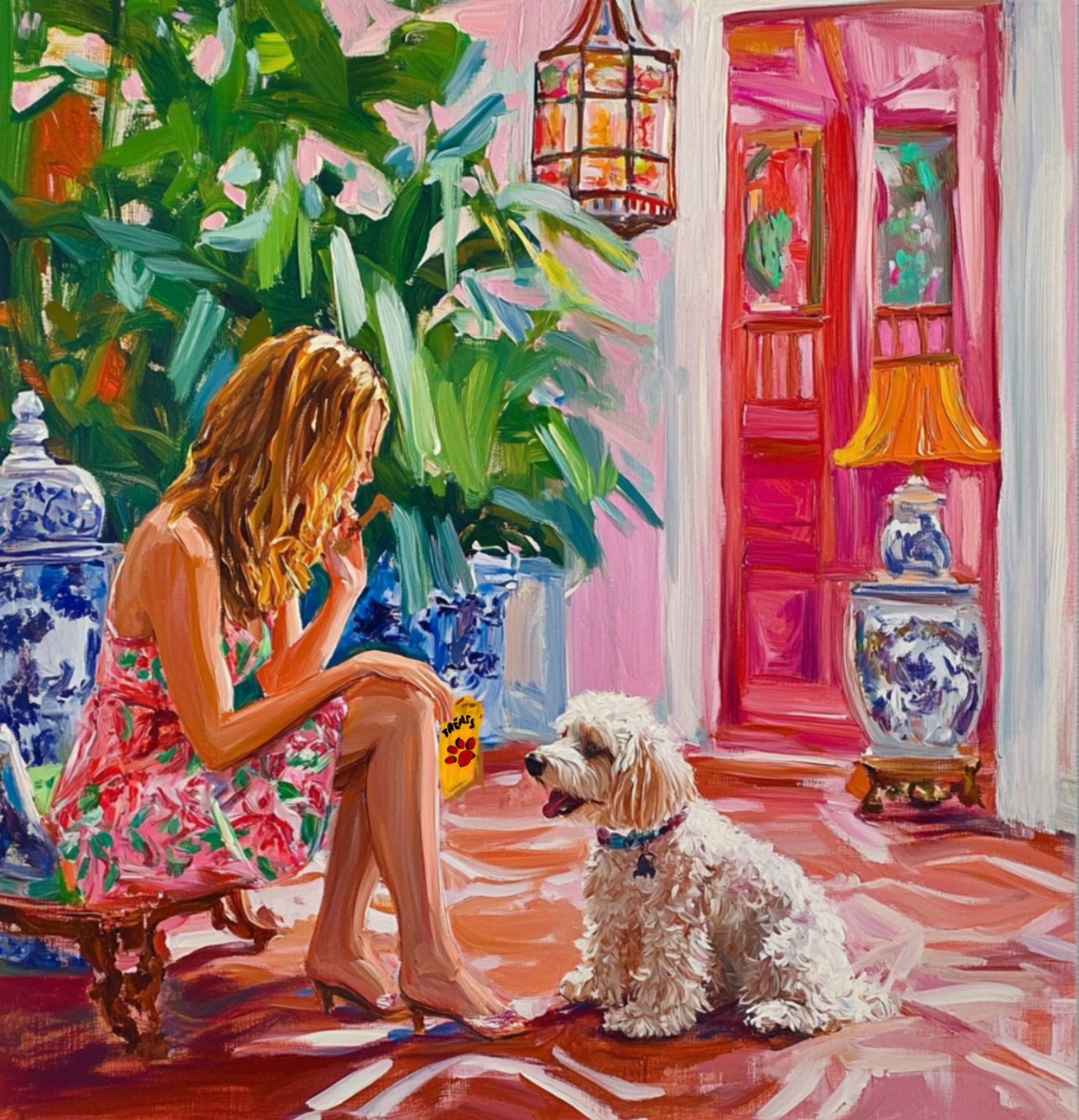 Grandmillennial art, A Treat Keeper, whimsical fine art