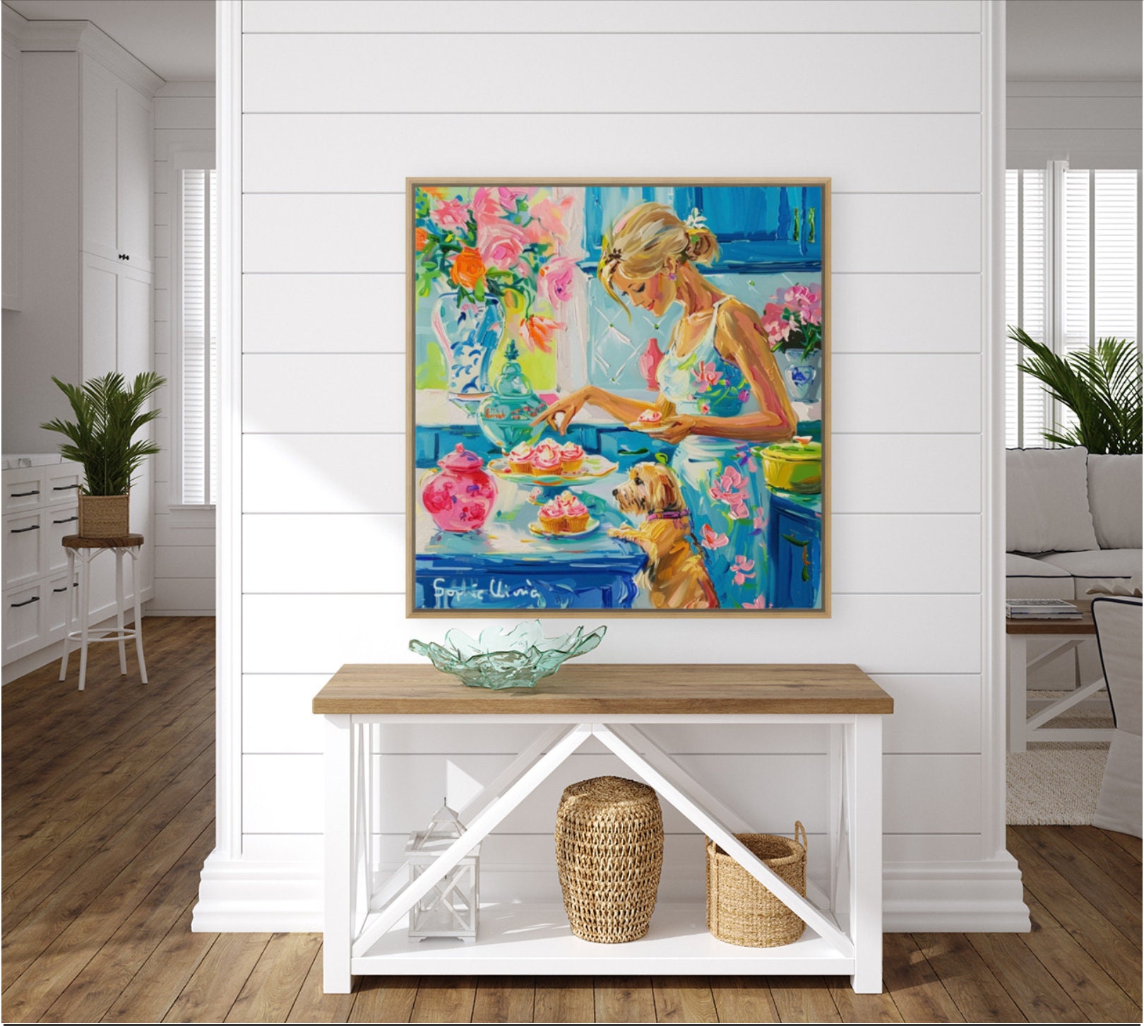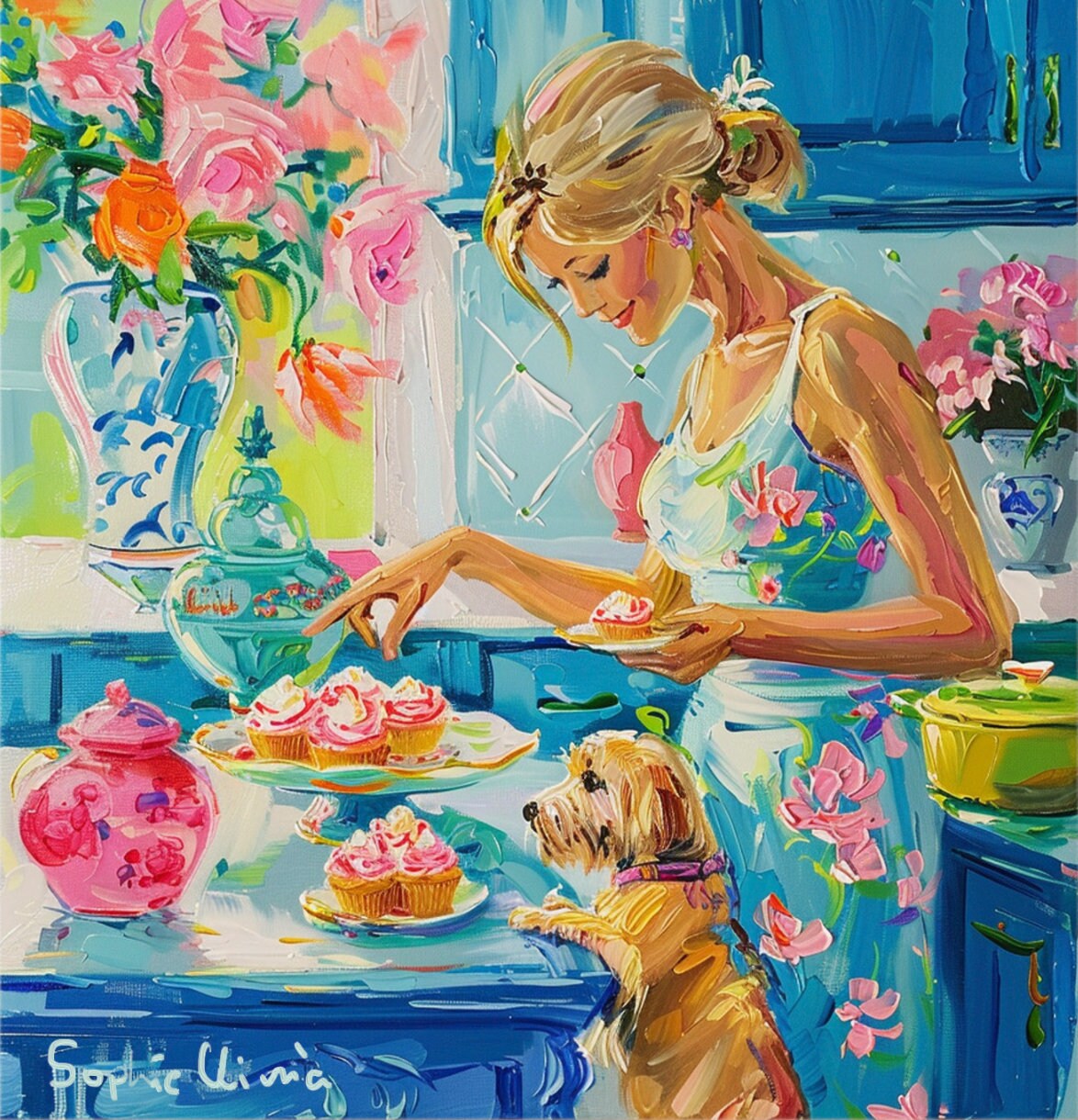 Sophie's art is the modern interpretation of Chinese artistic traditions featuring pagodas, landscapes, blue and white porcelain, ginger jars, pagodas, cheetahs and monkeys. Sophie developed her own recognizable style with bright colors and whimsical details.