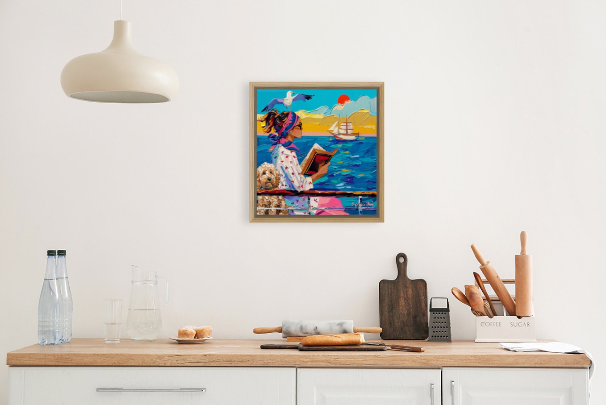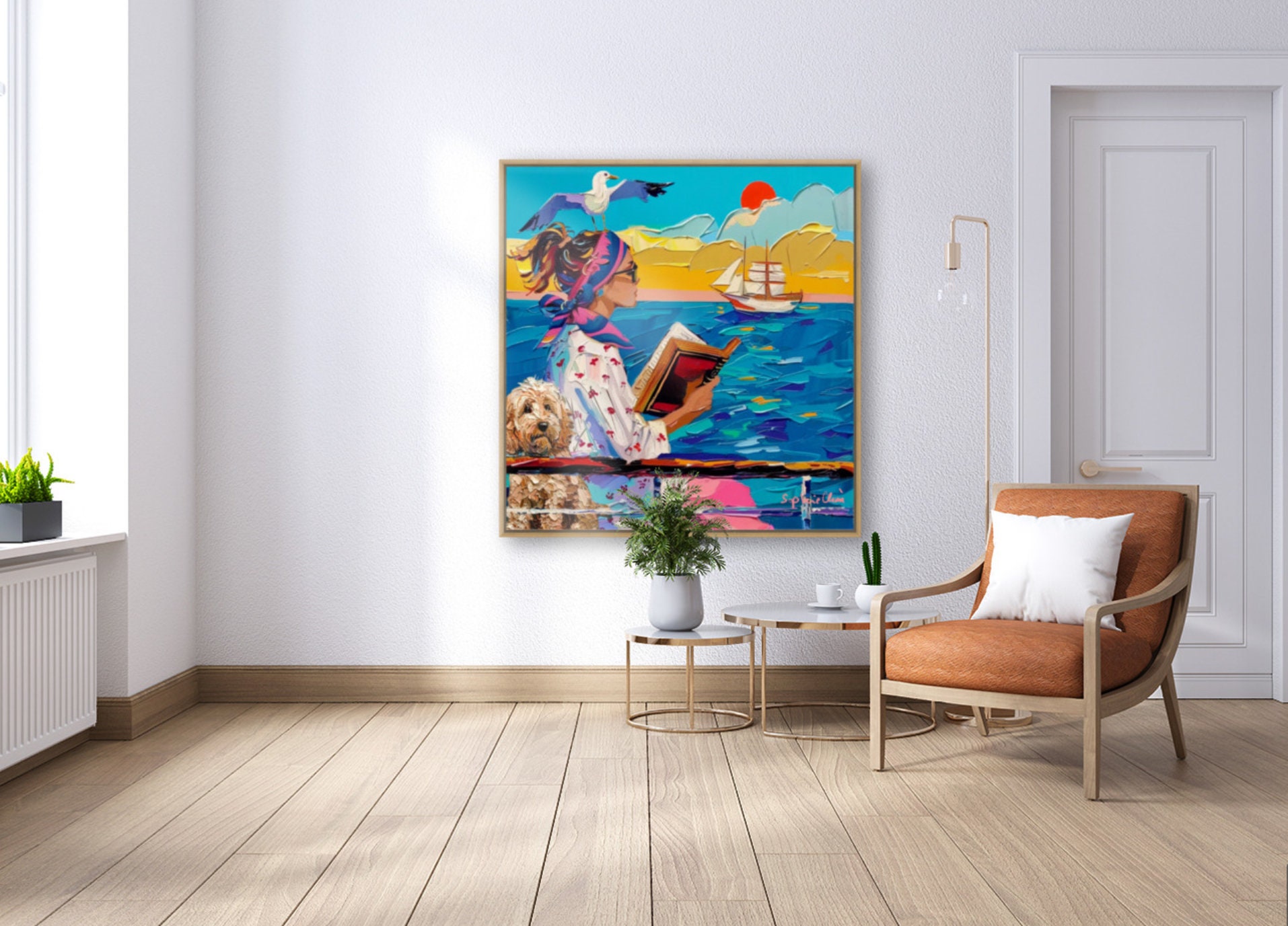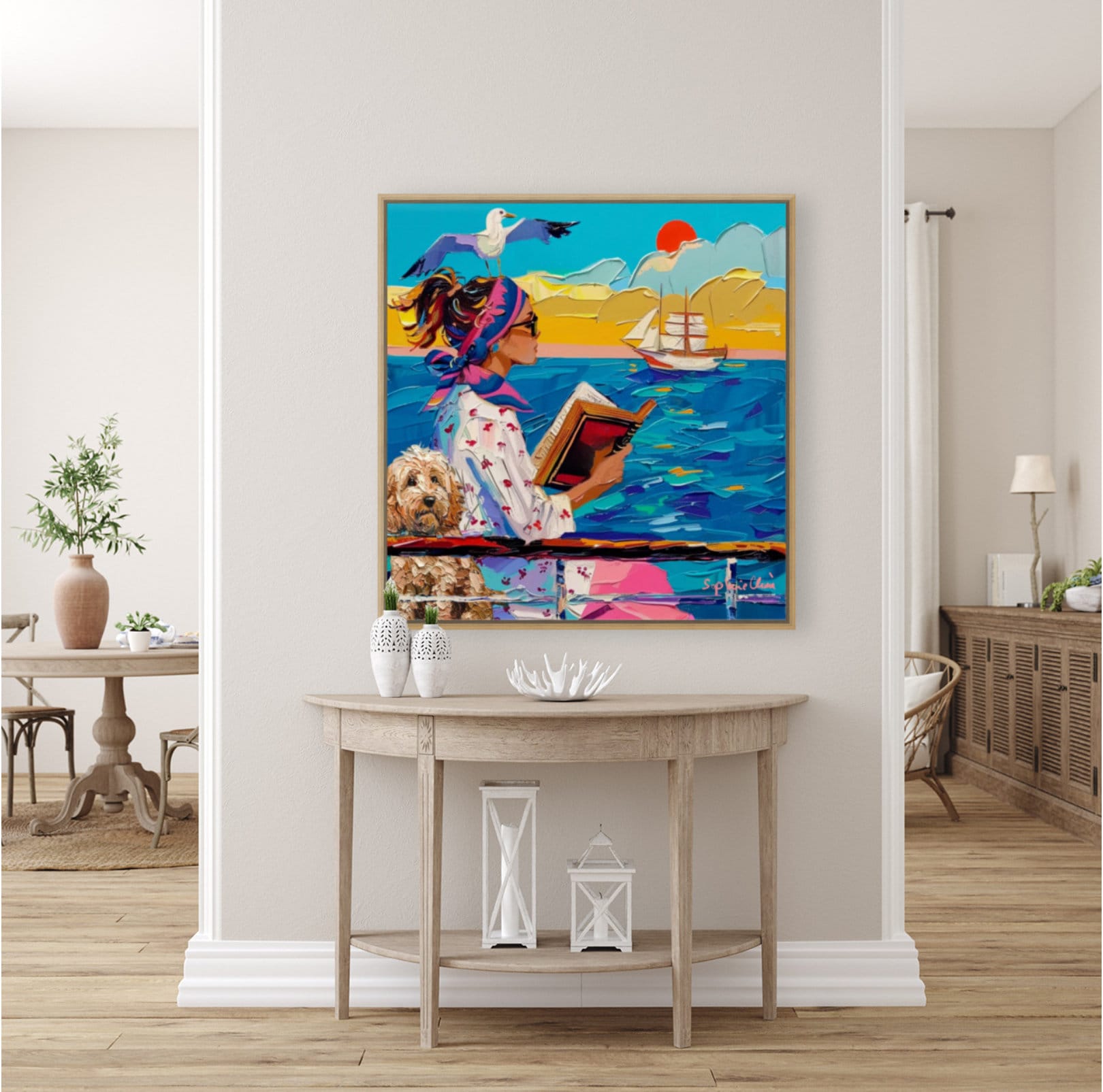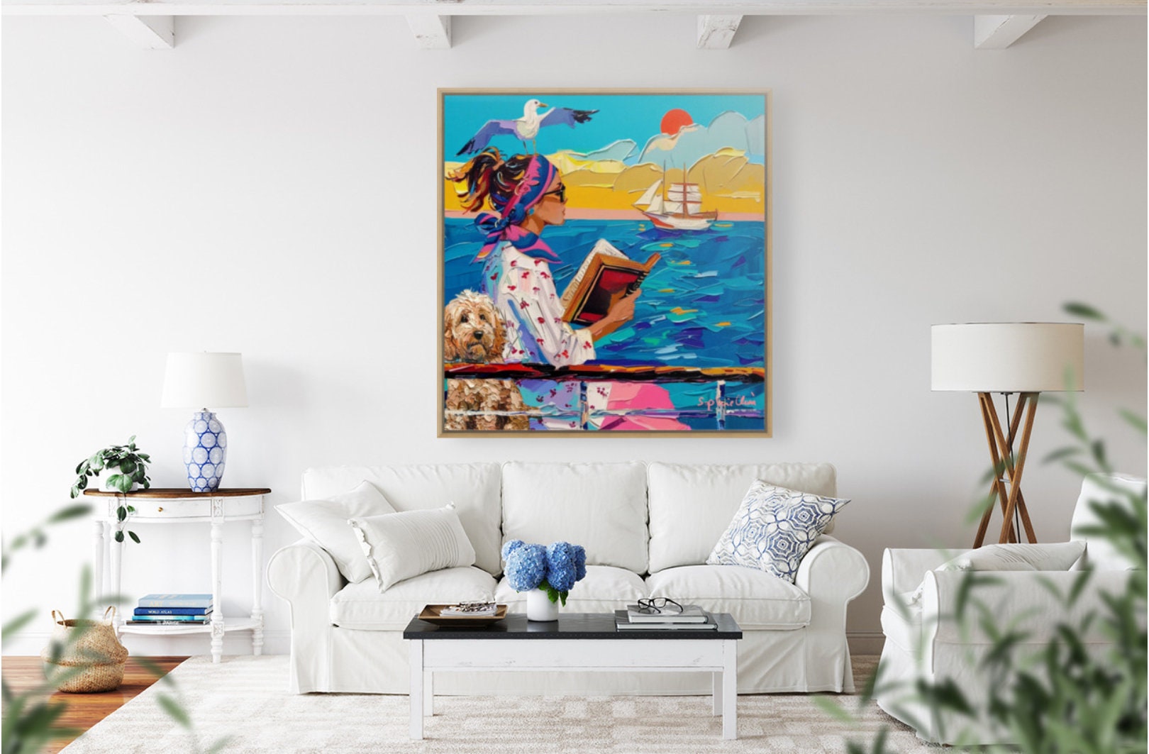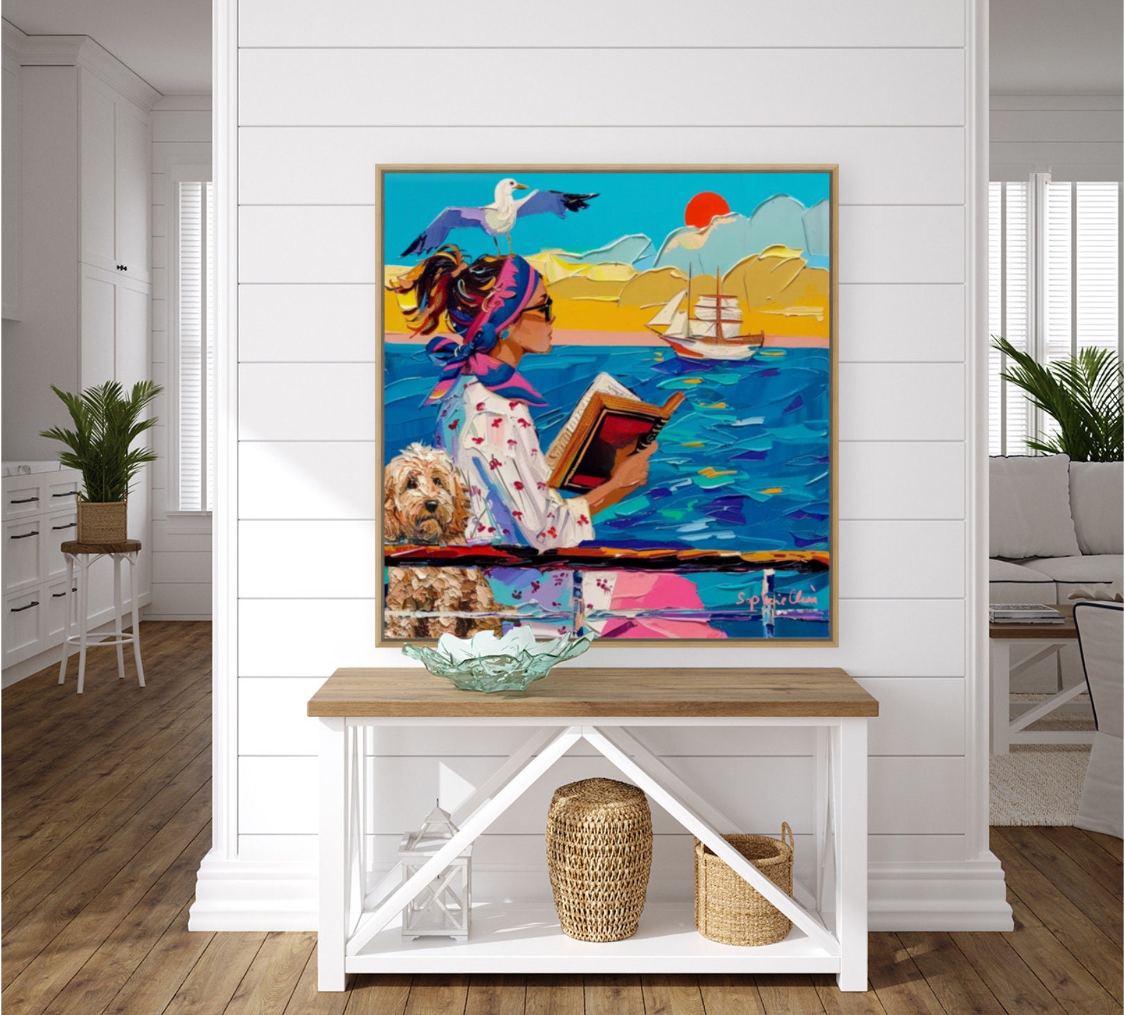 Coastal Dog Art Print: Whimsical Seaside Painting (Unframed)