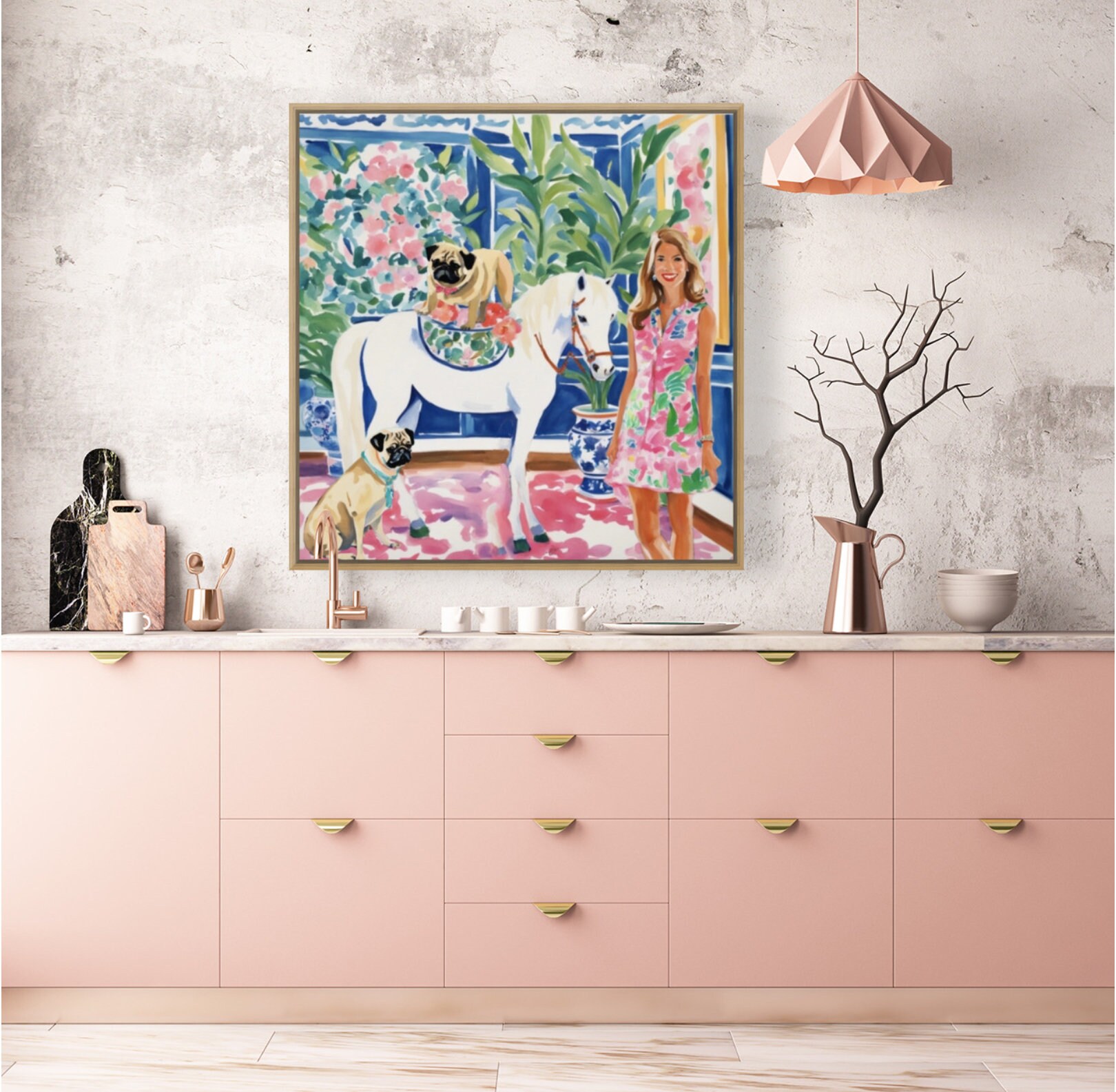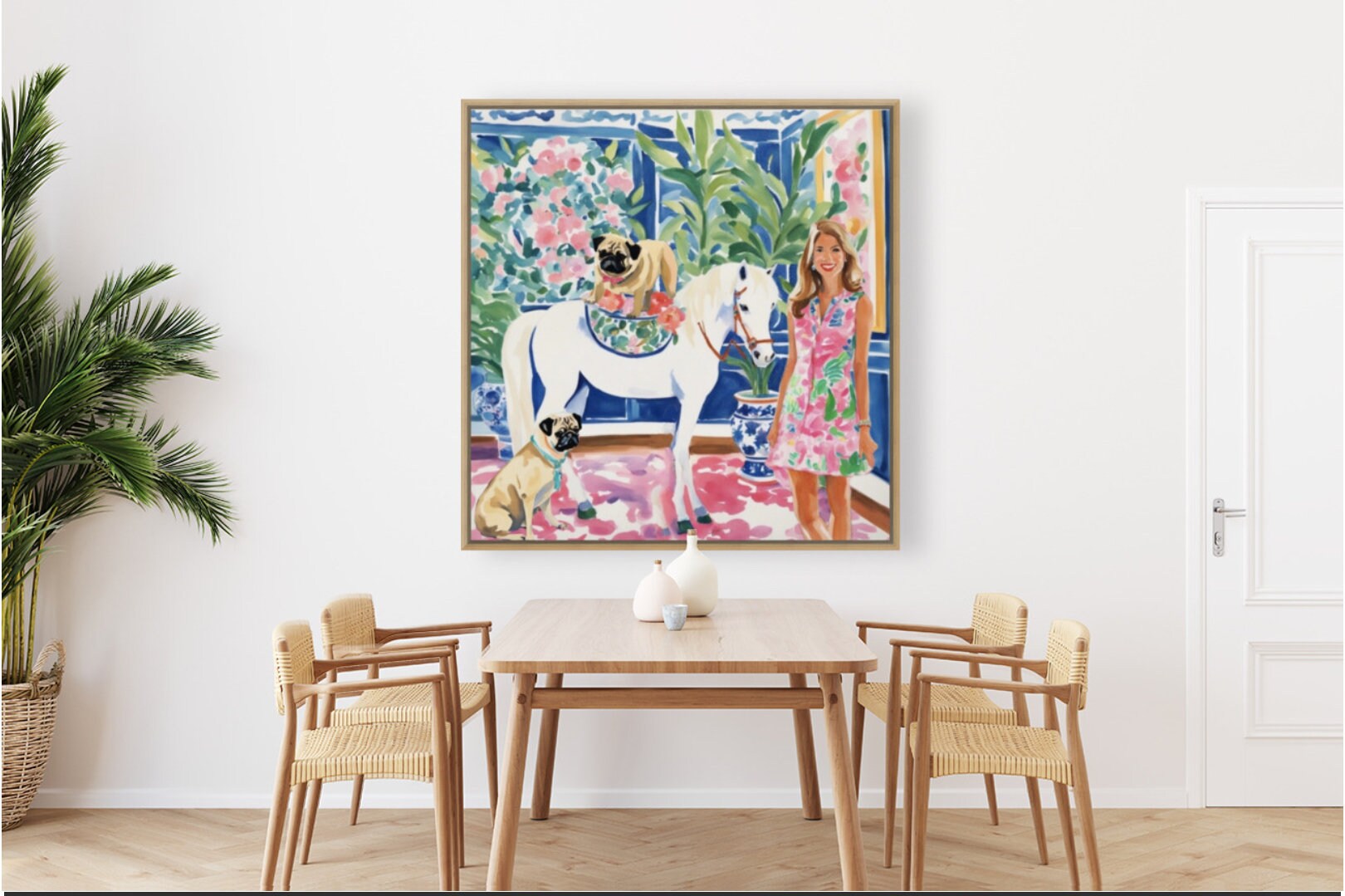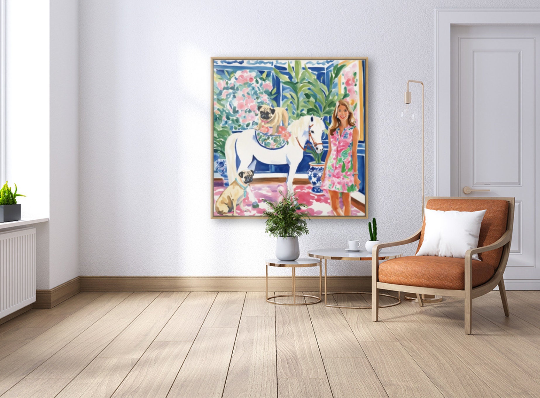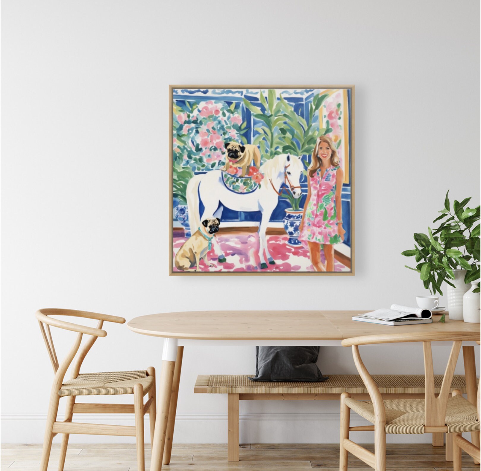 Pony and Pug Painting: Whimsical Grandmillennial Art Print
