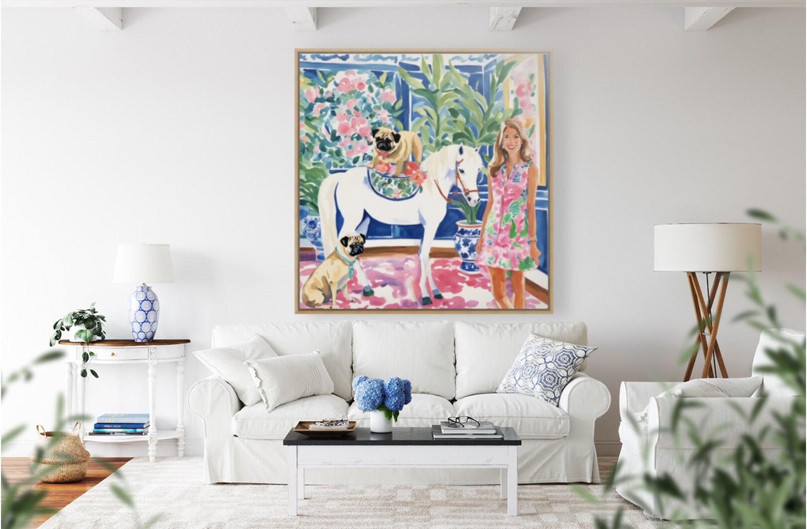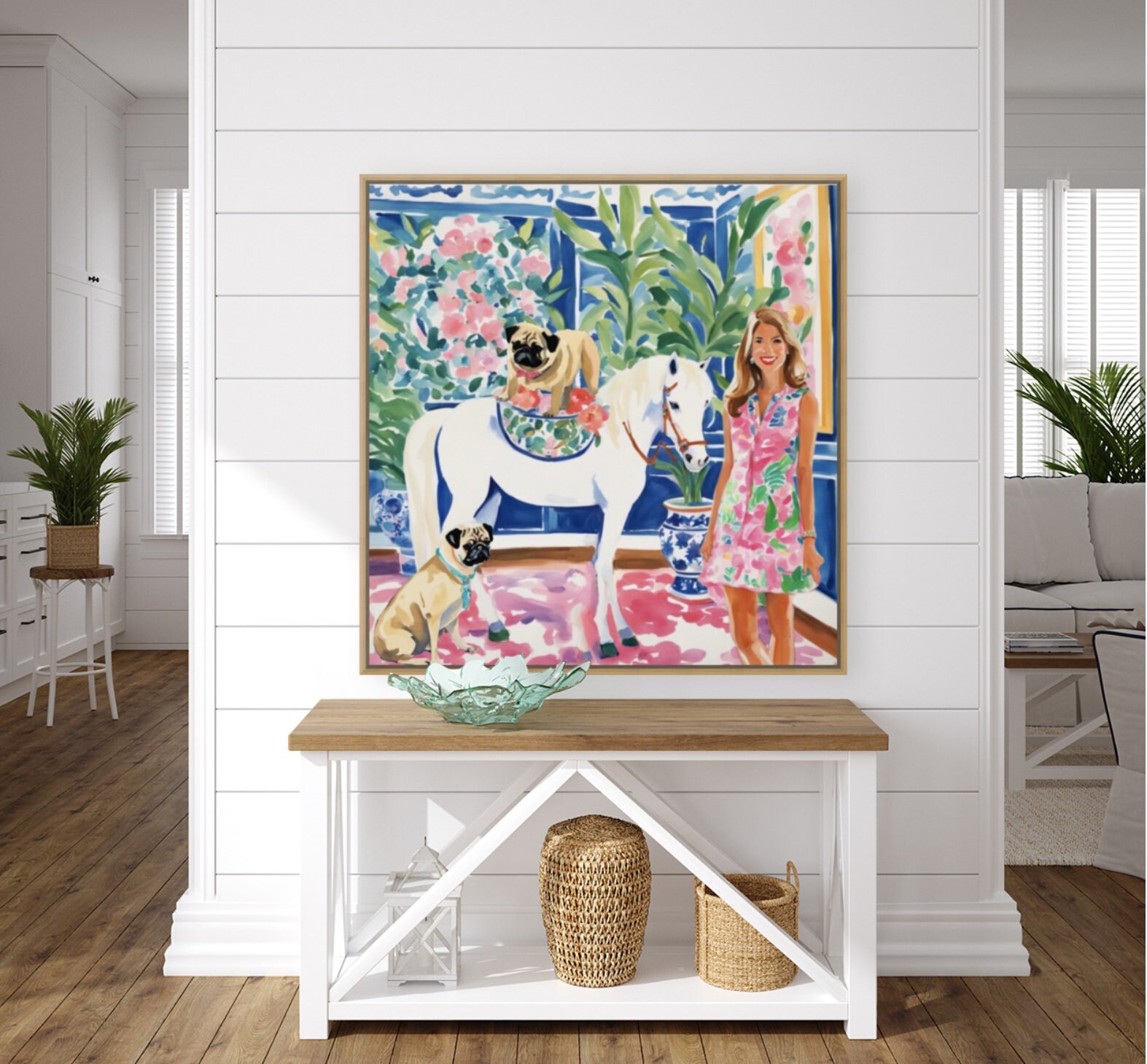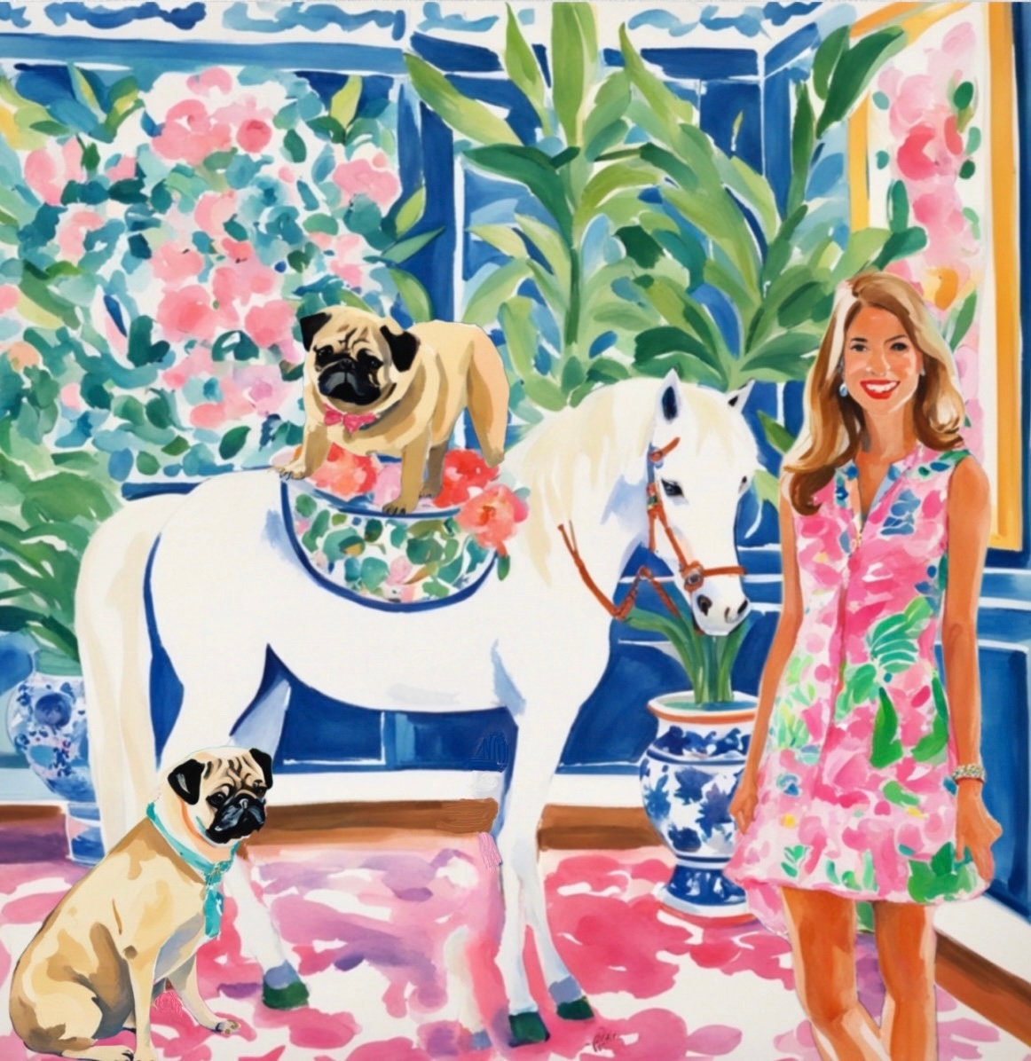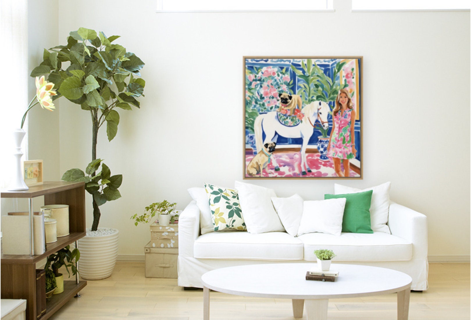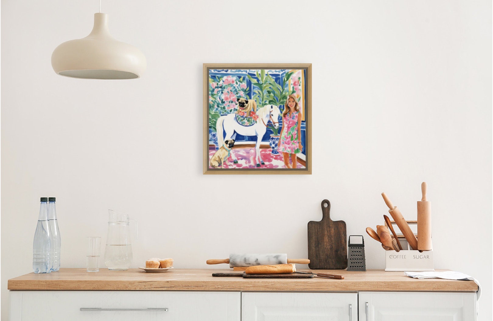 Pony and Pug Painting: Whimsical Grandmillennial Art Print