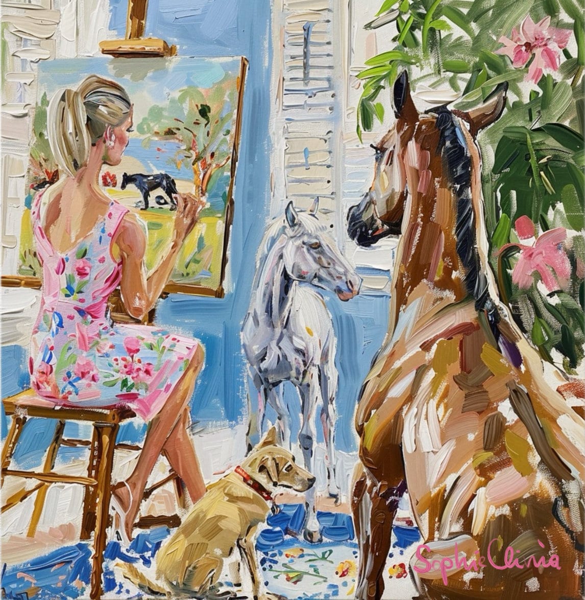 Sophie's art is the modern interpretation of Chinese artistic traditions featuring pagodas, landscapes, blue and white porcelain, ginger jars, pagodas, cheetahs and monkeys. Sophie developed her own recognizable style with bright colors and whimsical details.