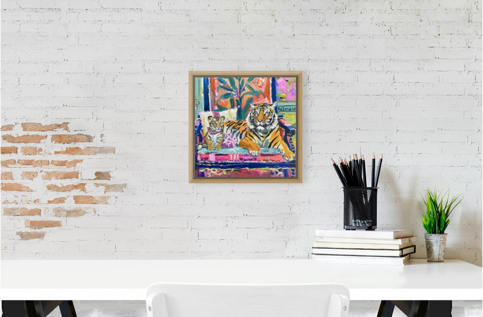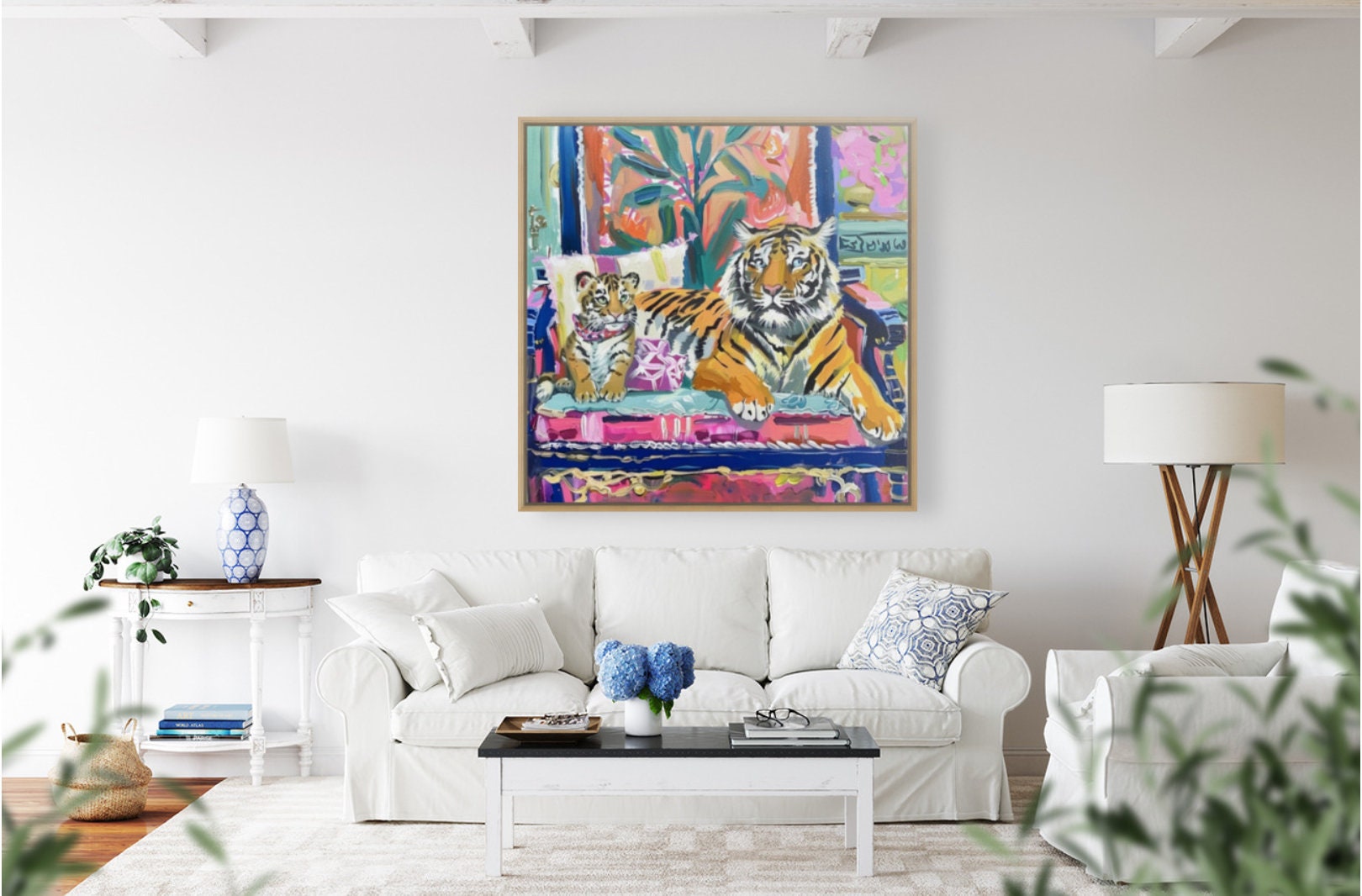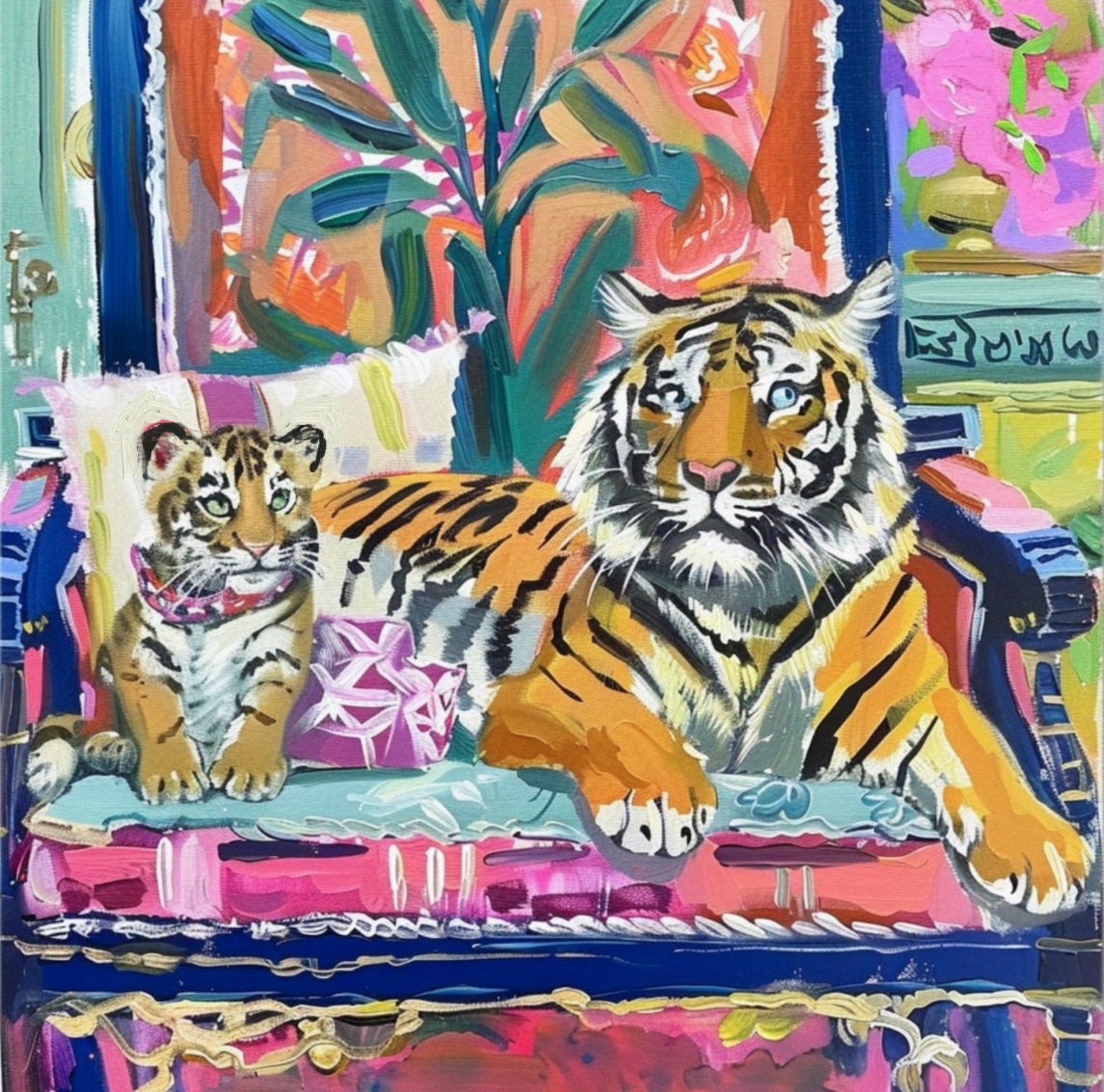 Tiger Art Print: Whimsical Grandmillennial Style, Girly Wall Decor