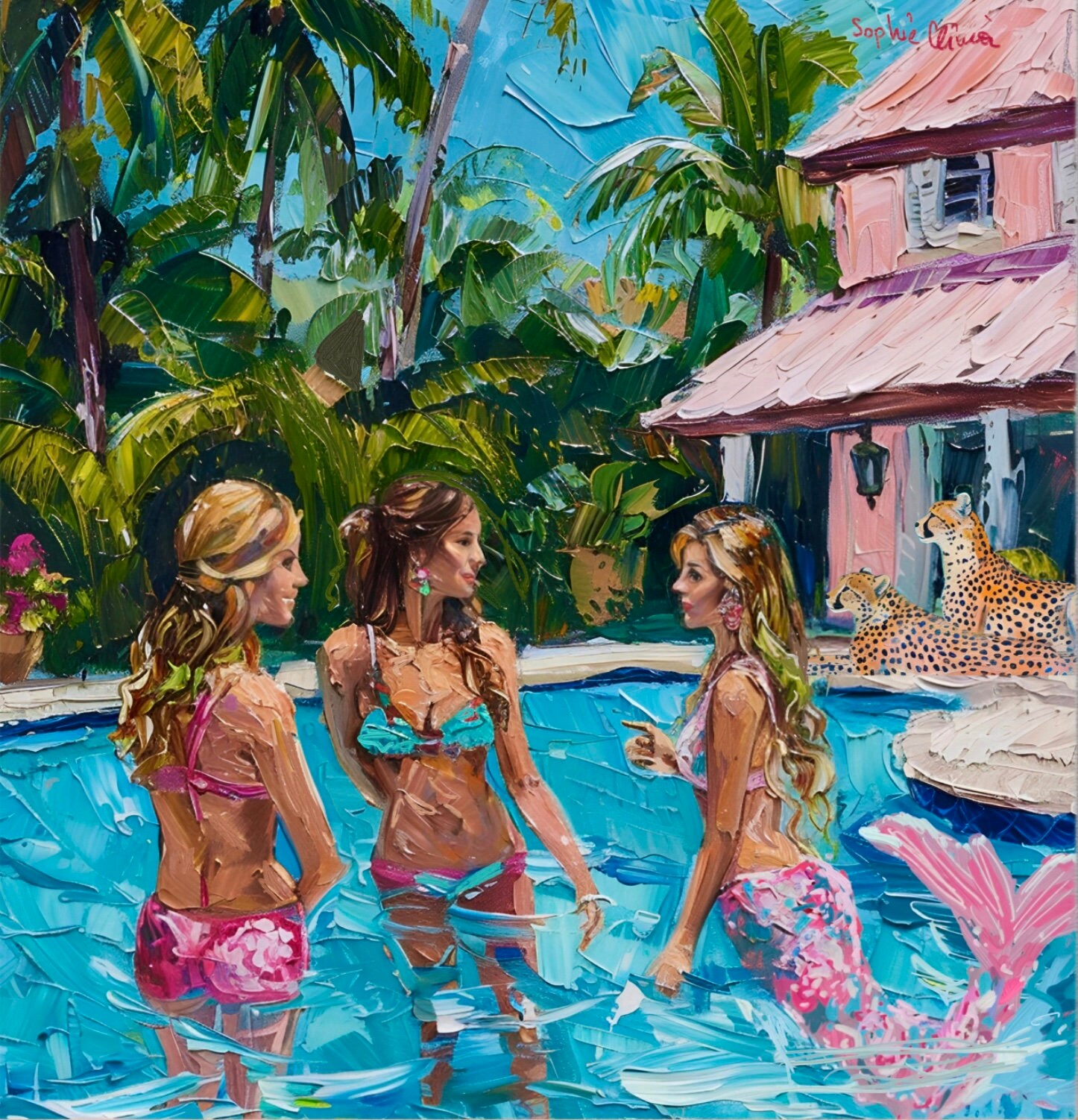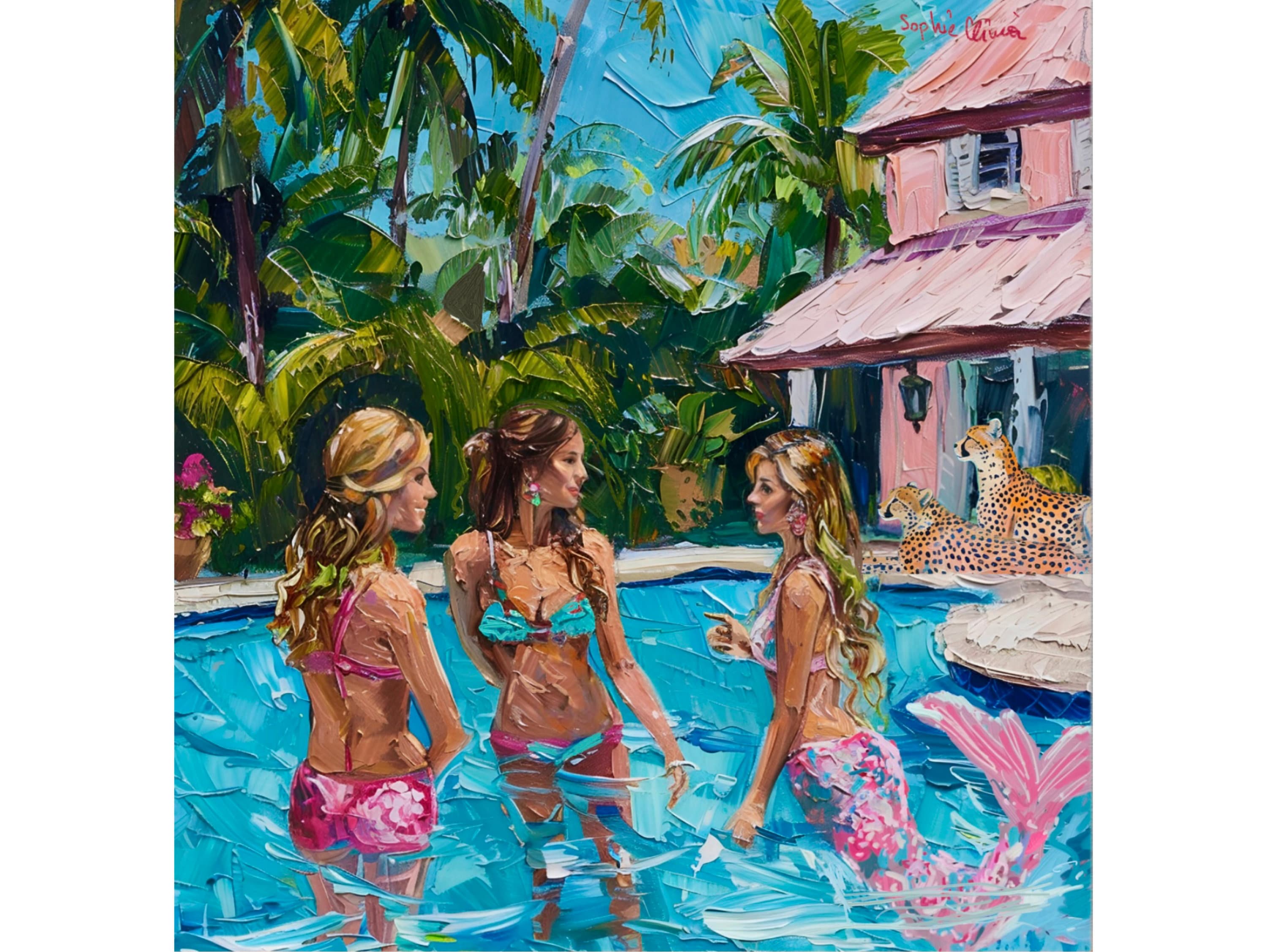Summer in Florida, grandmillennial art, whimsical fine art print